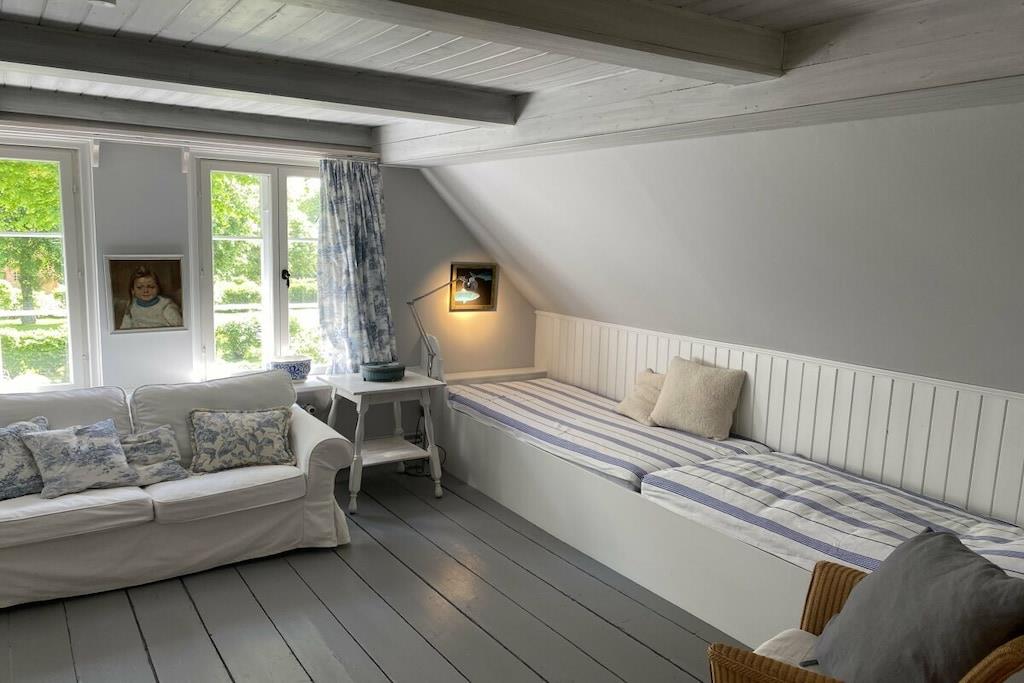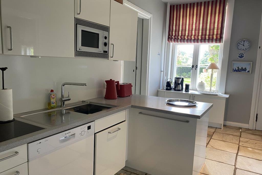 Situated on a spacious 2,000-square-meter property, "Dat Schloss" offers not only the owners' house, which is occupied part-time, but also a separate garden exclusively for our guests. High-quality garden furniture and plenty of loungers invite you to relax in the beautifully landscaped, lush garden. The terrace and outdoor dining area are perfect for leisurely meals and social gatherings. Parking at the house with bicycle storage is also available. "Dat Schloss" can accommodate up to six people. The house has two bedrooms, each with a comfortable double bed, and another bedroom with two single beds placed end-to-end. Two modern shower rooms and three toilets ensure ample comfort and privacy. Wi-Fi is available throughout the house.