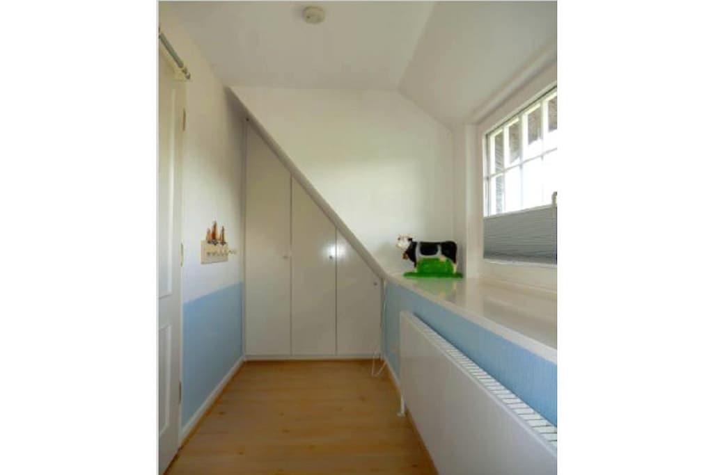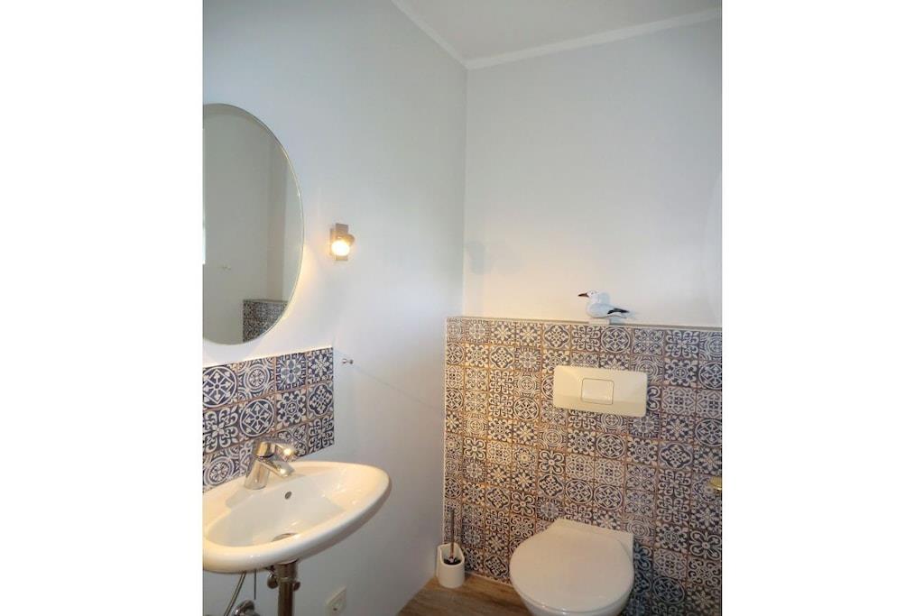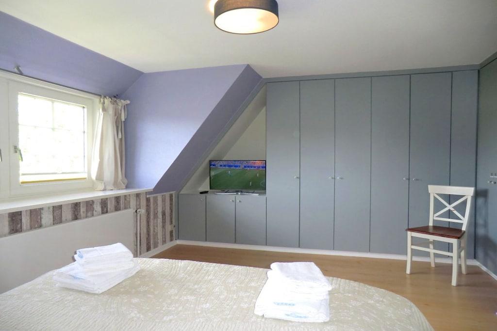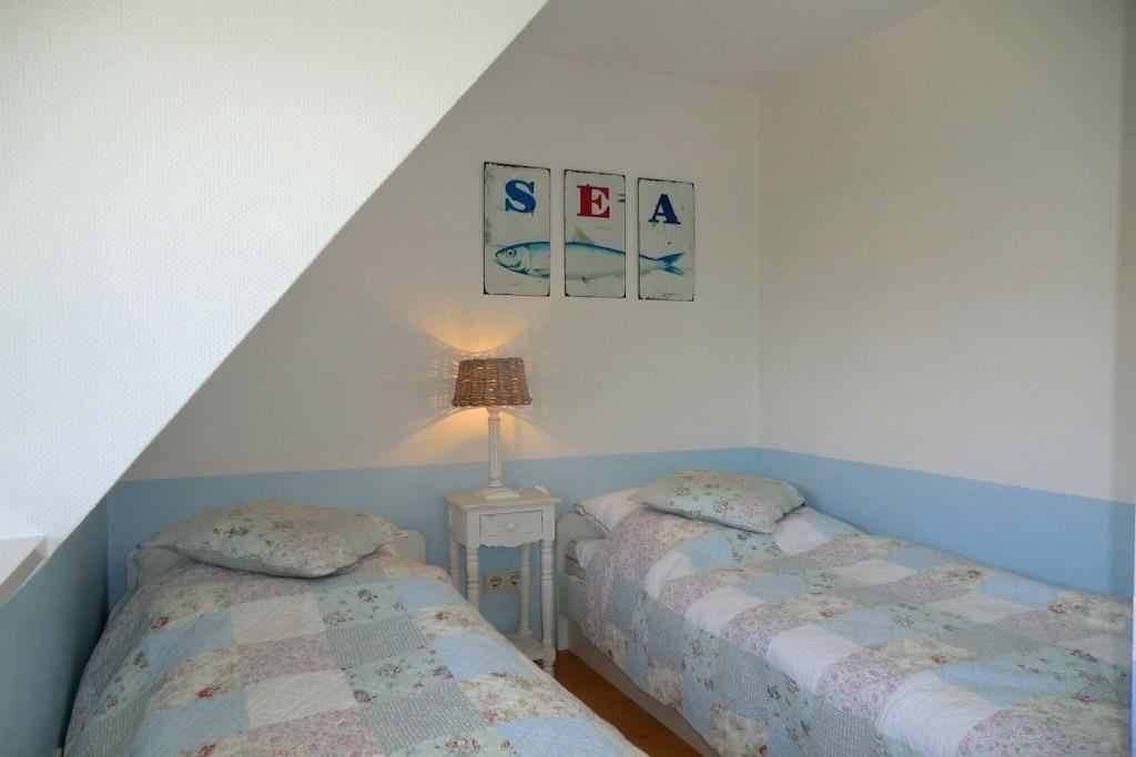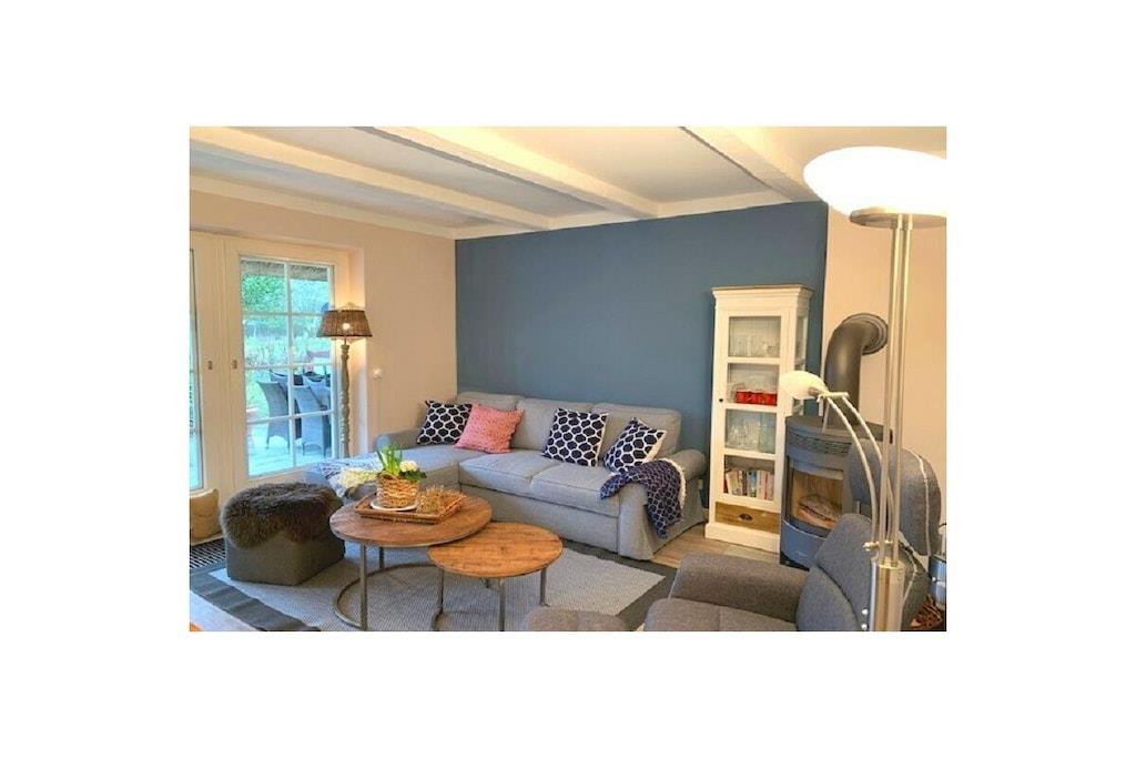 Located on the southern edge of the North Sea resort of Nieblum, close to the beach, golf course, and the village's excellent infrastructure, this thatched-roof house features a garden facing southwest and a small terrace at the entrance. Ground floor: Hallway with cloakroom, guest WC, living and dining room (with fireplace, flat-screen TV, stereo system, and DVD player) with open-plan kitchen (including a washing machine) and access to the terrace and garden. Upper floor: Bedroom with a double bed, another flat-screen TV with DVD player, and a large wardrobe; second (children's) bedroom with two single beds (each 80 x 190 cm); shower room/WC with two washbasins.