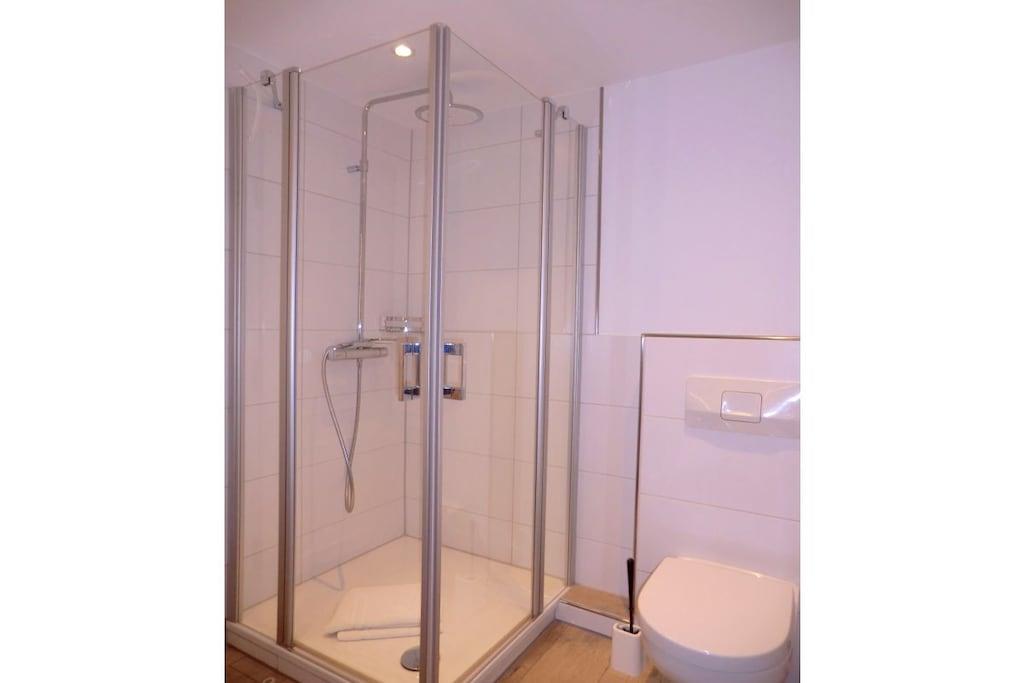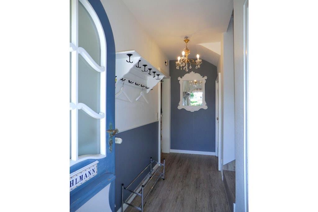 Internet Access DSL, Vacuum Cleaner, hallway(Wardrobe Coatrack), Kitchen(hob, electric kettle, coffee machine, oven, washing machine), Living/diningroom(Armchair, Sofa, TV, dining table, stove, DVD player, stereo unit), bedroom(Wardrobe, double bed, TV, DVD player), bedroom(Wardrobe, single bed, single bed, radio), bathroom(Mirror, toilet, shower, washbasin), guest toilet(Mirror, toilet, washbasin), Internet access, washing machine, heating, terrace(garden furniture), garden(Lawn), parking, parking, ironing board, iron