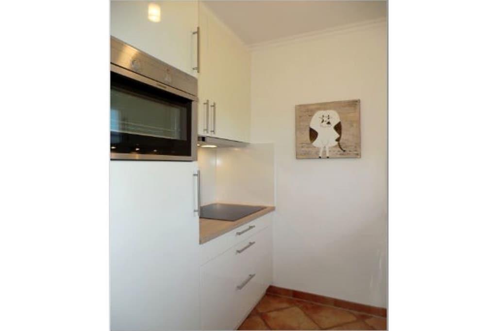 On the 1st floor: (bedroom(Wardrobe, double bed, TV), bedroom(Wardrobe, single bed, single bed)) Internet Access ISDN, Vacuum Cleaner, Kitchen(hob, cooker, oven, fridge, washing machine), Living/diningroom(Sofa, TV, dining table), bathroom(Mirror, toilet, shower, washbasin), Internet access, tumble dryer, washing machine, heating, terrace(garden furniture, sun loungers), parking, ironing board, iron, drying cabinet