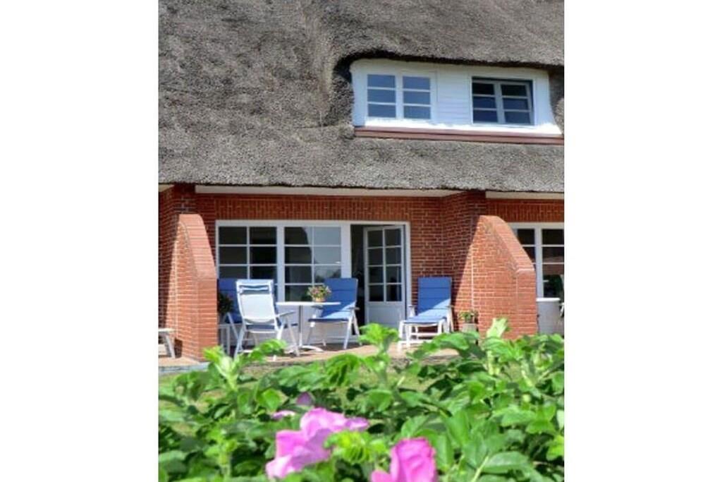 Comfortable thatched-roof semi-detached house with sea views in Nieblum-Bredland (Property 53 - "Strandrose") in a prime beachfront location between Nieblum and Wyk. A golf course, considered one of the most beautiful in Germany, is in the immediate vicinity. This modernly furnished semi-detached house offers approximately 60 m² of living space for 2-4 people (non-smokers only) and is ideal for a relaxing holiday. A washing machine and dryer are available in the shared laundry room (for a fee). Layout: Ground floor: Entrance hall with stairs to the upper floor, kitchen, shower room/WC, living/dining room with flat-screen TV, DVD player, and access to the sunny south-facing terrace. Upper floor: Bedroom with a double bed (1.60 x 2.00 m), a small workspace, and stunning panoramic views of the sea and the Hallig islands; bedroom with two single beds and a large built-in wardrobe.