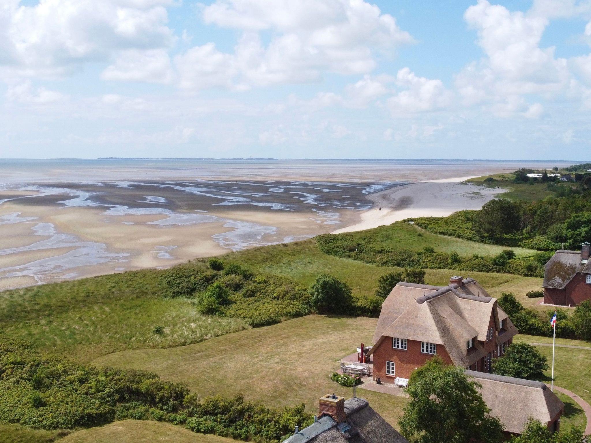 Dieses exklusive Reetdachhaus in Bredland, einer der besten Lagen auf Föhr, bietet Ihnen ein einzigartiges Wohnerlebnis direkt an der Nordsee. Das Haus wurde 1992 erbaut und befindet sich in einer idyllischen Umgebung mit kleinen Warften, nur wenige Schritte vom Strand entfernt. Die Terrassen hinter der Düne sind perfekt, um die ersten Sonnenstrahlen im Frühling zu genießen, und vom Obergeschoss aus haben Sie einen atemberaubenden Blick auf die Nordsee und die Halligen.