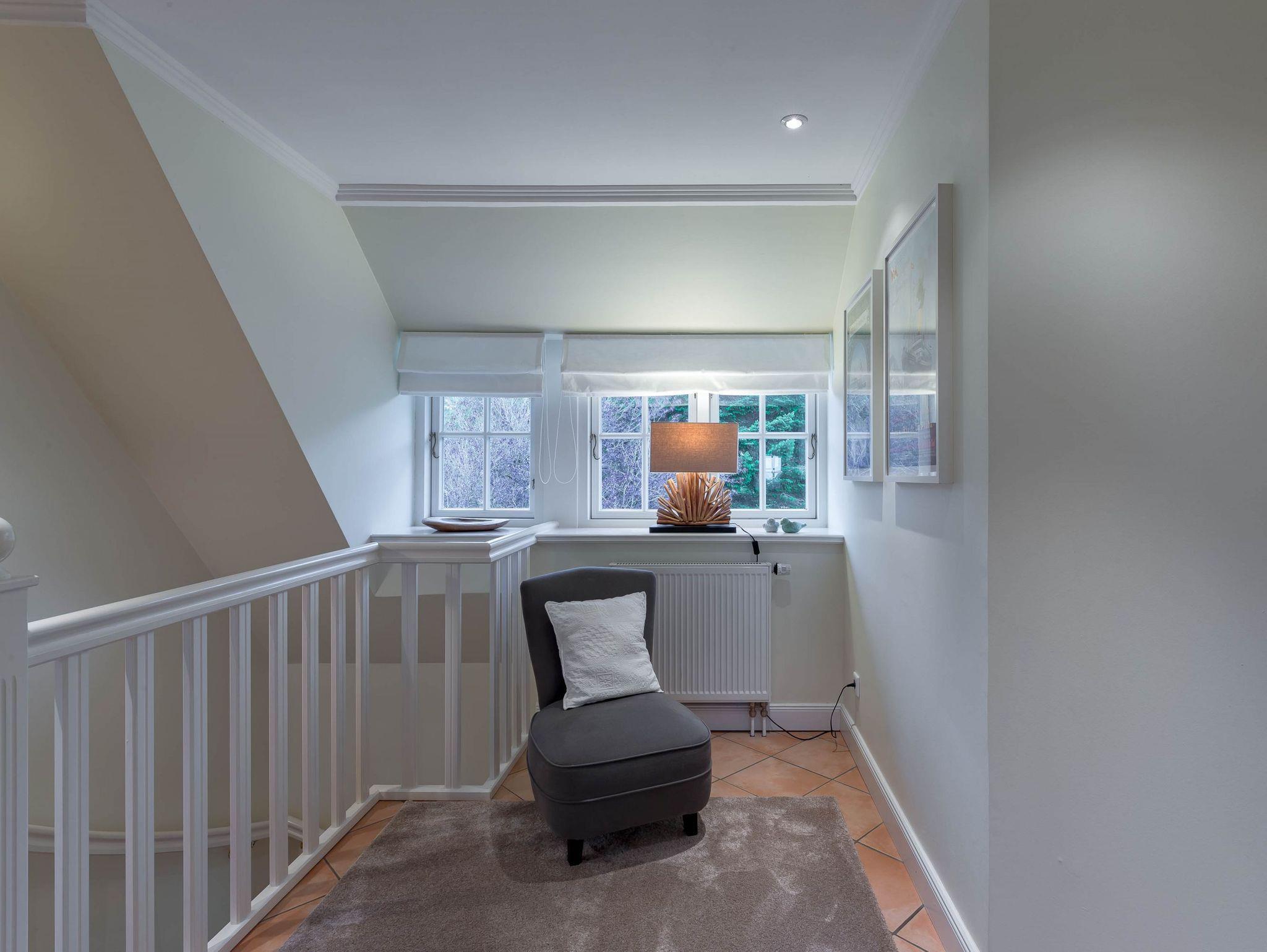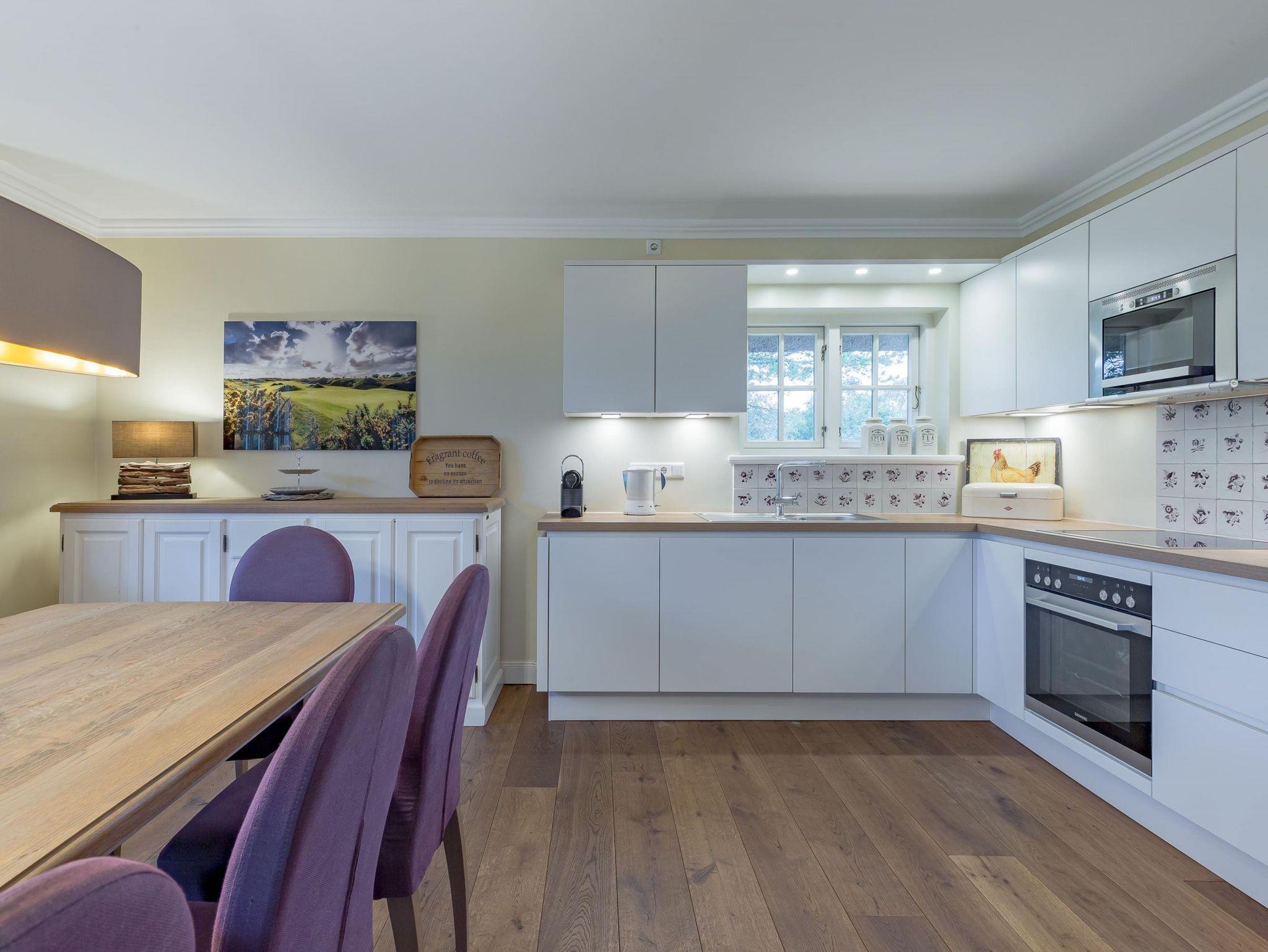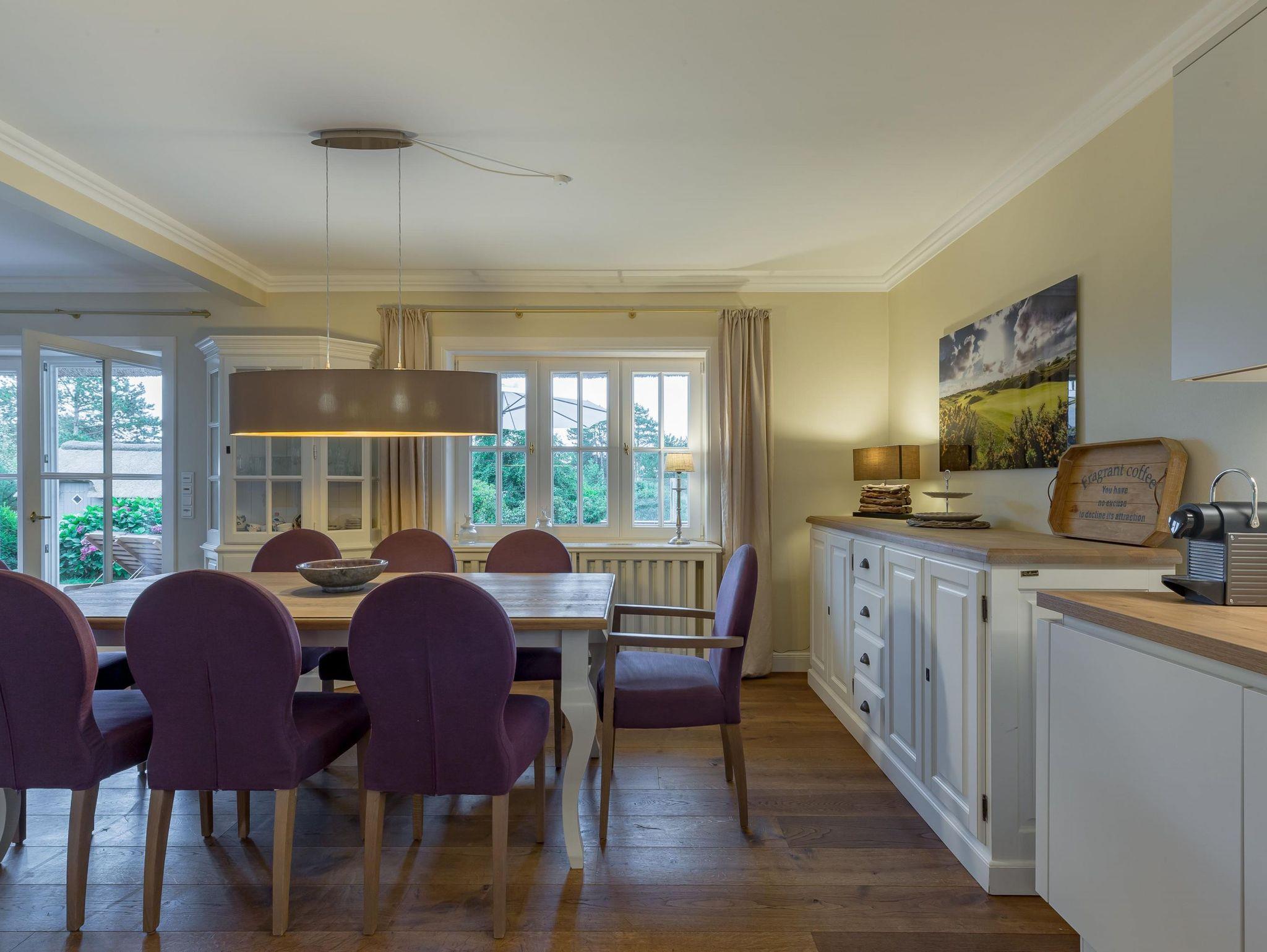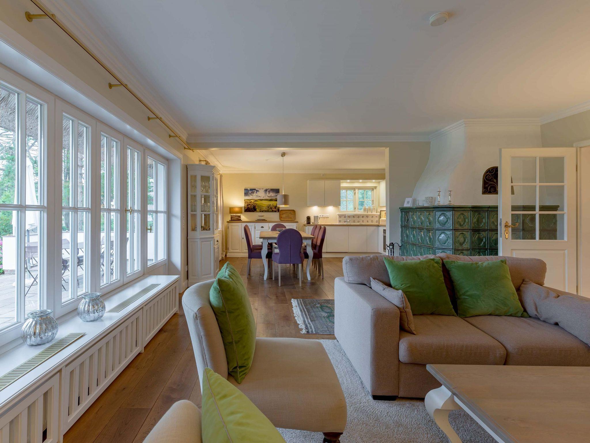 Herzlich Willkommen in unserem Haus Greveling. Das mit Reet gedeckte Einzelhaus steht in absoluter Spitzenlage zwischen Nieblum und Wyk, in unmittelbarer Nähe zum Meer und nur wenige Schritte vom schönsten Golfplatz Schleswig Holsteins entfernt. Der exklusive Ortsteil Greveling besteht aus wenigen Einzelhäusern unter Reet, die fast alle auf eigenen kleinen Warften in exponierter Lage direkt an der Nordsee liegen. Hier wohnen Sie einzigartig auf Föhr. Genießen Sie den hohen Komfort und die Großzügigkeit der lichtdurchfluteten Räume in Ihrem Reethaus. Die geschmackvolle Einrichtung begeistert und der herrliche, zur Nordsee liegende Garten verleitet zum träumen. Besuchen Sie uns und genießen Sie eine herrliche Urlaubszeit.