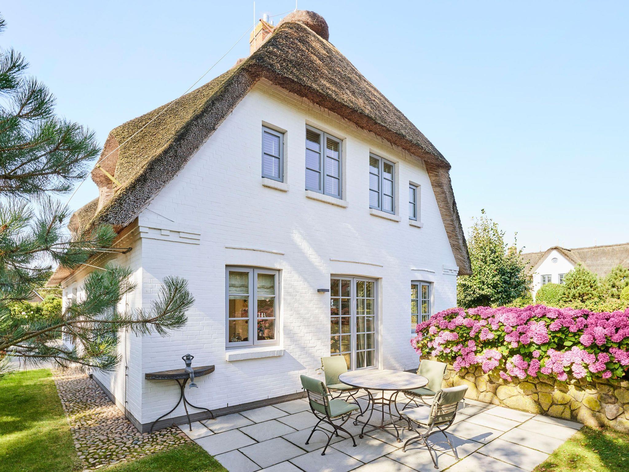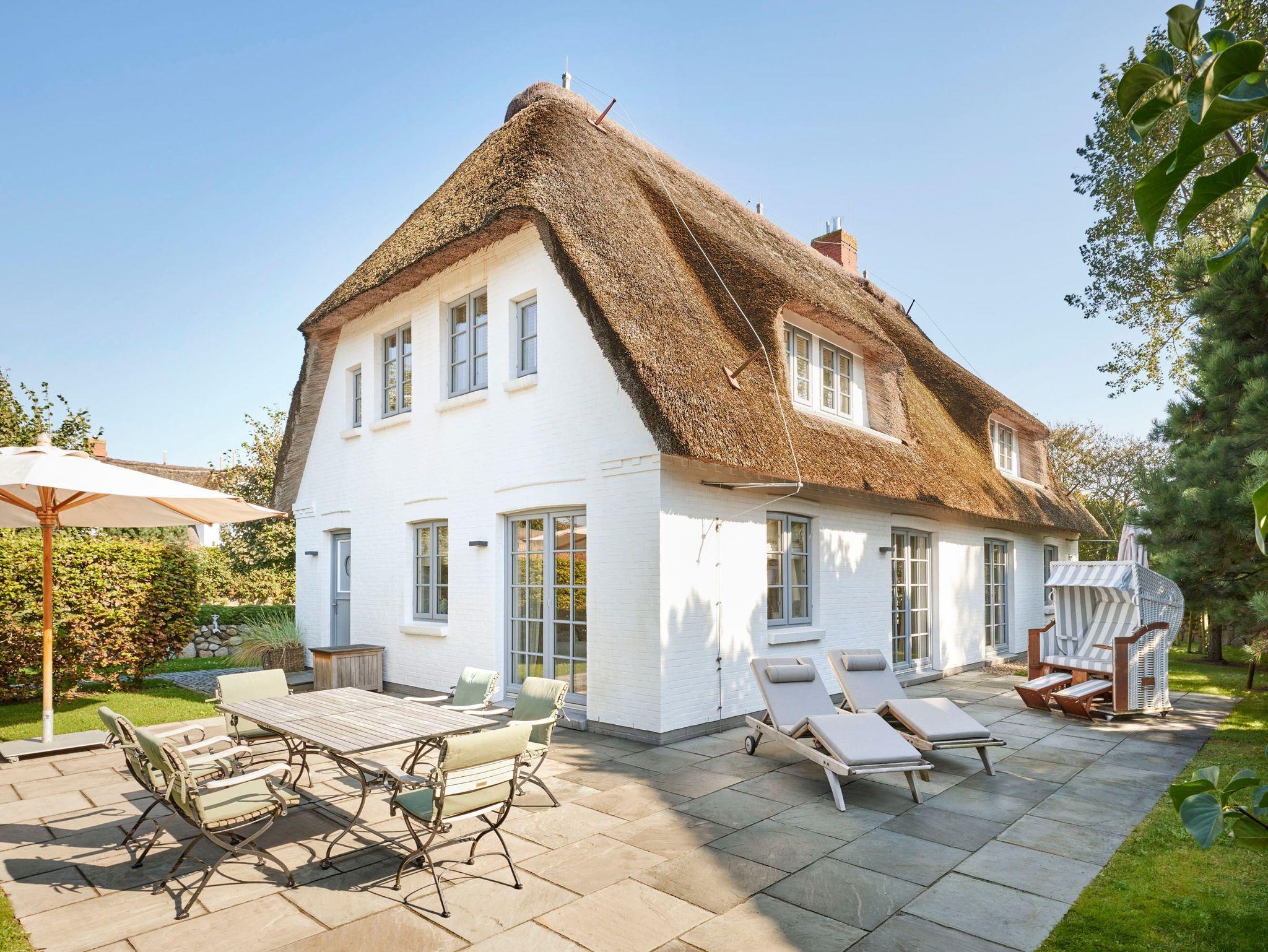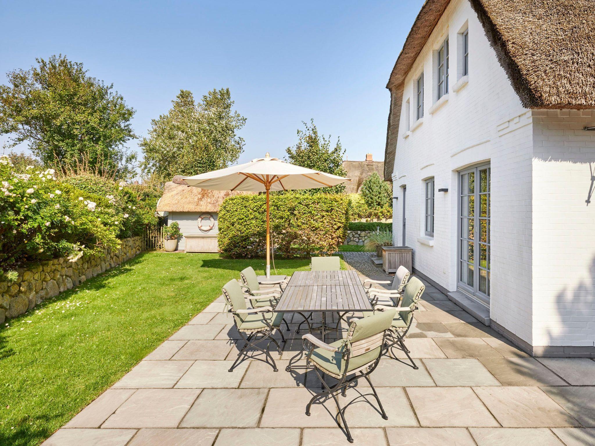 Wohnen Sie in diesen exklusiven Einzelhaus unter Reet im wunderschönen Friesendorf Nieblum. Hier finden Sie alte Kapitänshäuser, bunte Bauerngärten, Baumalleen und reetgedeckte Friesenhäuser - der perfekte Ausgangspunkt für einen erholsamen Urlaub. Das Haus ist sehr hochwertig ausgestattet und lässt keine Wünsche offen. Ein großzügiger Wohnraum mit Kachelofen, daran angrenzend der Essbereich für 6 Personen und die offene Küche mit allem, was das Kochherz begehrt, macht das Erdgeschoss zum Blickfang. Im Obergeschoss befinden sich drei geräumige Schlafräume und zwei Badtempel. Auf der ca. 95qm großen Terrasse und dem schön angelegtem Garten werden Sie erholsame Urlaubstage verbringen.
