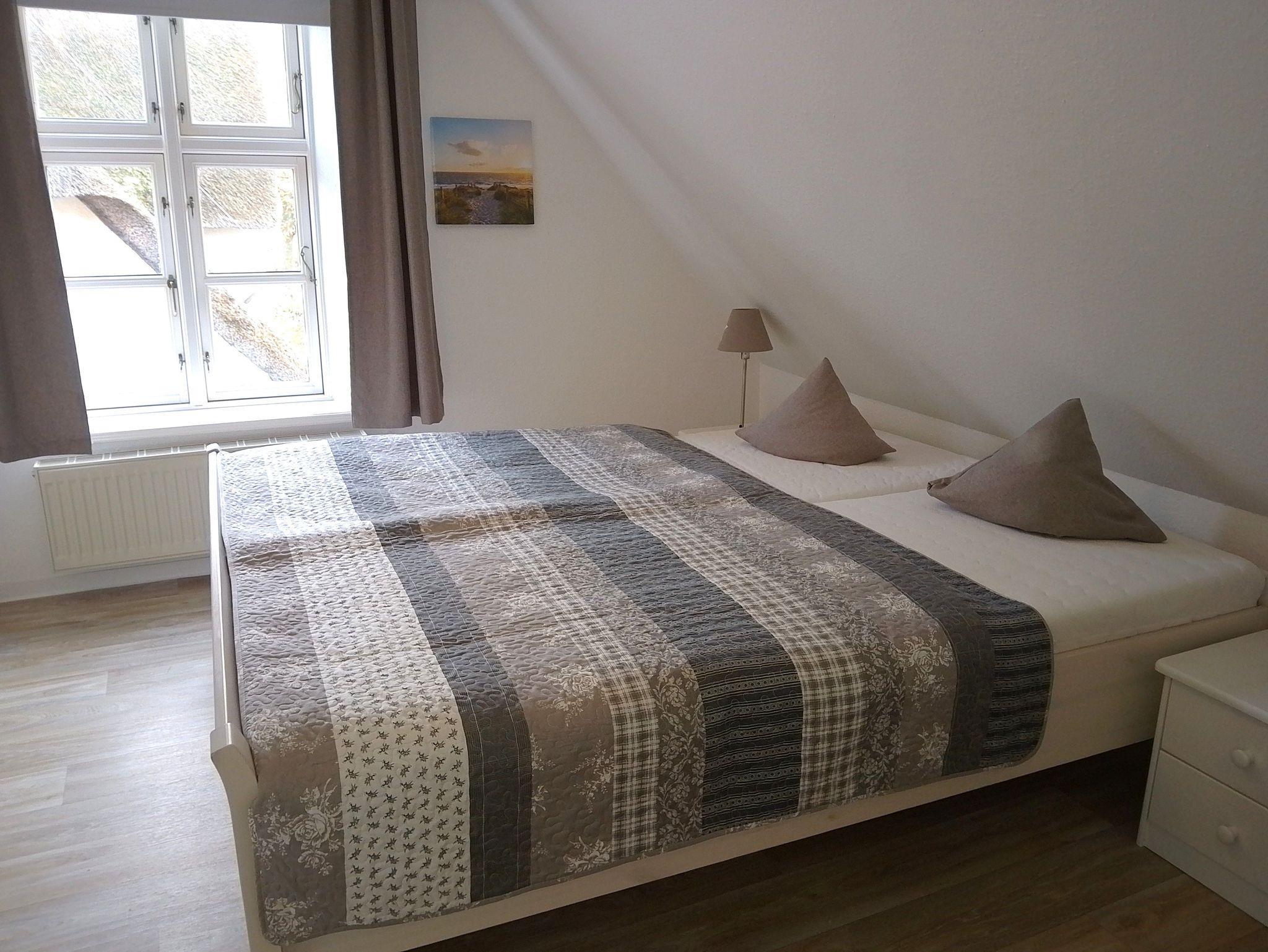 Diese Obergeschosswohnung im historischen Kapitänshaus (Baujahr 1866) liegt im Dorf Nieblum und wurde laufend renoviert. Die gemütliche Wohnung mit Holzdielen und Fliesenböden verfügt über 2 Schlafzimmer (Doppelbett 180x200m und ein Einzelbett 80x200m), 1 Duschbad mit Fön, 1 Wohnzimmer, Sat TV, Küche mit Geschirrspüler, Cerankochfeld, Backofen, Filterkaffeemaschine.