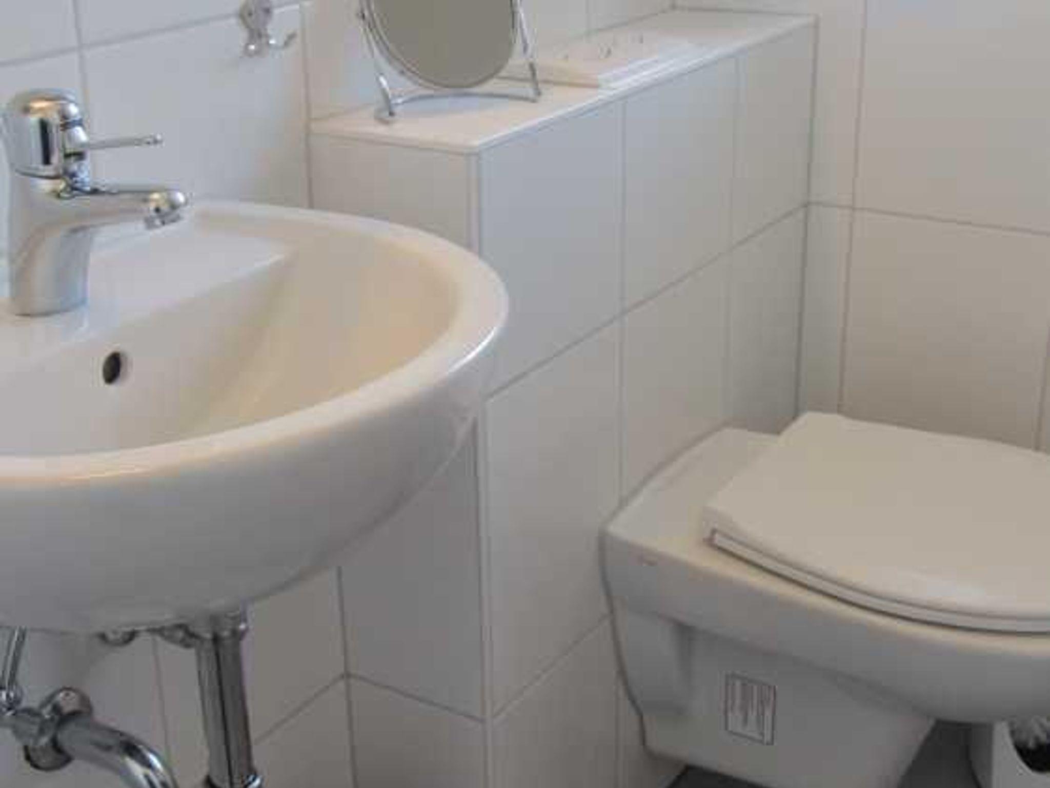 Sanitär: Föhn, Handtuchheizkörper, Schminkspiegel.