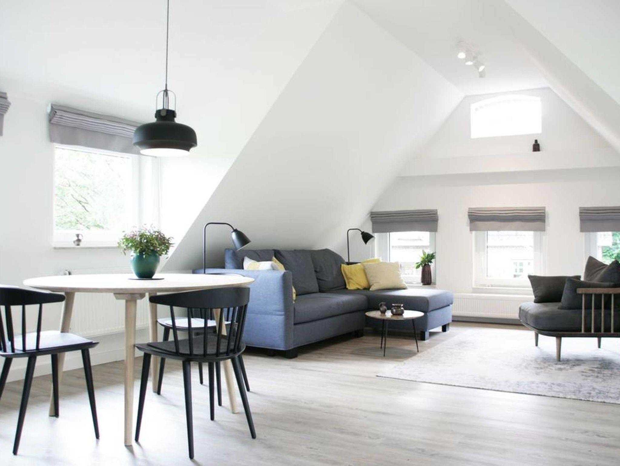 Helle, modern eingerichtete Obergeschoßwohnung in einem Mehrfamilienhaus. Die Unterkunft befindet sich im 1.OG.
