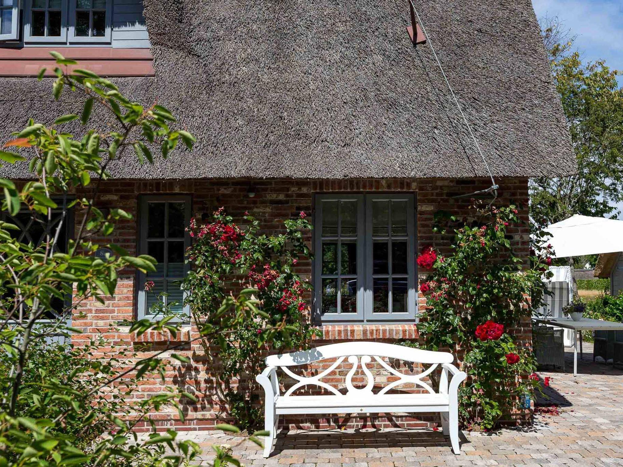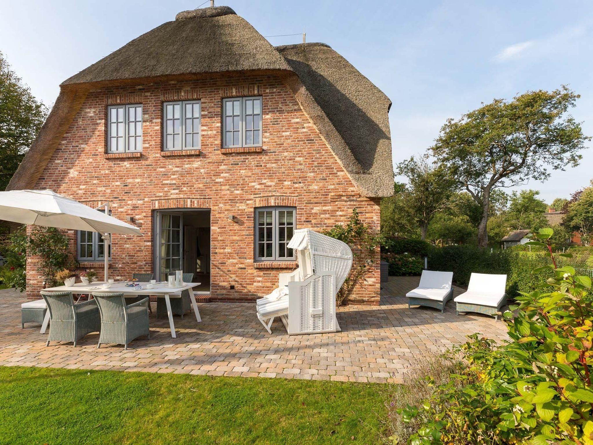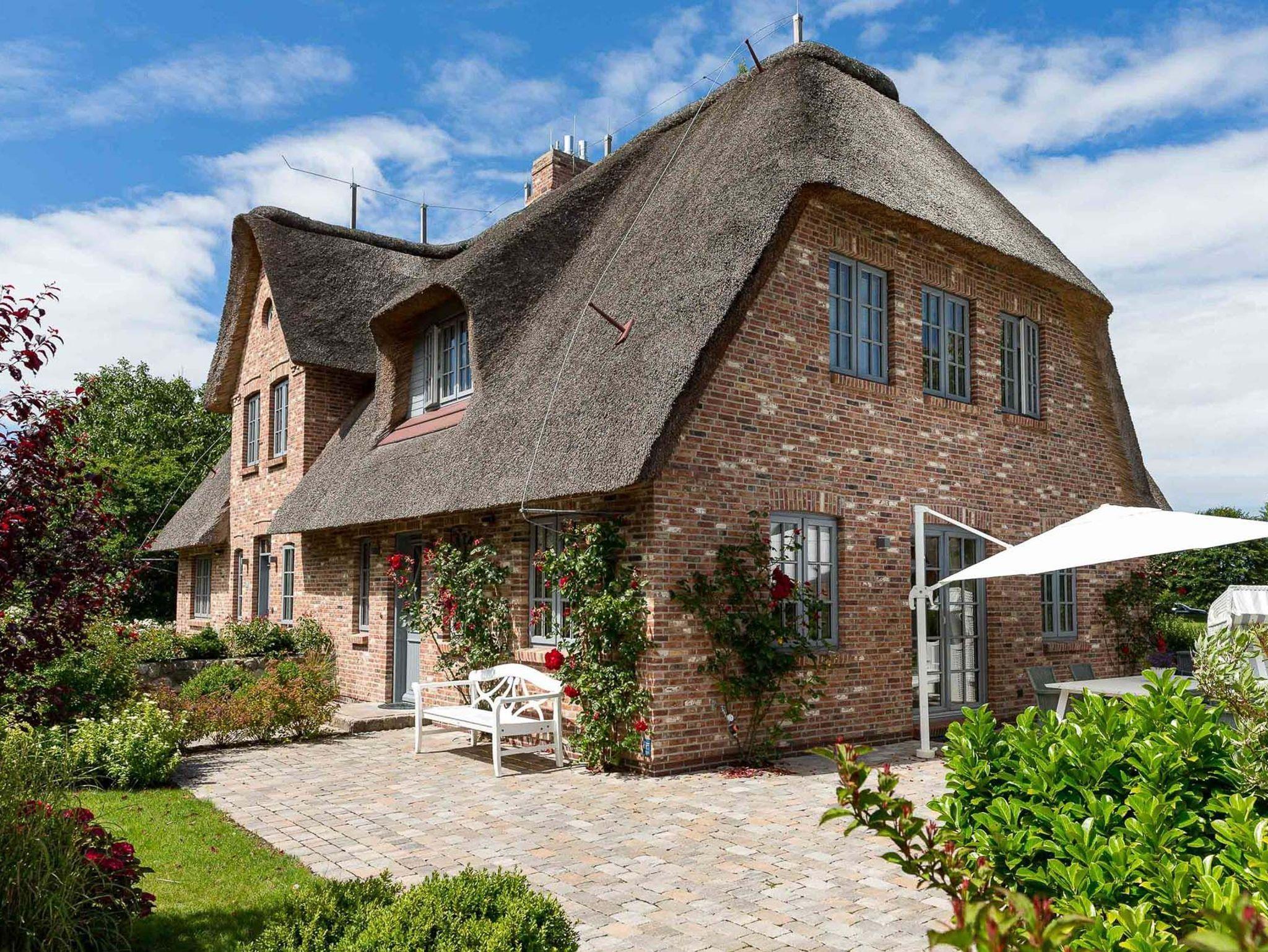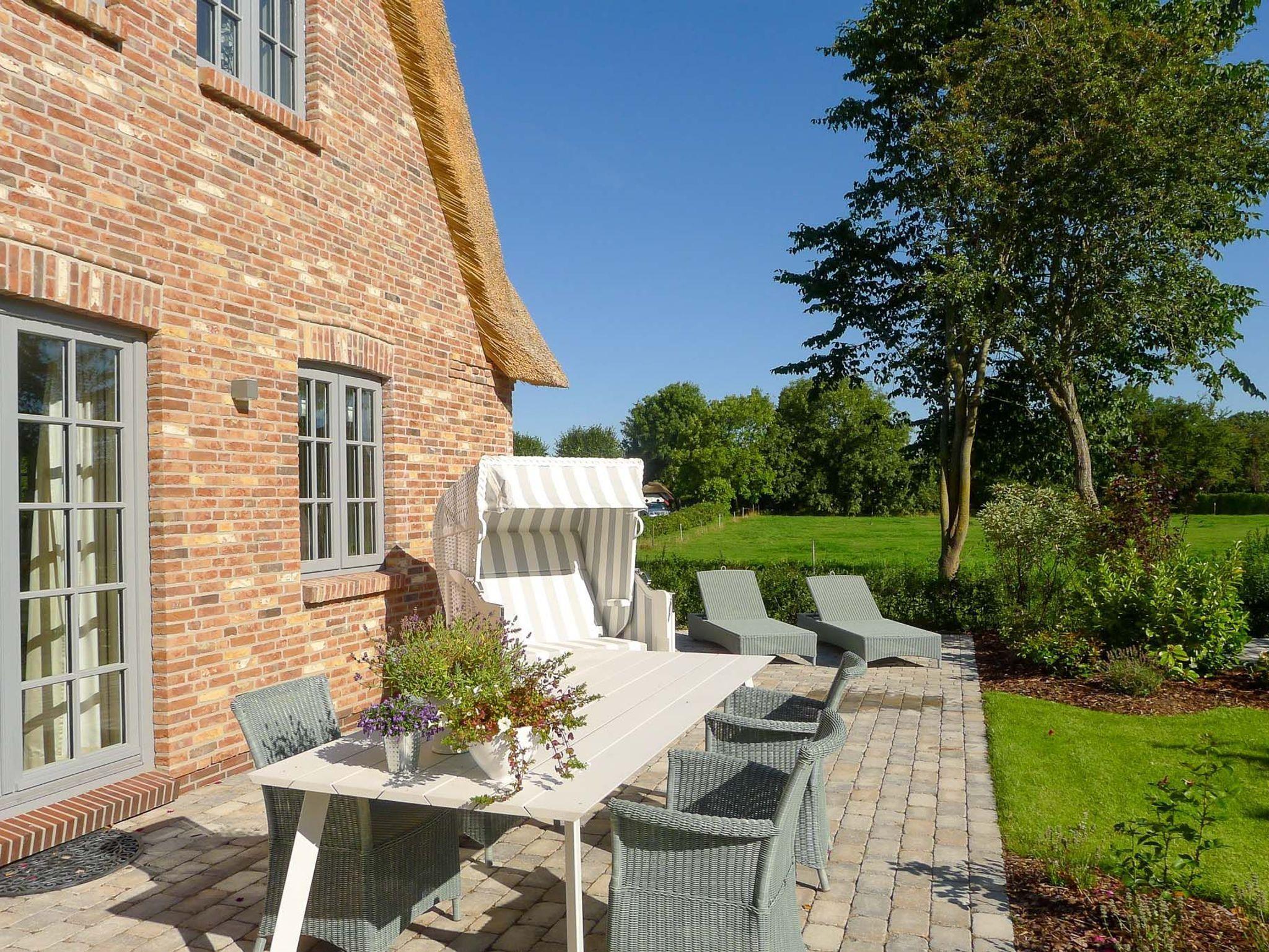 Dieses Friesenhaus lädt mit seiner schönen Architektur, Sprossenfenstern, Reetdach und seiner umlaufenden Terrasse, die ganztägig Sonnenplätze bietet, zum Entspannen und Erholen ein. Schöne Fliesen, hochwertige Holzeinbauten, eine helle, gemütliche Einrichtung, TV und Sonos Soundanlage in allen Wohn- und Schlafräumen, sowie ein großes Bad mit Tageslichtsauna runden den Eindruck ab. Das Doppelhaus liegt zentral im Ortskern von Nieblum, dem wohl schönsten Dorf auf Föhr, mit seinen Kapitänshäusern, Linden- und Ulmenalleen, Geschäften, Cafes und Restaurants. In wenigen Minuten sind Sie mit dem Fahrrad am Nieblumer Strand.