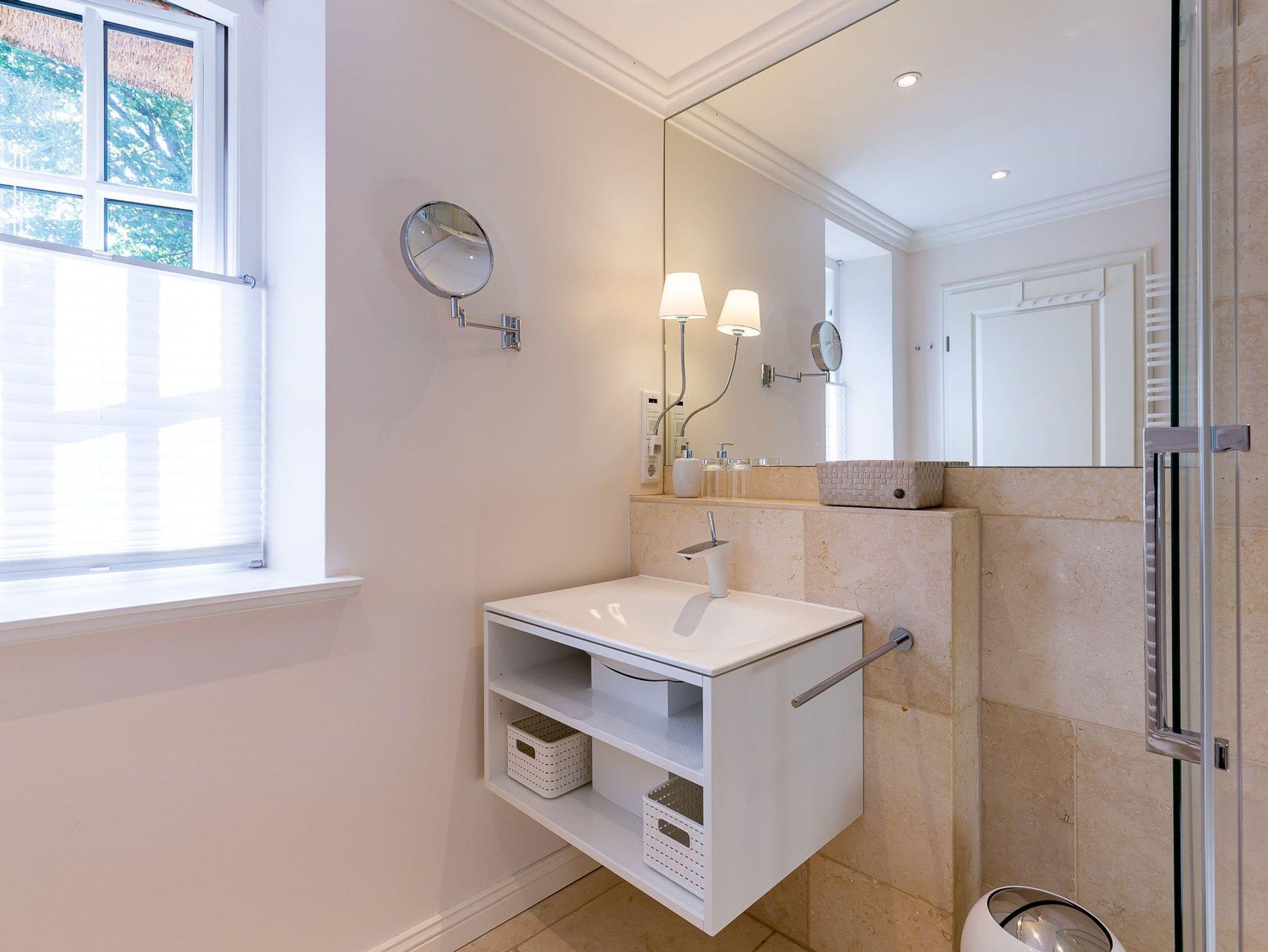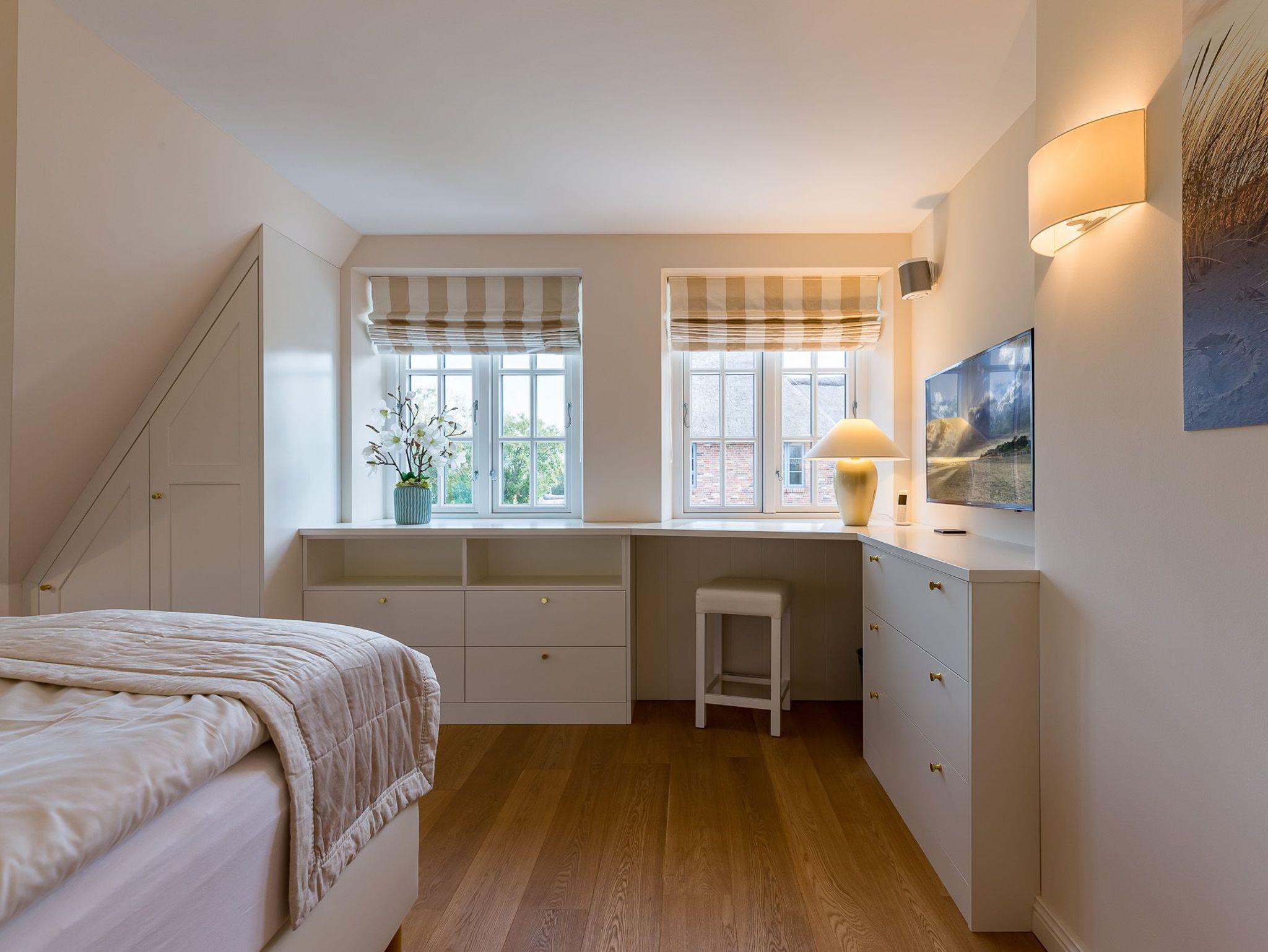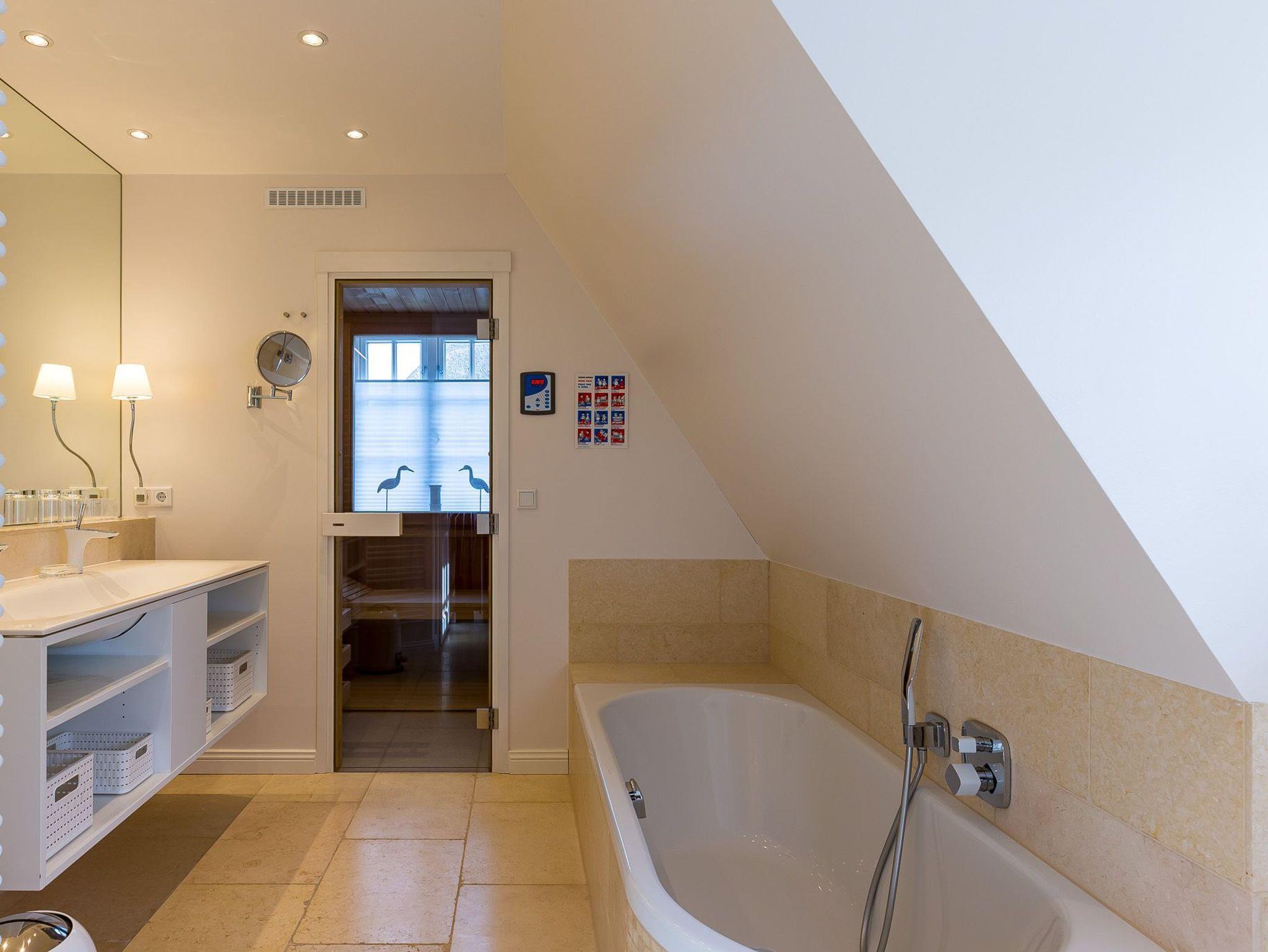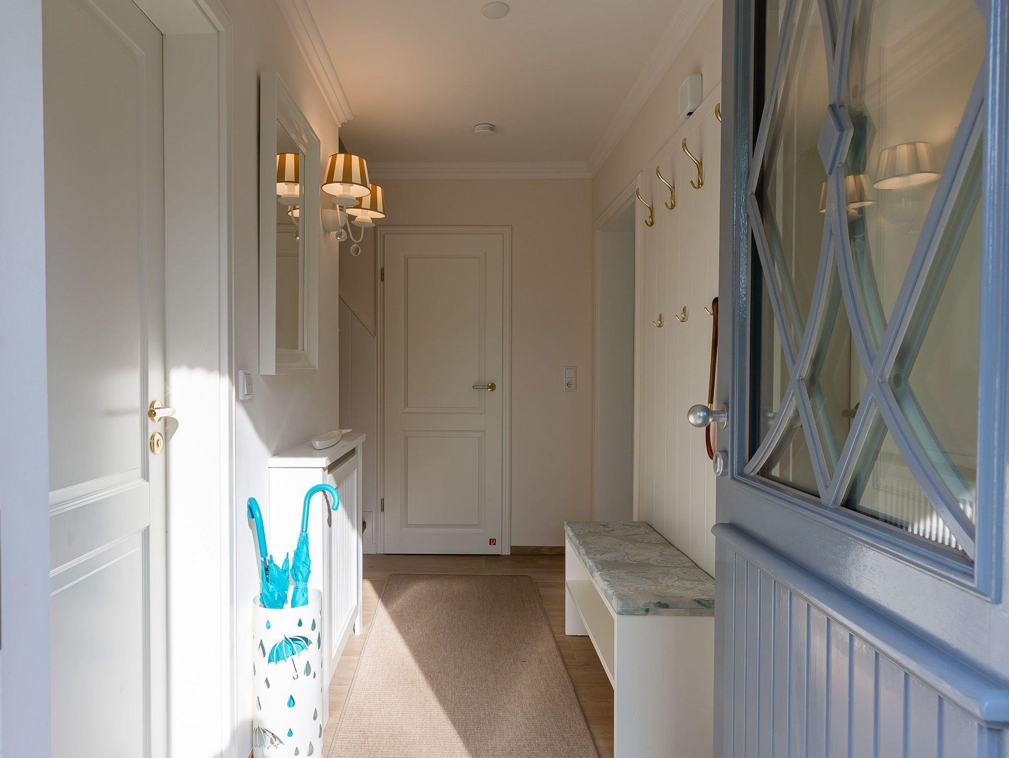 Dieses Friesenhaus lädt mit seiner schönen Architektur, Sprossenfenstern, Reetdach und seiner umlaufenden Terrasse, die ganztägig Sonnenplätze bietet, zum Entspannen und Erholen ein. Schöne Fliesen, hochwertige Holzeinbauten, eine helle, gemütliche Einrichtung, TV und Sonos Soundanlage in allen Wohn- und Schlafräumen, sowie ein großes Bad mit Tageslichtsauna runden den Eindruck ab. Das Doppelhaus liegt zentral im Ortskern von Nieblum, dem wohl schönsten Dorf auf Föhr, mit seinen Kapitänshäusern, Linden- und Ulmenalleen, Geschäften, Cafes und Restaurants. In wenigen Minuten sind Sie mit dem Fahrrad am Nieblumer Strand.