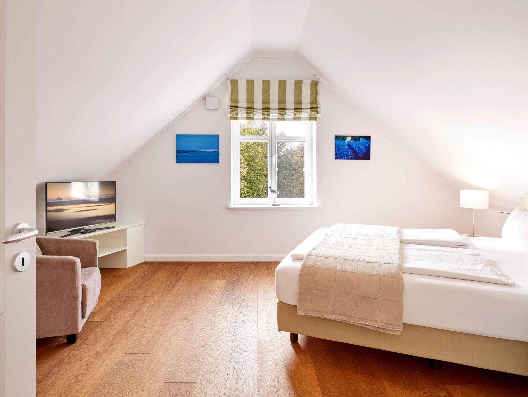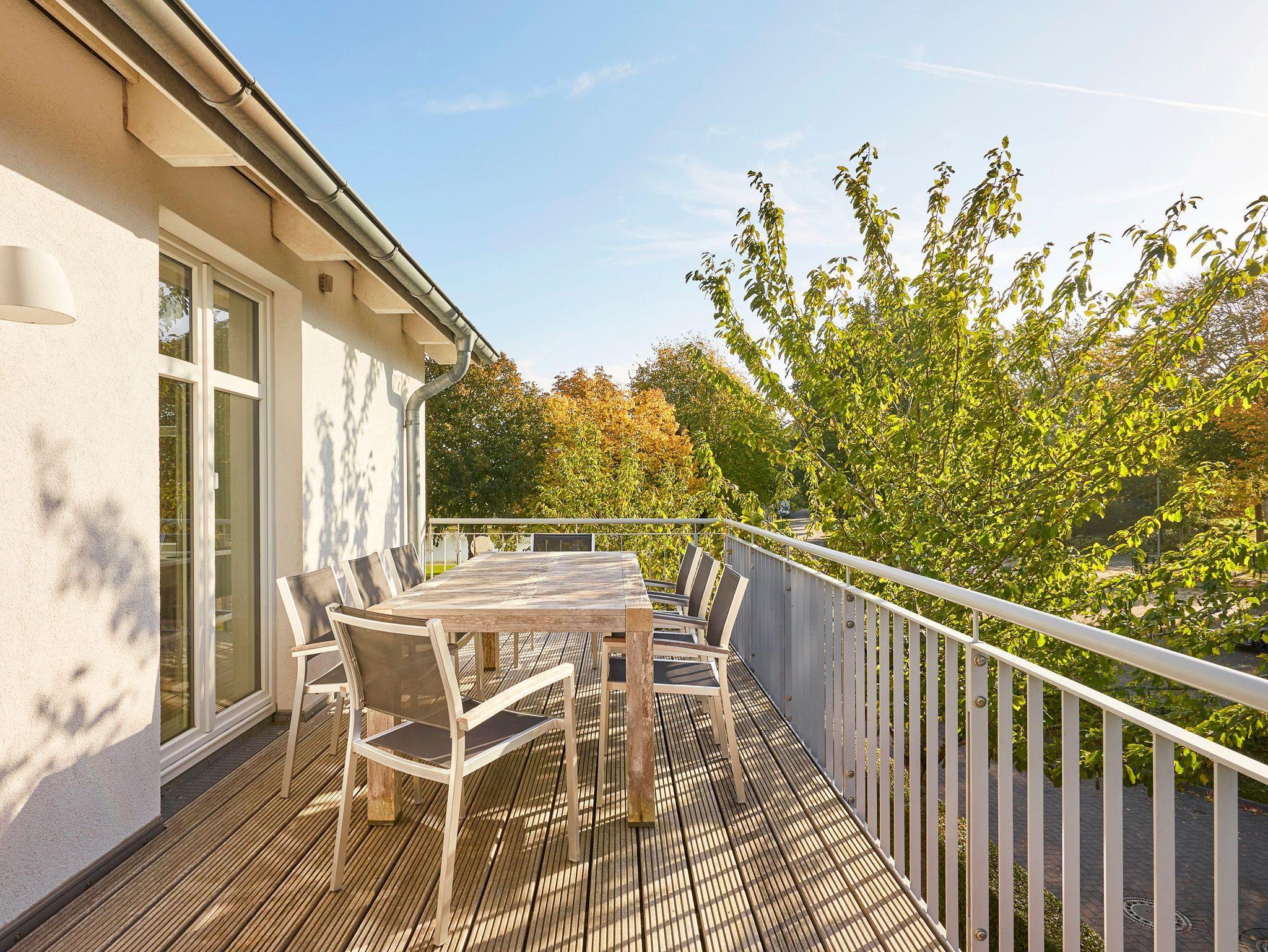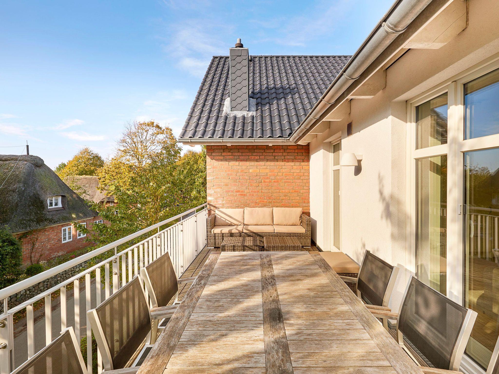 Das Objekt Villa de Meere - mit 8 individuellen und exklusiven Wohnungen - befindet sich in einer ruhigen Seitenstraße nahe dem Nieblumer Ortskern. Die Wohnung Villa de Meere 5 zeichnet sich durch eine große Dachterrasse mit gemütlichen Loungemöbeln aus. Die Terrasse wird sicherlich Ihr Lieblingsplatz. Hier fängt der Tag mit einem ausgiebigen Frühstück an, und am Abend genießen Sie Ihr Glas Wein mit Blick auf die Grünanlage und den Dorfteich De Meere. Die Küche mit dem wunderbar großen Essplatz ist das Herzstück der Wohnung. Hier können Sie kochen, klönen und den Urlaubstag planen. Wenn es Zeit zur Entspannung ist, bieten Ihnen die gut geschnittenen Schlafräume viel Platz. Nieblum selbst, das wohl schönste Inseldorf, ist geprägt von reetgedeckten alten Kapitänshäusern, wunderschönen Bauerngärten und dem Friesendom St. Johannis. Der Nieblumer Strand liegt nicht weit vom Ortskern entfernt. Cafés, Restaurants sowie ein Bäcker und Einkaufsmöglichkeiten für den täglichen Bedarf sind im Ort vorhanden und bequem zu Fuß zu erreichen.