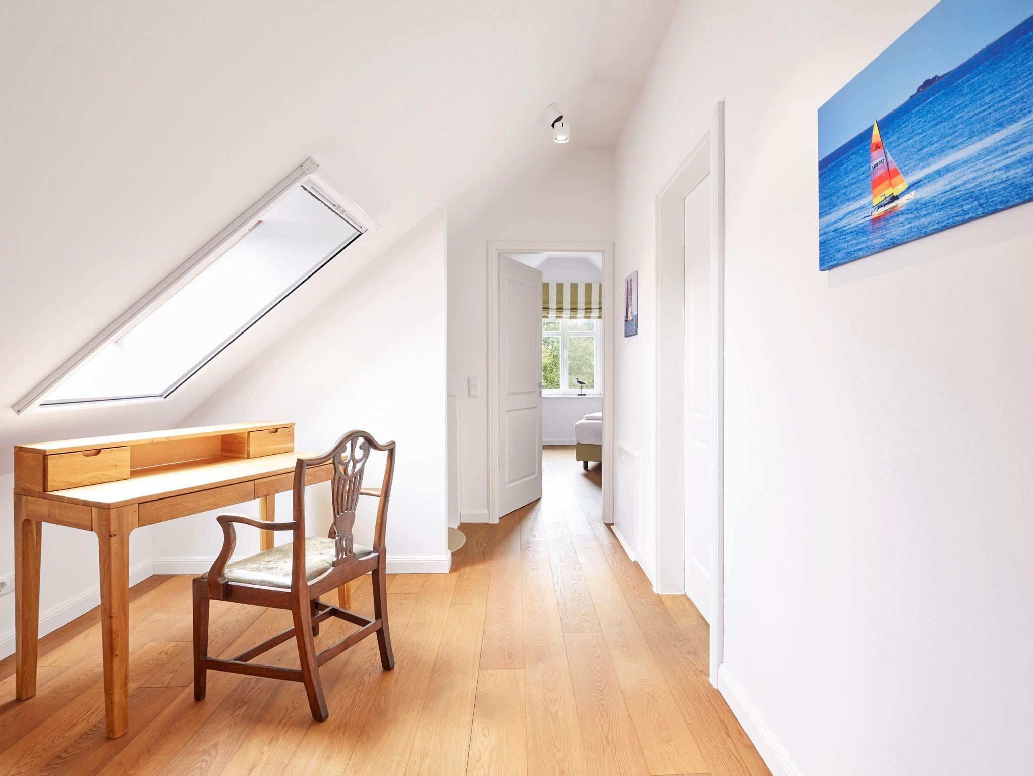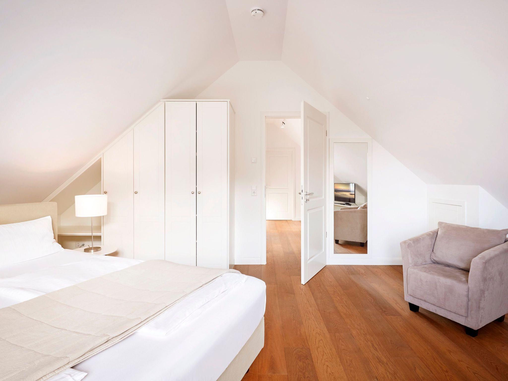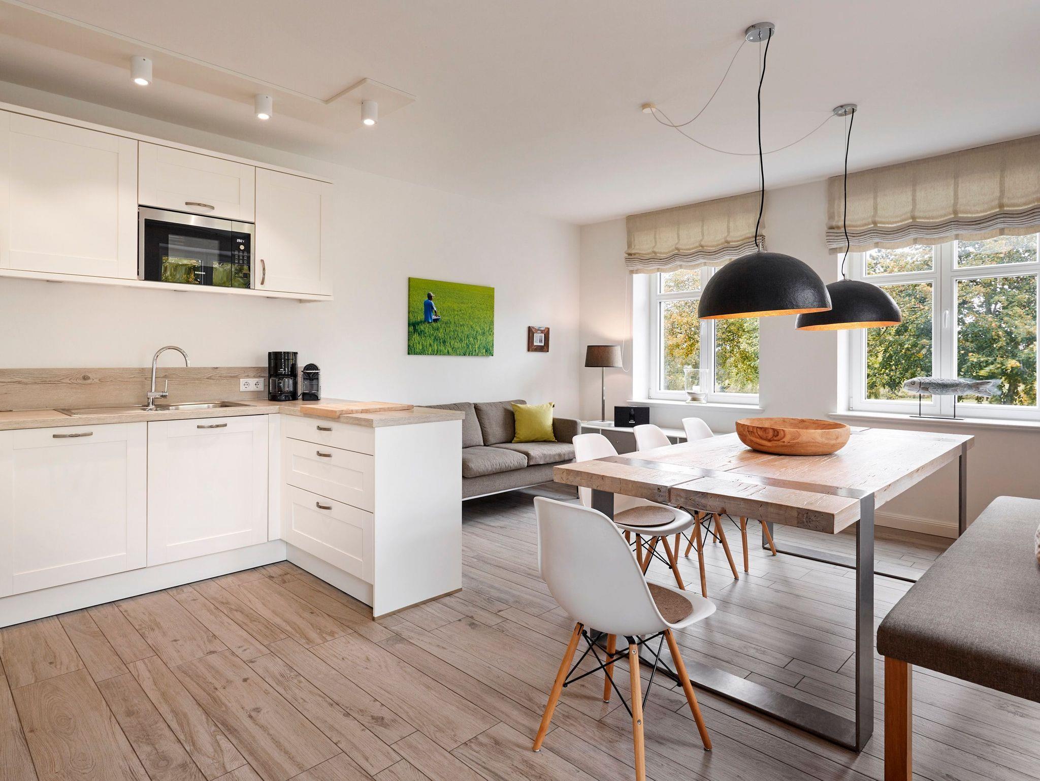 Das Objekt Villa de Meere - mit 8 individuellen und exklusiven Wohnungen - befindet sich in einer ruhigen Seitenstraße nahe dem Nieblumer Ortskern. Die Wohnung Villa de Meere 5 zeichnet sich durch eine große Dachterrasse mit gemütlichen Loungemöbeln aus. Die Terrasse wird sicherlich Ihr Lieblingsplatz. Hier fängt der Tag mit einem ausgiebigen Frühstück an, und am Abend genießen Sie Ihr Glas Wein mit Blick auf die Grünanlage und den Dorfteich De Meere. Die Küche mit dem wunderbar großen Essplatz ist das Herzstück der Wohnung. Hier können Sie kochen, klönen und den Urlaubstag planen. Wenn es Zeit zur Entspannung ist, bieten Ihnen die gut geschnittenen Schlafräume viel Platz. Nieblum selbst, das wohl schönste Inseldorf, ist geprägt von reetgedeckten alten Kapitänshäusern, wunderschönen Bauerngärten und dem Friesendom St. Johannis. Der Nieblumer Strand liegt nicht weit vom Ortskern entfernt. Cafés, Restaurants sowie ein Bäcker und Einkaufsmöglichkeiten für den täglichen Bedarf sind im Ort vorhanden und bequem zu Fuß zu erreichen.
