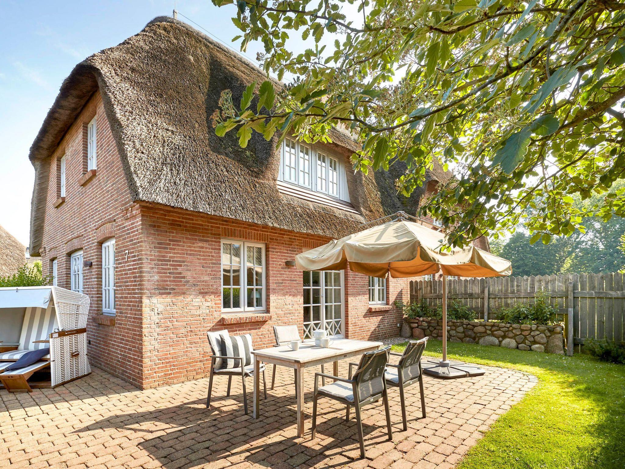 In unserer gemütlichen, reetgedeckten Doppelhaushälfte werden Sie Ihren Urlaub genießen. Das Haus liegt abseits einer ruhigen Seitenstraße, in der Nachbarschaft wunderschöner alter Nieblumer Kapitänshäuser. Restaurants, Cafes und Einkaufsmöglichkeiten befinden sich in unmittelbarer Nähe. Zum herrlichen Sandstrand mit Surfschule sind es nur wenige Minuten mit dem Fahrrad. Auch die Tennisplätze und den 27 Loch Golfplatz, einer der interessantesten und schönsten Schleswig-Holsteins, erreichen Sie in kürzester Zeit. Im Haus und auf den zwei sonnigen Terrassen werden Sie wunderschöne, unvergessliche Ferientage verleben.[nbsp] # Jetzt neu: Landhausdielen im Obergeschoss. #