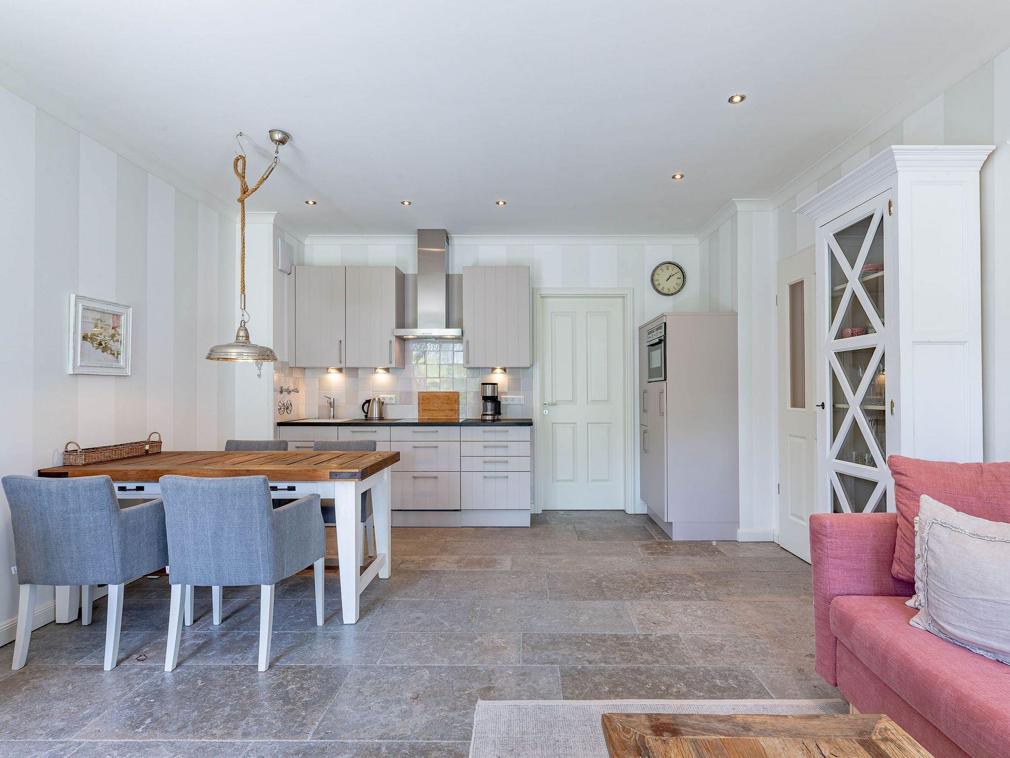 Das Objekt Villa de Meere - mit 8 individuellen und exklusiven Wohnungen - befindet sich in einer Seitenstraße nahe dem Nieblumer Ortskern, direkt am Dorfteich de Meere. Das gesamte Ortsbild des wohl schönsten Inseldorfes ist geprägt von reetgedeckten, alten Kapitänshäusern, wunderschönen Bauerngärten und dem Friesendom St. Johannis. Der Nieblumer Strand liegt nicht weit vom Ortskern entfernt. Cafés, Restaurants sowie ein Bäcker und Einkaufsmöglichkeiten für den täglichen Bedarf sind im Ort vorhanden und bequem zu Fuß zu erreichen.