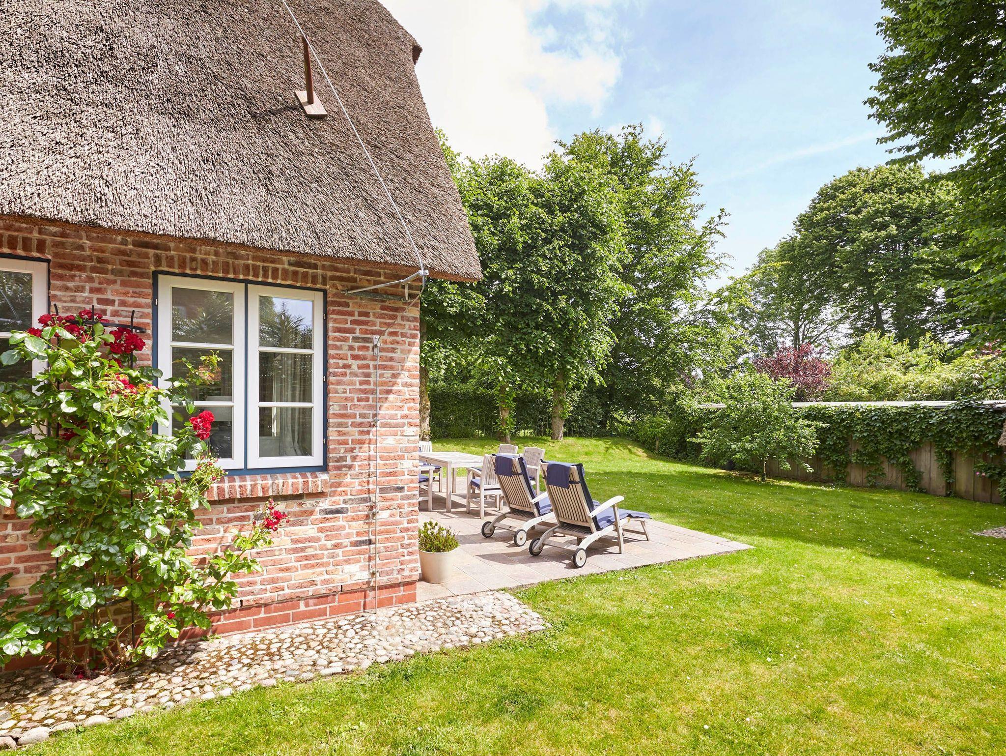 Unser exklusives, mit viel Liebe zum Detail eingerichtete Reetdachhaus mit einer Mischung aus Gemütlichkeit und Moderne lässt keine Wünsche offen. Aus jedem Fenster haben Sie den Blick auf ein wahres friesisches Postkartenmotiv. Das Haus liegt im wunderschönen Ort Nieblum in unmittelbarer Nachbarschaft der alten Kapitänshäuser. Nur wenige Gehminuten entfernt befinden sich schöne Restaurants, gemütliche Kneipen und Einkaufsmöglichkeiten. Der herrliche Nieblumer Sandstrand mit Surfschule ist bequem mit dem Fahrrad oder auch zu Fuß zu erreichen und bietet vielfältige Möglichkeiten zur Entspannung. Auch zum Golfplatz fahren Sie nur ein kurzes Stück. Der große Garten mit 2 Terrassen und die traumhafte Lage des Hauses mit Blick ins Grüne bieten Ihnen ein erholsames Umfeld, welches Sie selbst auf der Insel Föhr nicht oft finden.