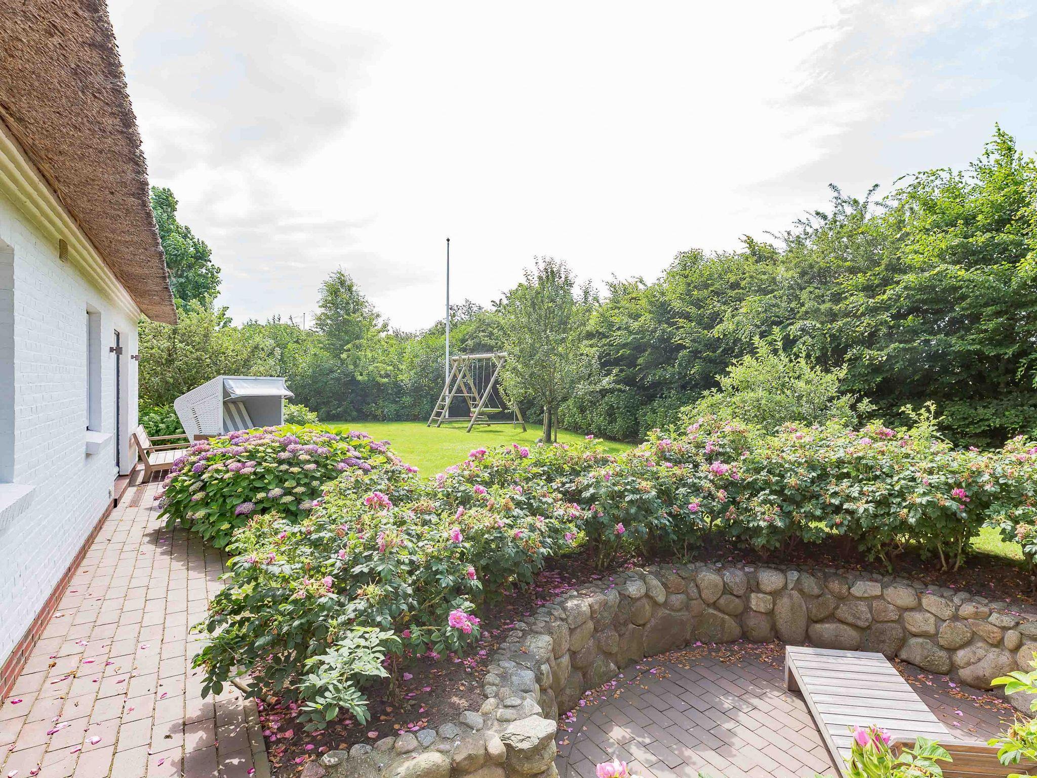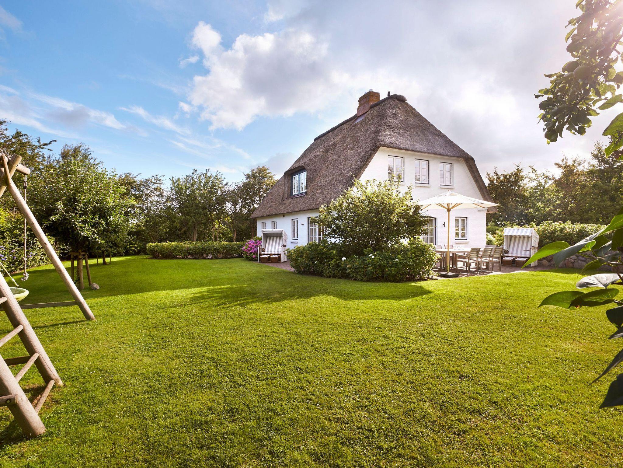 Über eine kleine private Stichstraße erreichen Sie dieses wunderschöne Reetdachhaus im idyllischen Inseldorf Nieblum, das auf einem ca. 1.500 m2 großen, weitläufigen und sonnigen Grundstück steht. Das Haus bietet einen grossen, eingewachsenen Garten mit umlaufender Frühstücks-und Sonnenterrasse. Zum Entspannen stehen dort auch zwei Strandkörbe. Der wundervoll angelegte Garten dieser ehemals historischen Anlage bietet durch Friesenwälle und eine Sonnenkuhle maximale Privatsphäre. Eine stimmungsvolle abendliche Illumination komplettiert dieses außergewöhnliche Ambiente. Ausserdem haben Sie zwei PKW-Parkplätze direkt auf dem Grundstück.