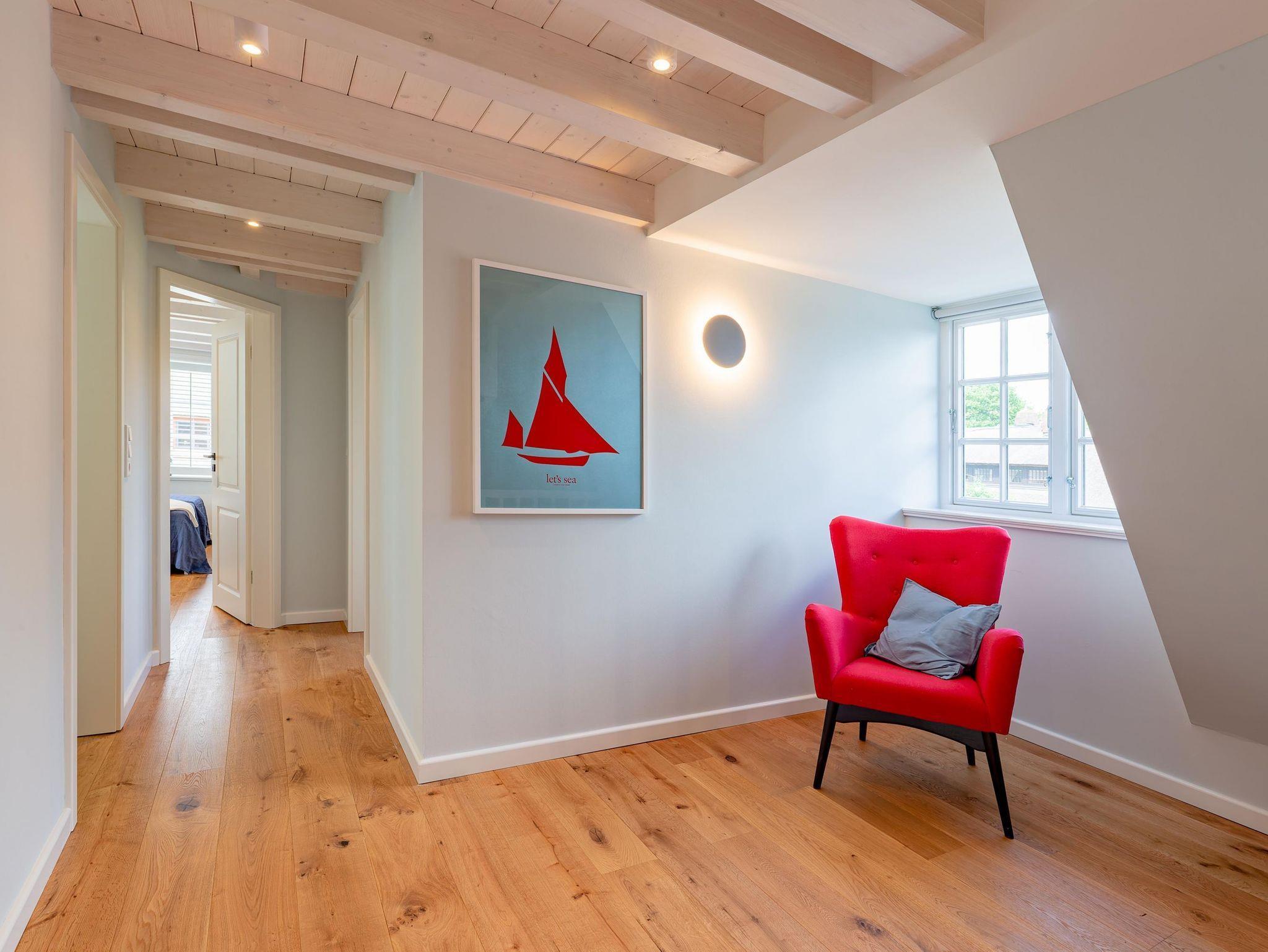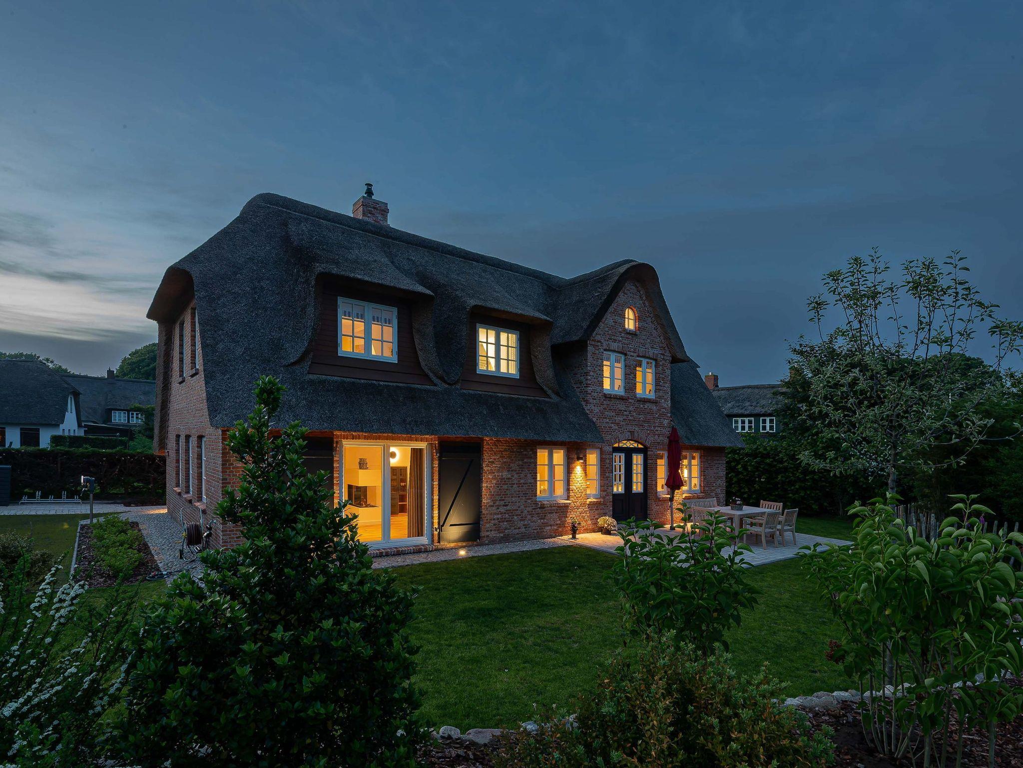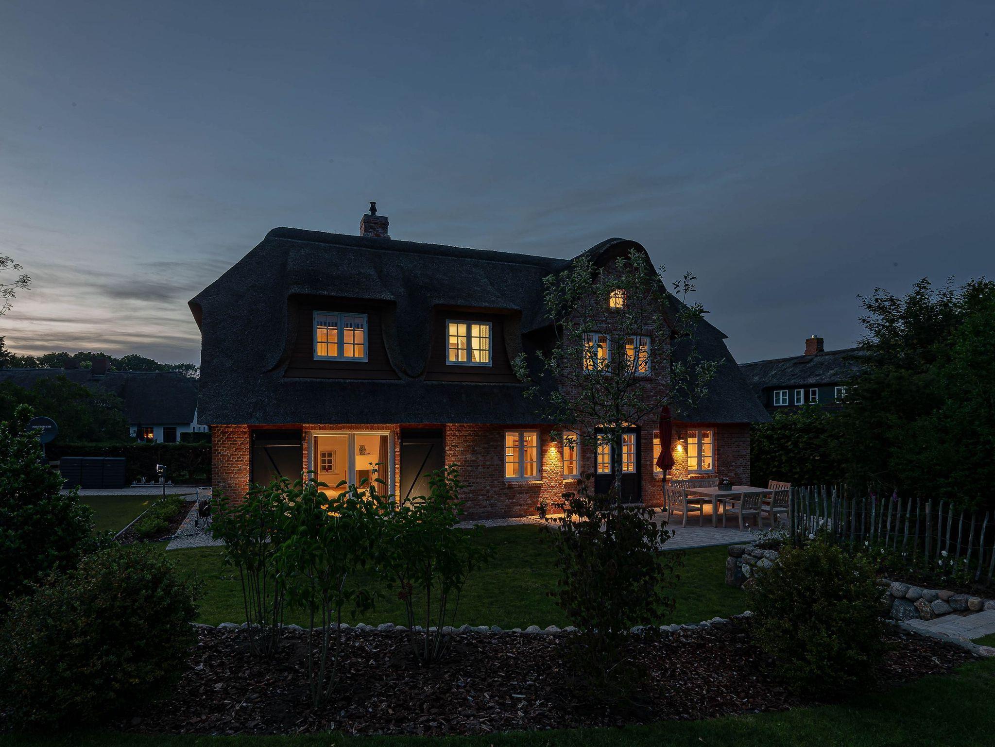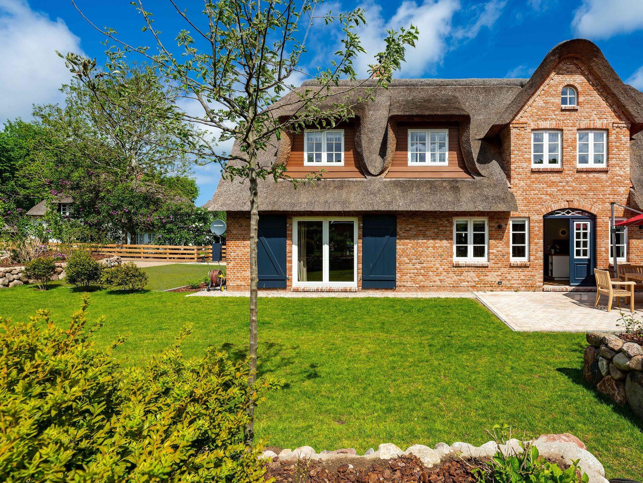Verbringen Sie Ihren Urlaub im schönen Friesendorf Nieblum auf Föhr. Durch die Lage des neu errichteten Einzelhauses in zweiter Reihe hinter einem traditionellen, denkmalgeschützten Kapitänshaus ist das Objekt sehr ruhig, aber dennoch zentral gelegen. Alles ist mit nur wenigen Schritten zu erreichen. Das Reethaus glänzt mit einer Terrasse und schönem Garten. Im Erdgeschoss erwarten Sie eine große Küche mit Kochinsel, ein gemütlicher Ess- und Wohnbereich mit Gaskamin und ein separates Arbeitszimmer. Im Obergeschoss befinden sich Schlafräume und Bäder, im Dachgeschoss die Sauna mit Ruhezone. Alles ist bereit für Erholung pur.