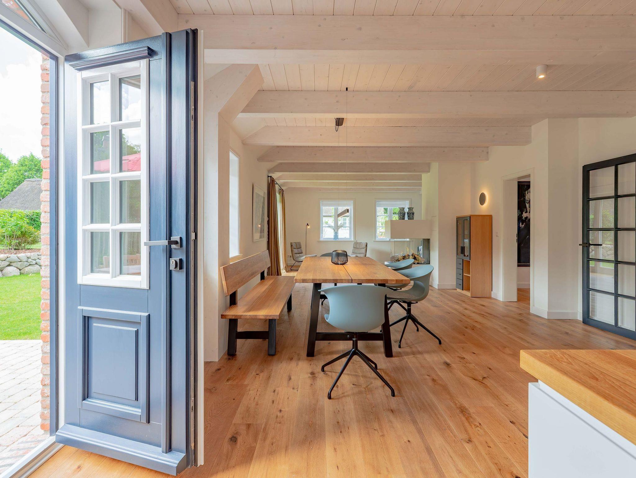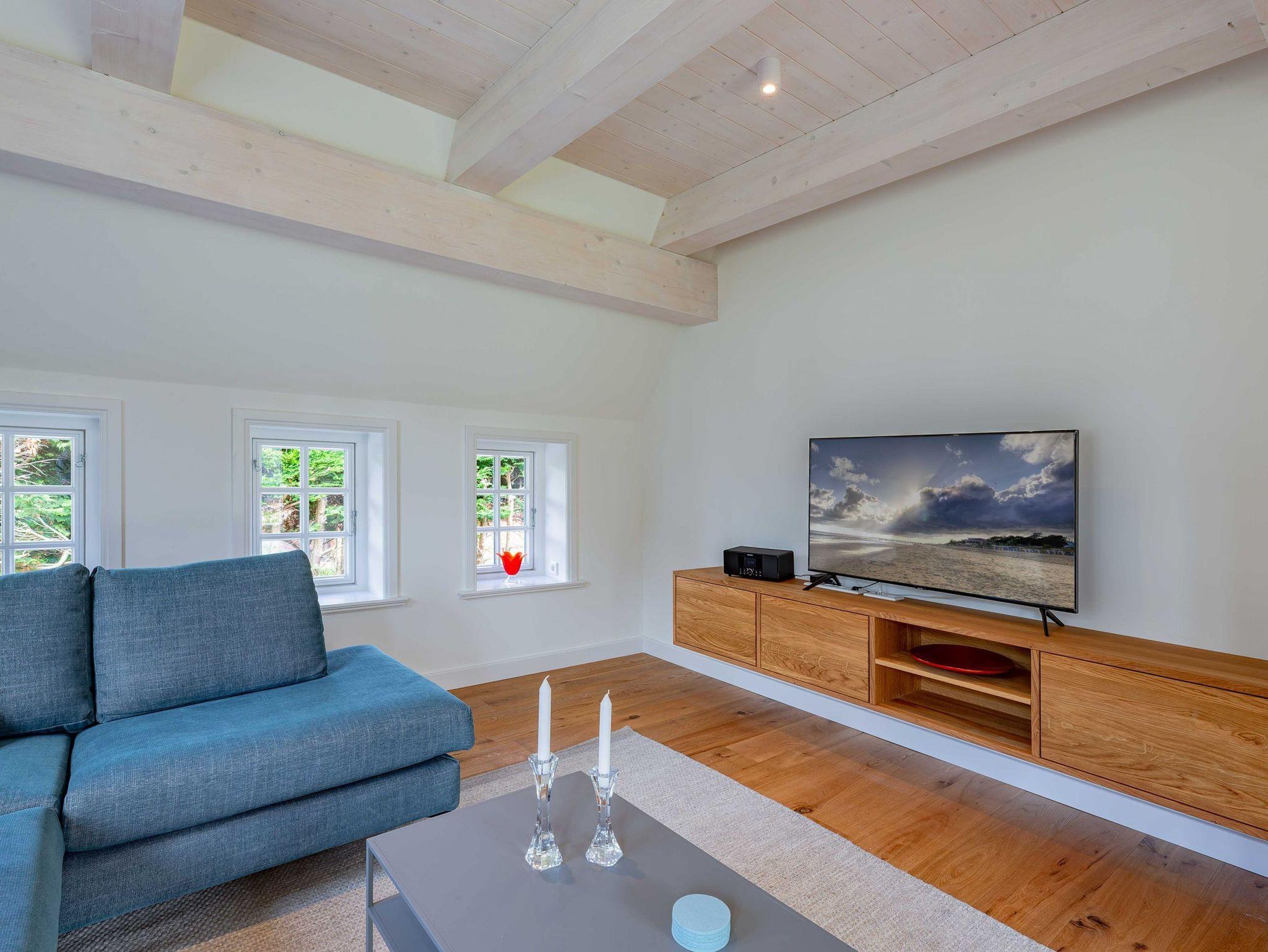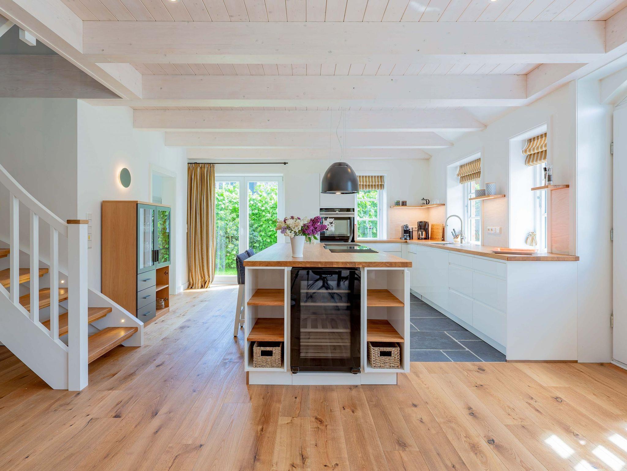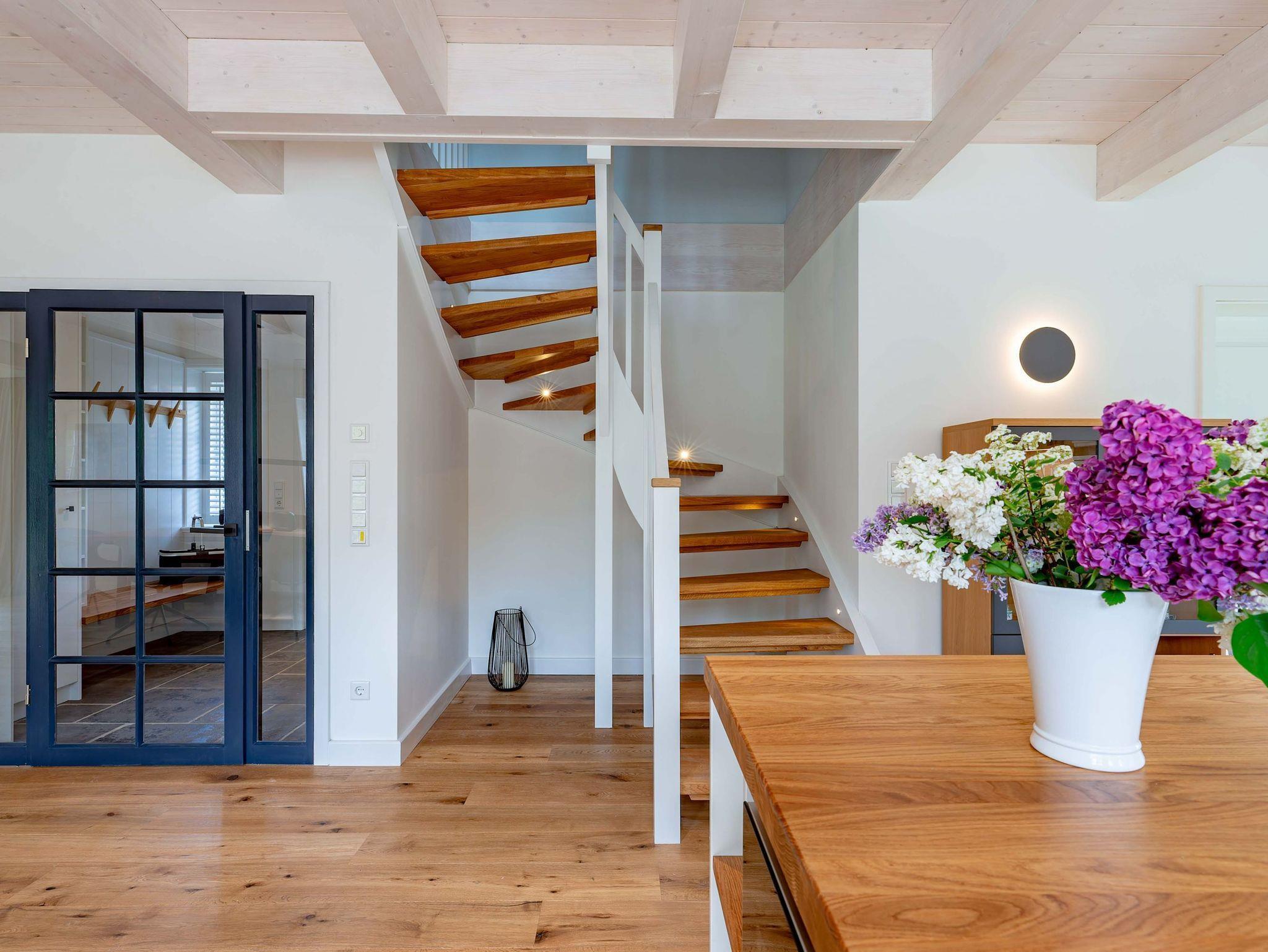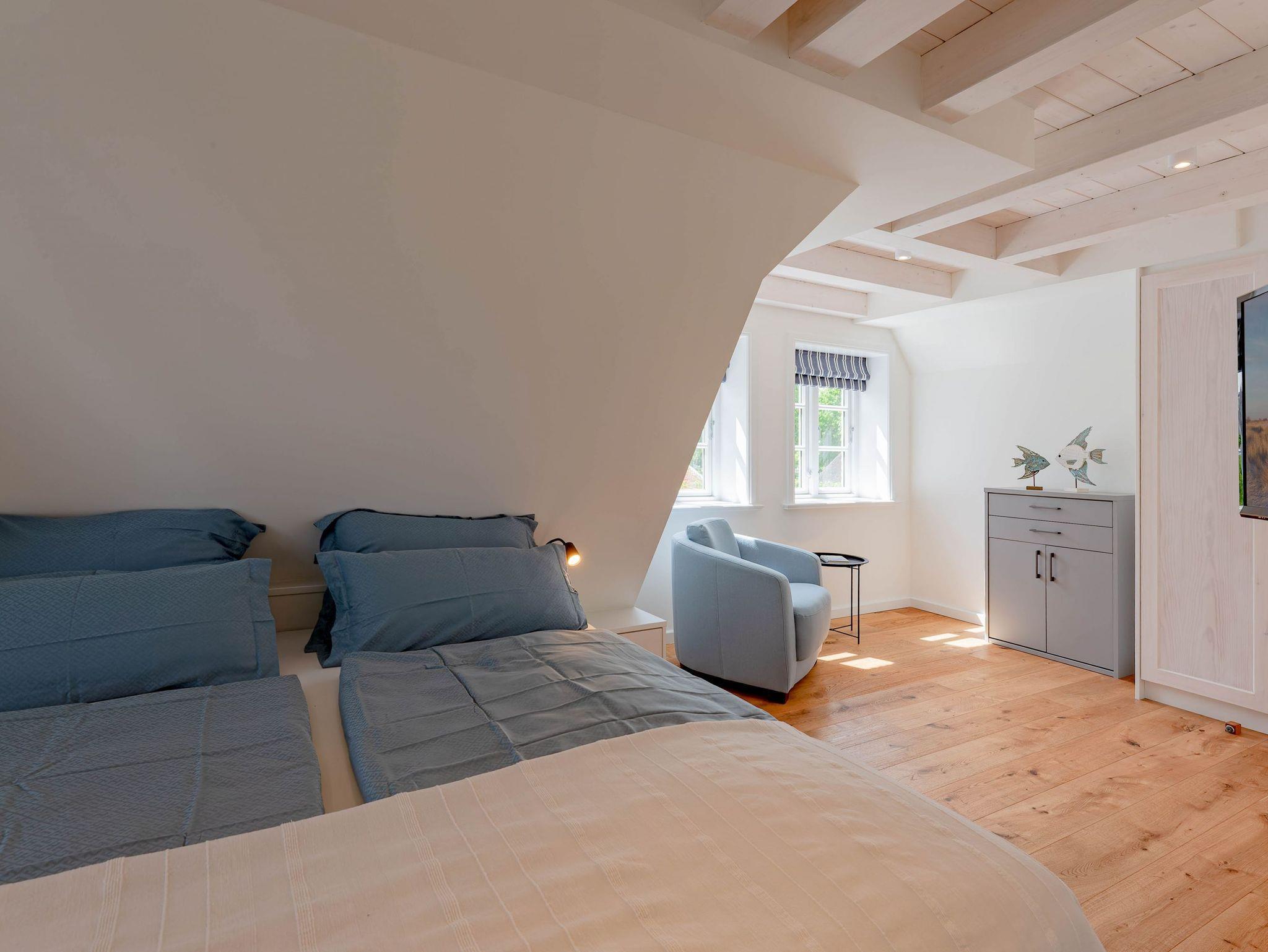 Verbringen Sie Ihren Urlaub im schönen Friesendorf Nieblum auf Föhr. Durch die Lage des neu errichteten Einzelhauses in zweiter Reihe hinter einem traditionellen, denkmalgeschützten Kapitänshaus ist das Objekt sehr ruhig, aber dennoch zentral gelegen. Alles ist mit nur wenigen Schritten zu erreichen. Das Reethaus glänzt mit einer Terrasse und schönem Garten. Im Erdgeschoss erwarten Sie eine große Küche mit Kochinsel, ein gemütlicher Ess- und Wohnbereich mit Gaskamin und ein separates Arbeitszimmer. Im Obergeschoss befinden sich Schlafräume und Bäder, im Dachgeschoss die Sauna mit Ruhezone. Alles ist bereit für Erholung pur.