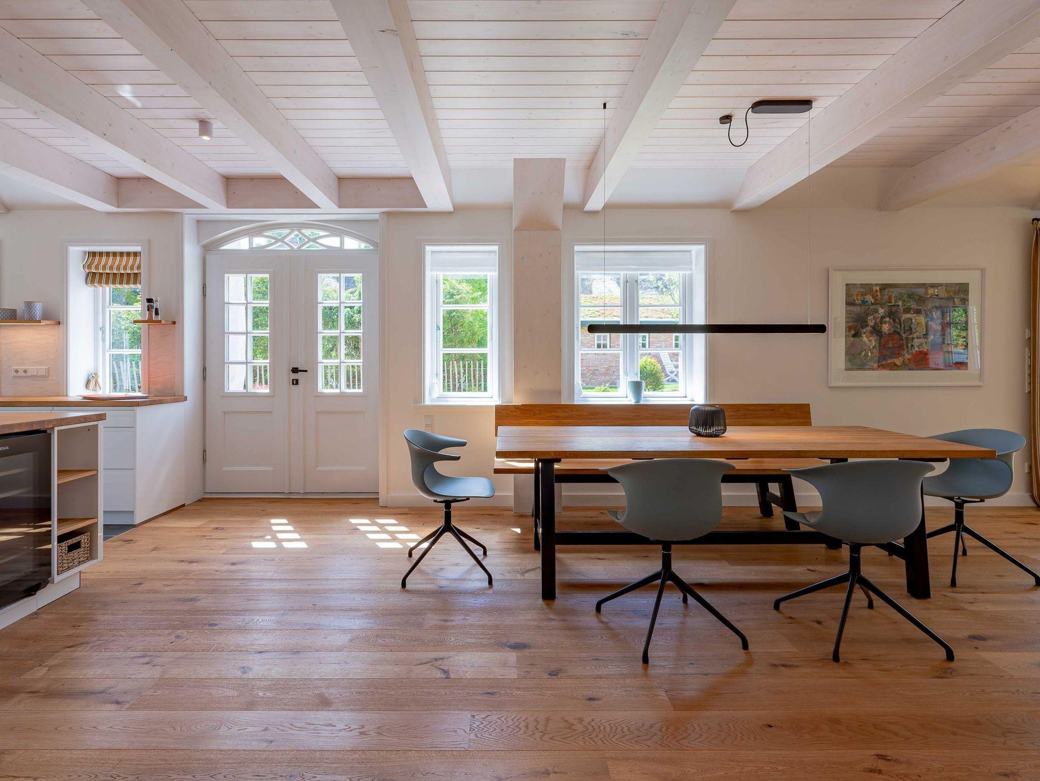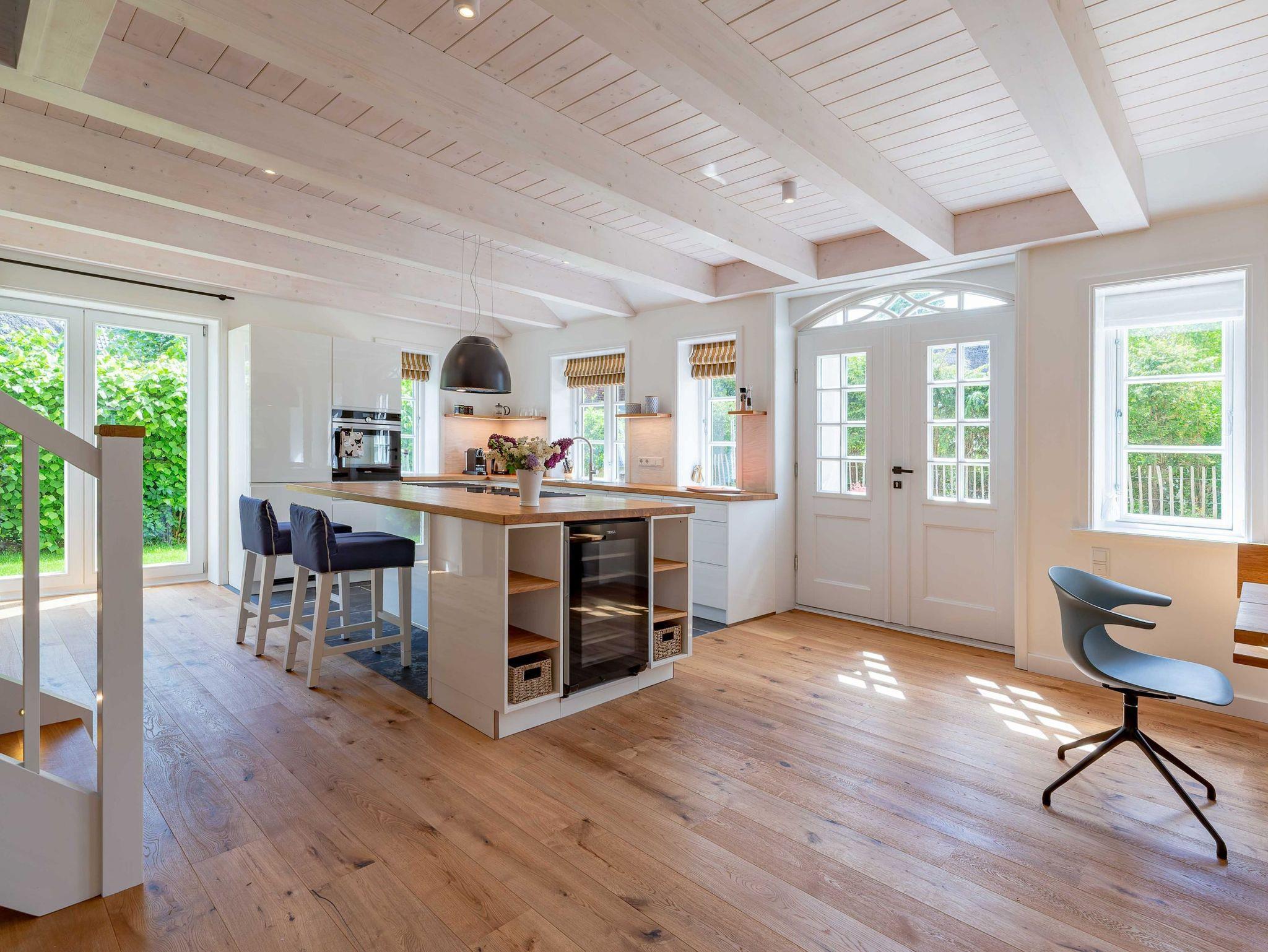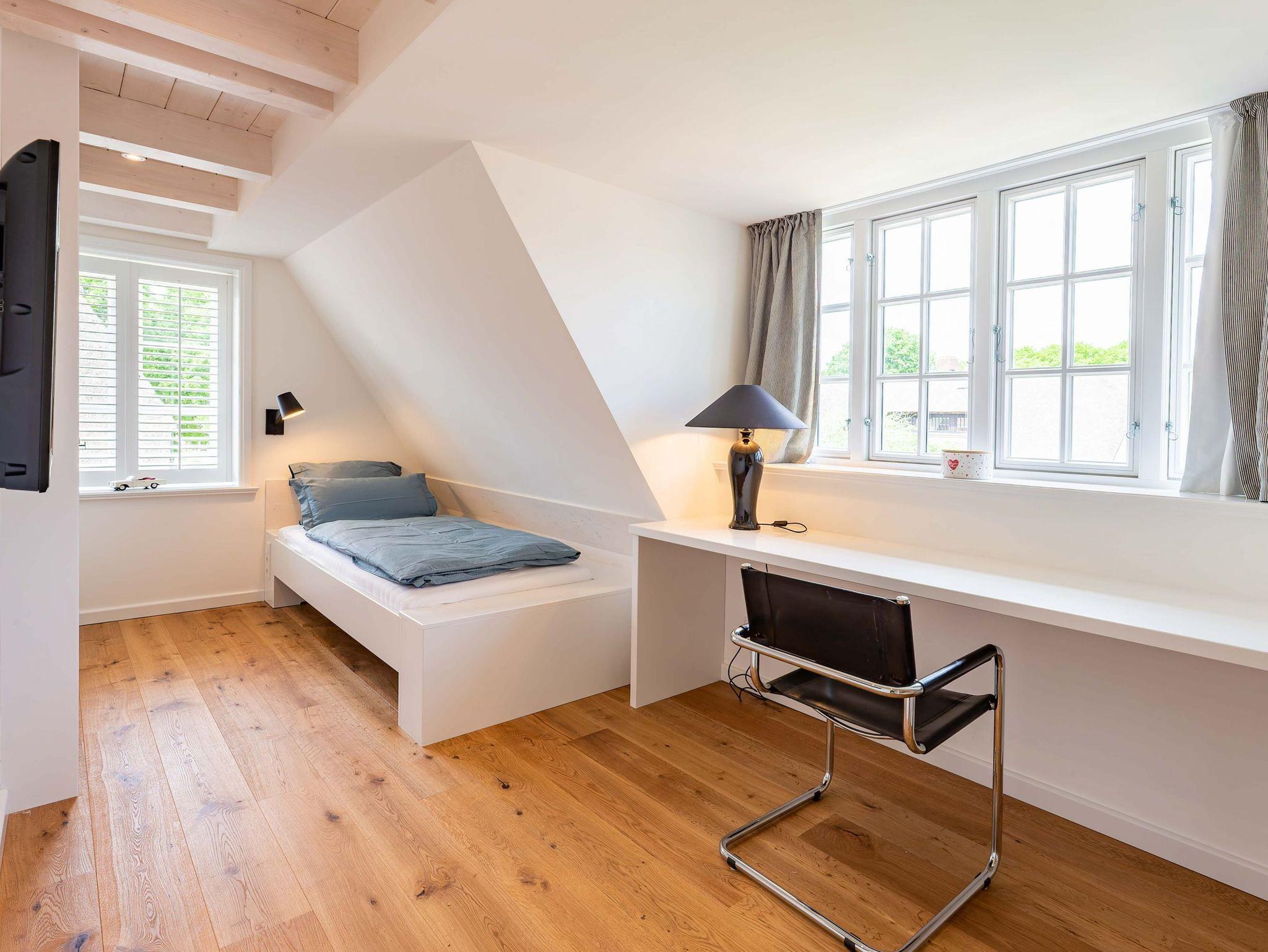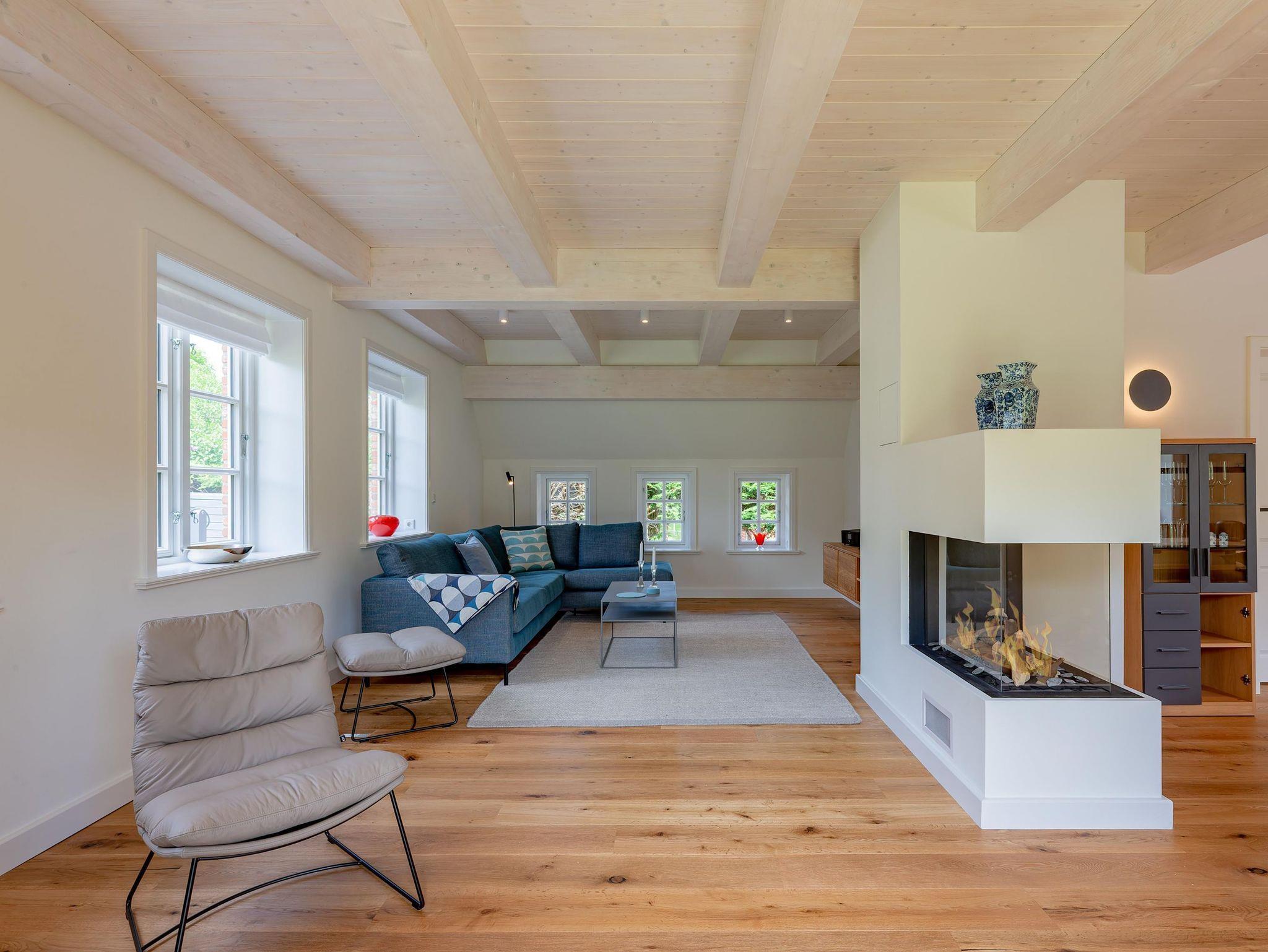 Verbringen Sie Ihren Urlaub im schönen Friesendorf Nieblum auf Föhr. Durch die Lage des neu errichteten Einzelhauses in zweiter Reihe hinter einem traditionellen, denkmalgeschützten Kapitänshaus ist das Objekt sehr ruhig, aber dennoch zentral gelegen. Alles ist mit nur wenigen Schritten zu erreichen. Das Reethaus glänzt mit einer Terrasse und schönem Garten. Im Erdgeschoss erwarten Sie eine große Küche mit Kochinsel, ein gemütlicher Ess- und Wohnbereich mit Gaskamin und ein separates Arbeitszimmer. Im Obergeschoss befinden sich Schlafräume und Bäder, im Dachgeschoss die Sauna mit Ruhezone. Alles ist bereit für Erholung pur.