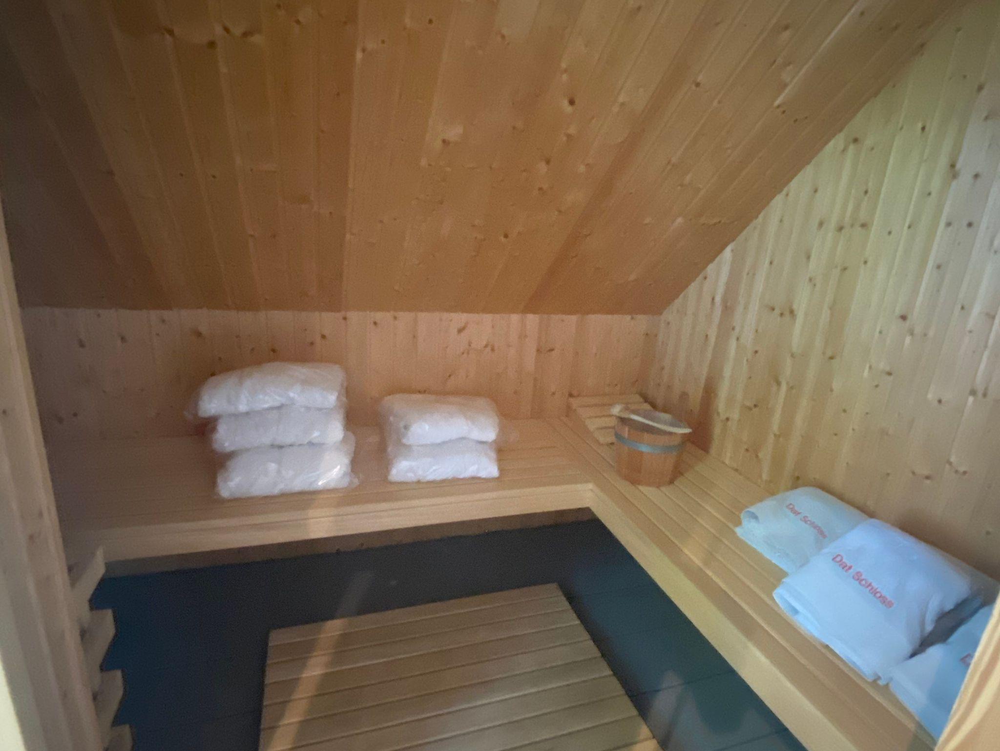 Dat Schloss bietet Platz für bis zu sechs Personen. Das Haus verfügt über zwei Schlafzimmer mit jeweils einem komfortablen Doppelbett sowie ein weiteres Schlafzimmer mit zwei einzelnen hintereinanderliegenden Betten. Zwei moderne Duschbäder und drei Toiletten sorgen für ausreichend Komfort und Privatsphäre. W-Lan ist im gesamten Haus verfügbar.