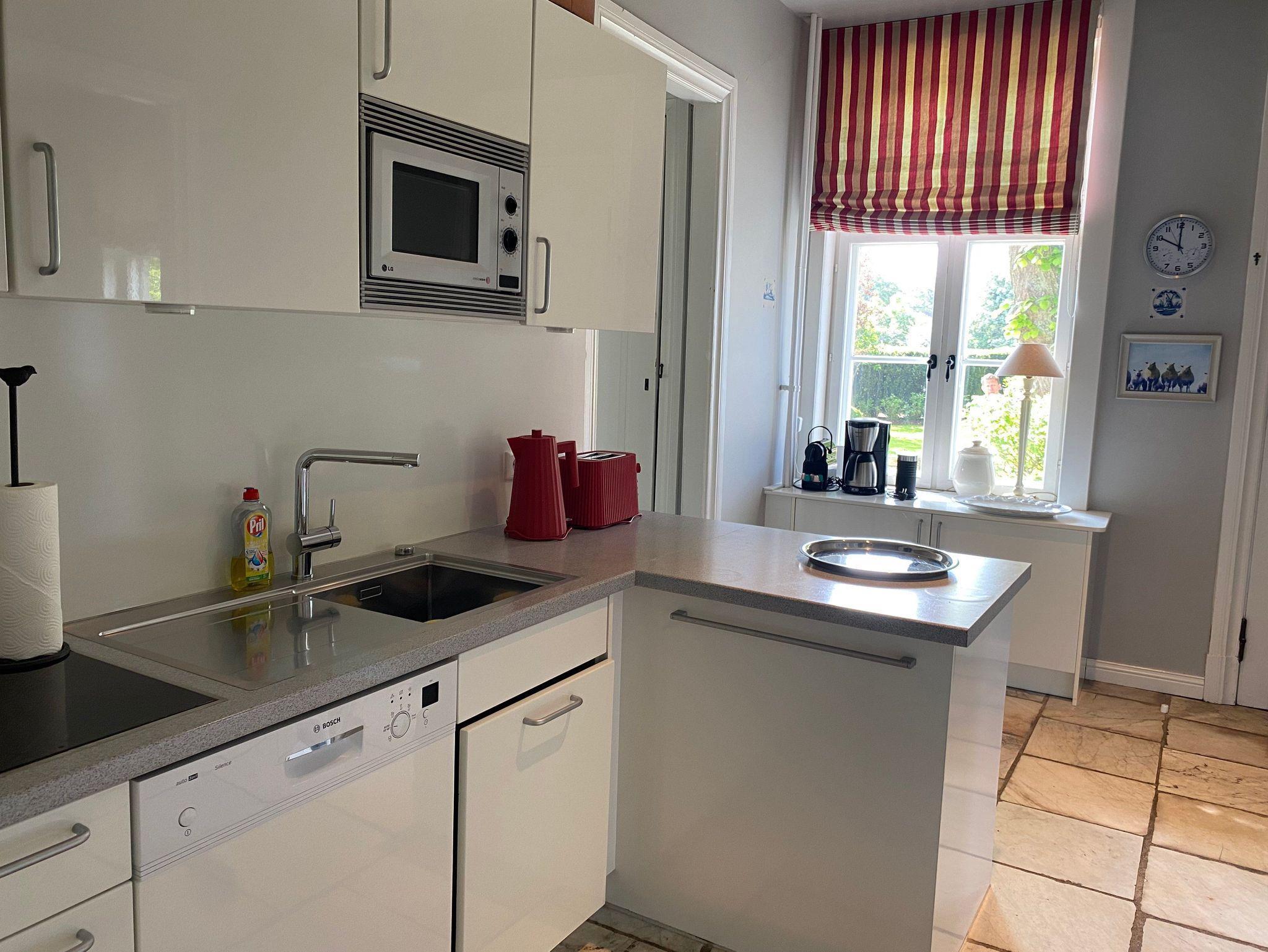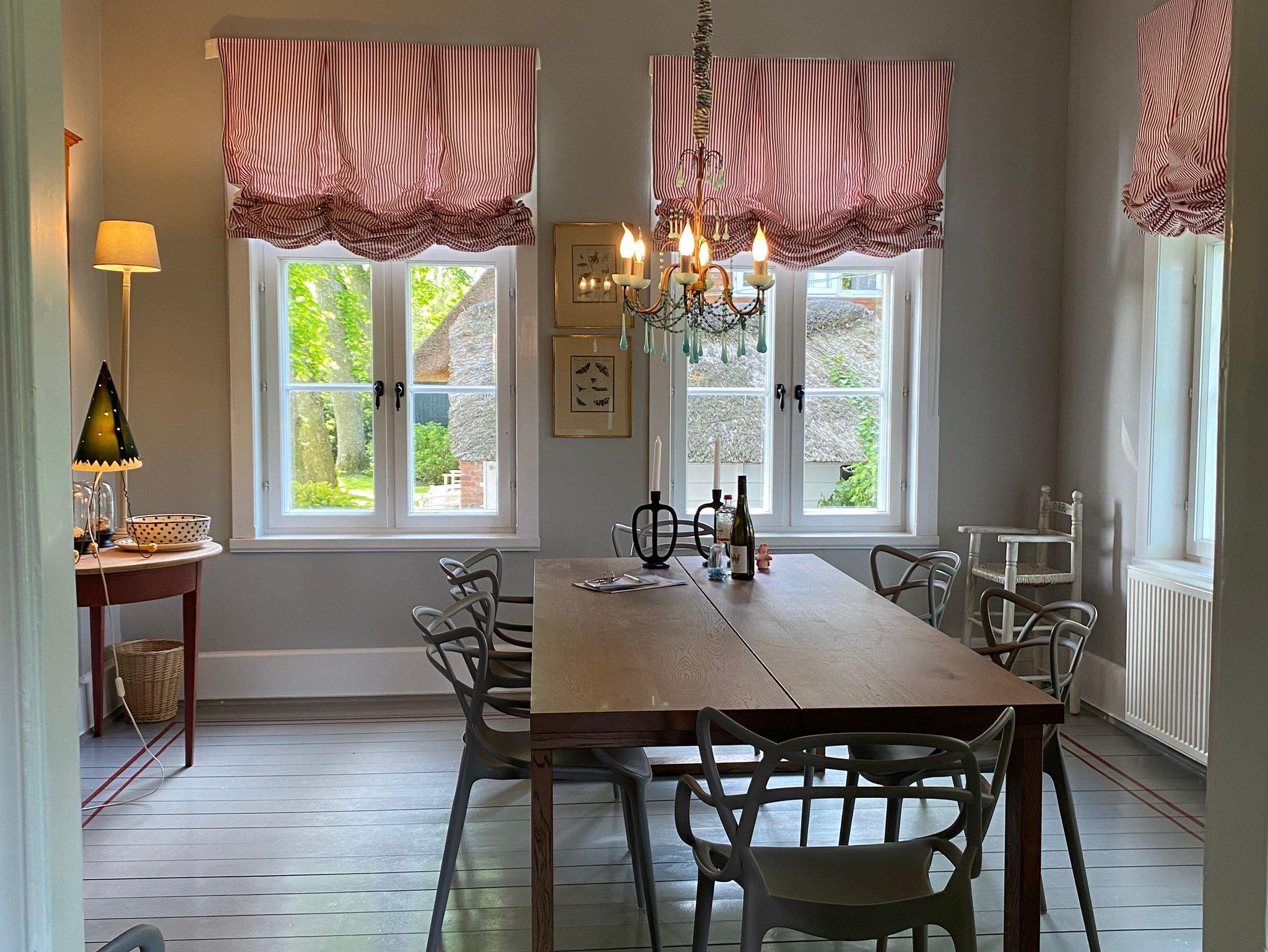 Nach der letzten Renovierung im Jahr 2018 erstrahlt Dat Schloss in neuem Glanz und bietet Ihnen modernen Komfort und stilvolles Ambiente. Die Einrichtung vereint geschmackvolle Designmöbel namhafter Designer wie Phillip Starck, Ailleen Grey und Michele de Lucci mit antiken Schätzen aus dem 18. Jahrhundert aus Schleswig-Holstein. Das Haus besticht durch seine einzigartige Atmosphäre.