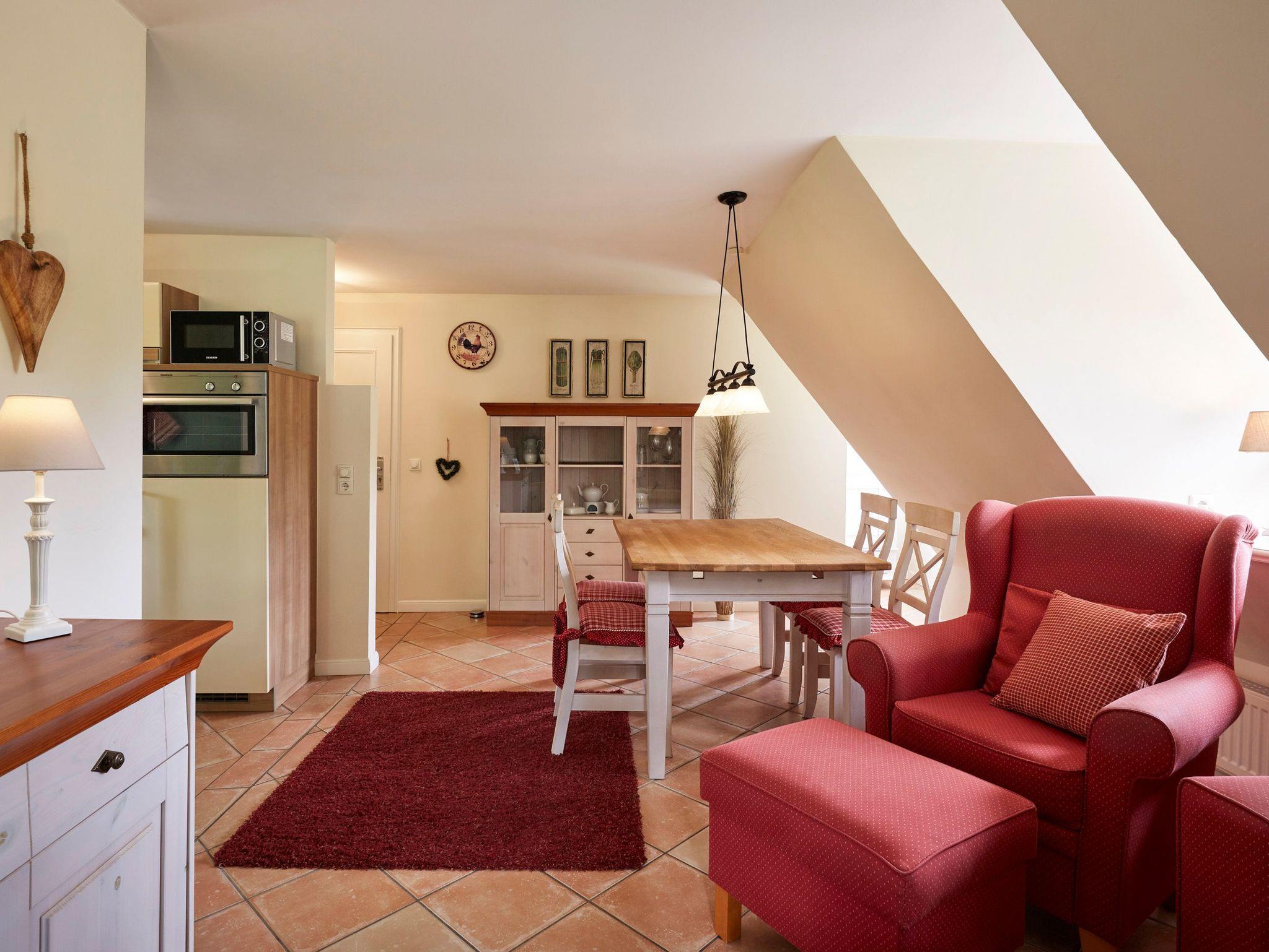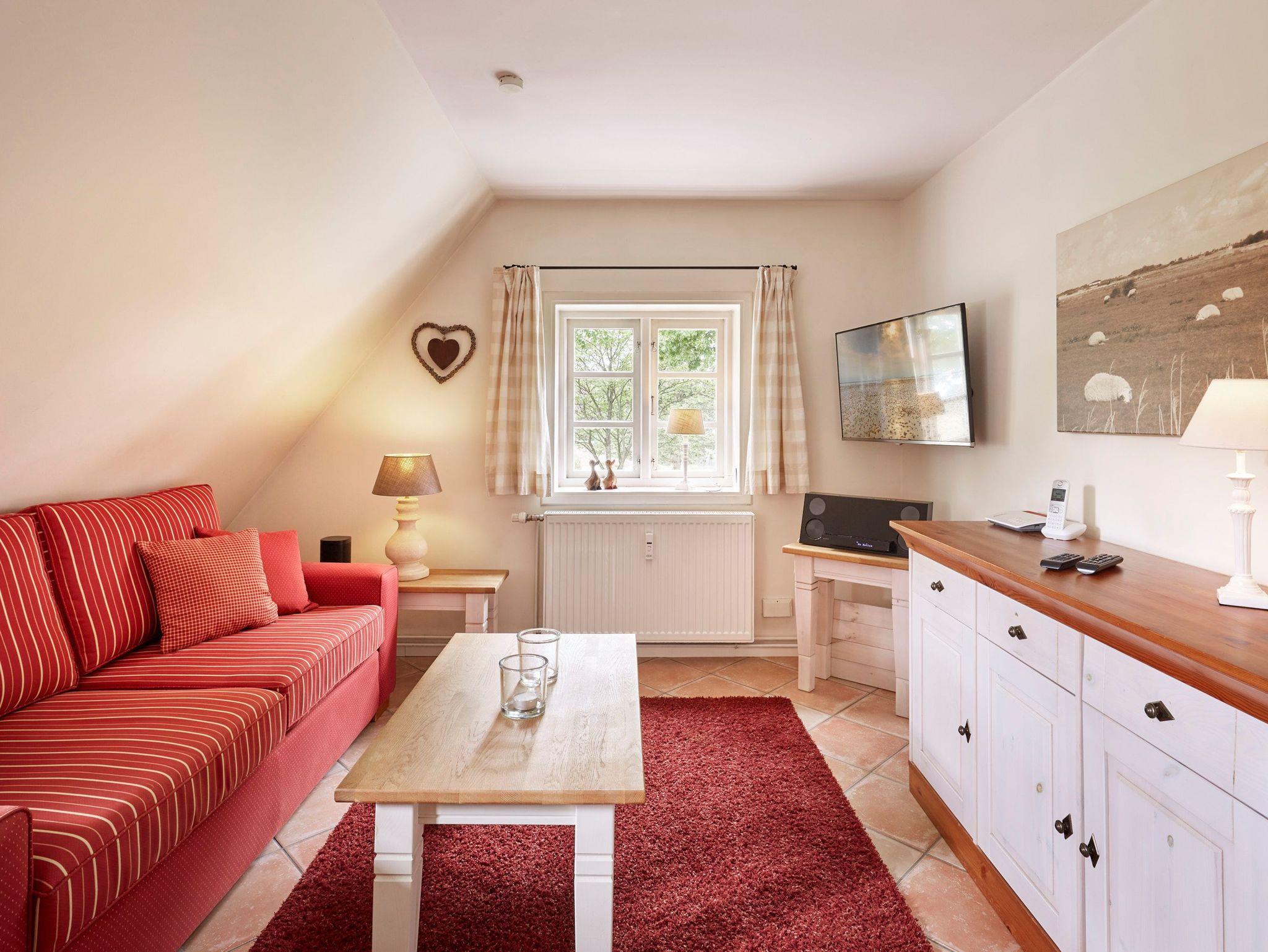 Das langgestreckte Witthüs in Nieblum, direkt gegenüber de Meere, dem Dorfteich in Nieblum. Das schöne Gebäude mit dem Doppelgiebel steht auf einem ca.2000 qm großen Grundstück, welches zur Straße hin mit einem Friesenwall und einem Holztor begrenzt wird. Das Entennest im Obergeschoss bietet Ihnen auf 40 qm alles für einen gemütlichen Urlaub im schönen Dorf Nieblum. Der Wohn-Essbereich mit angeschlossener Küche, ein Duschbad und ein Doppelbettschlafzimmer stehen Ihnen zur Verfügung. Im Garten haben Sie einen Sitzplatz mit Strandkorb, den Sie nutzen können. Aus dem Fenster haben Sie einen schönen Blick auf den Dorfteich. Mit nur wenigen Schritten sind Sie schon in Nieblum und bummeln entlang der schönen Bauerngärten und alten Kapitänshäuser.