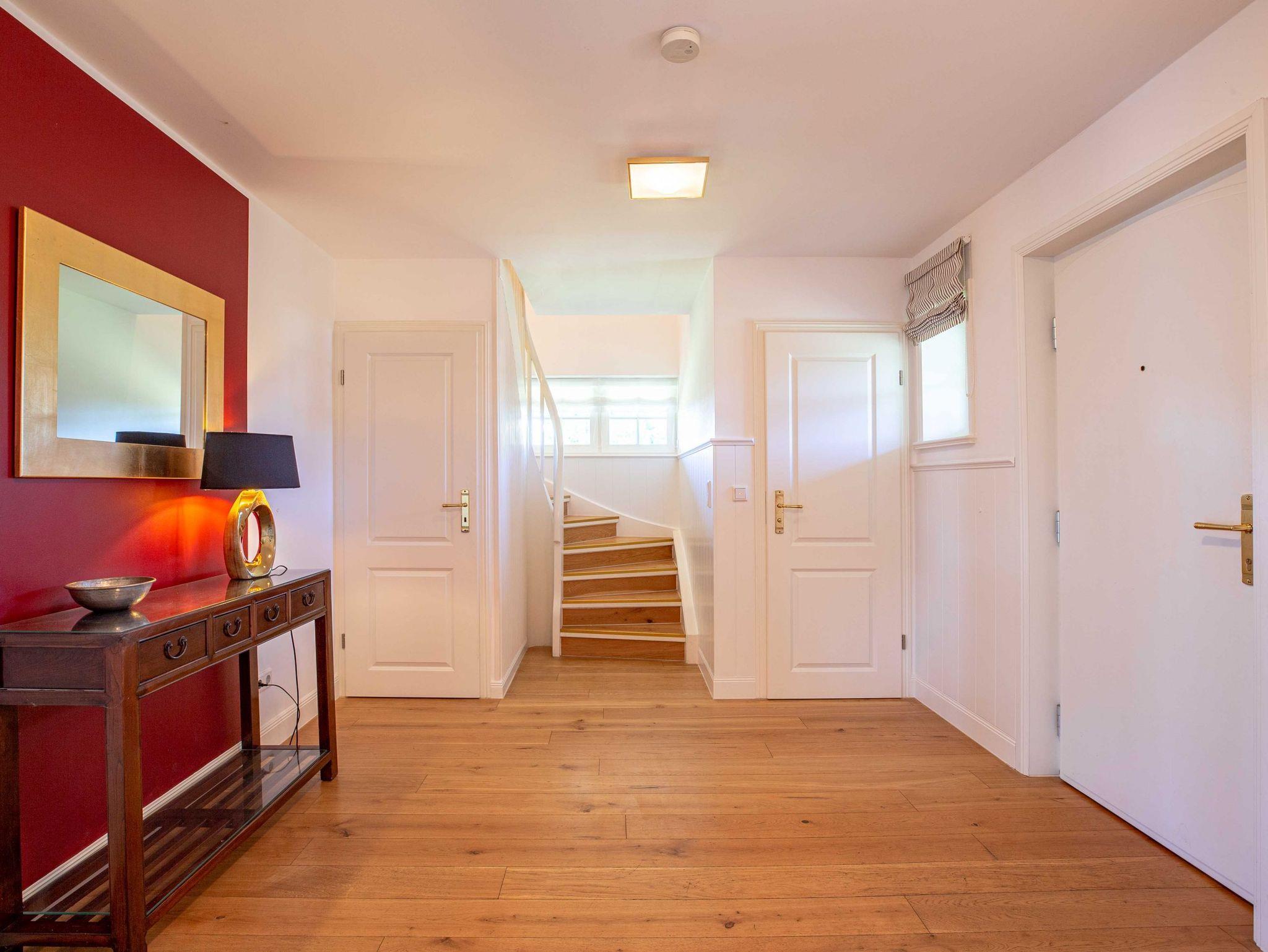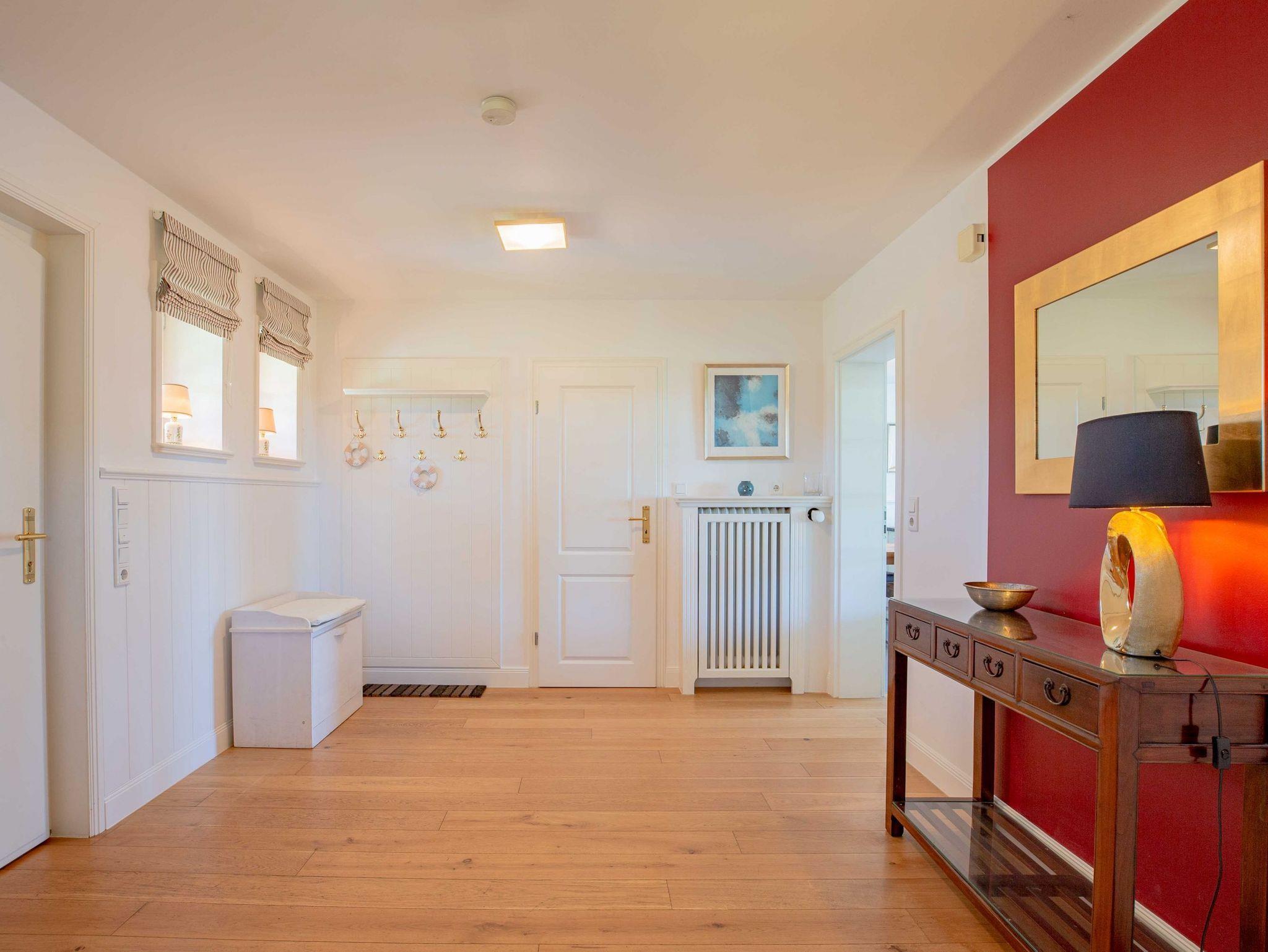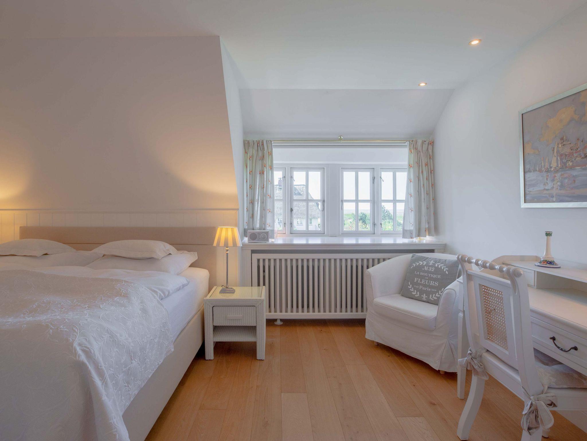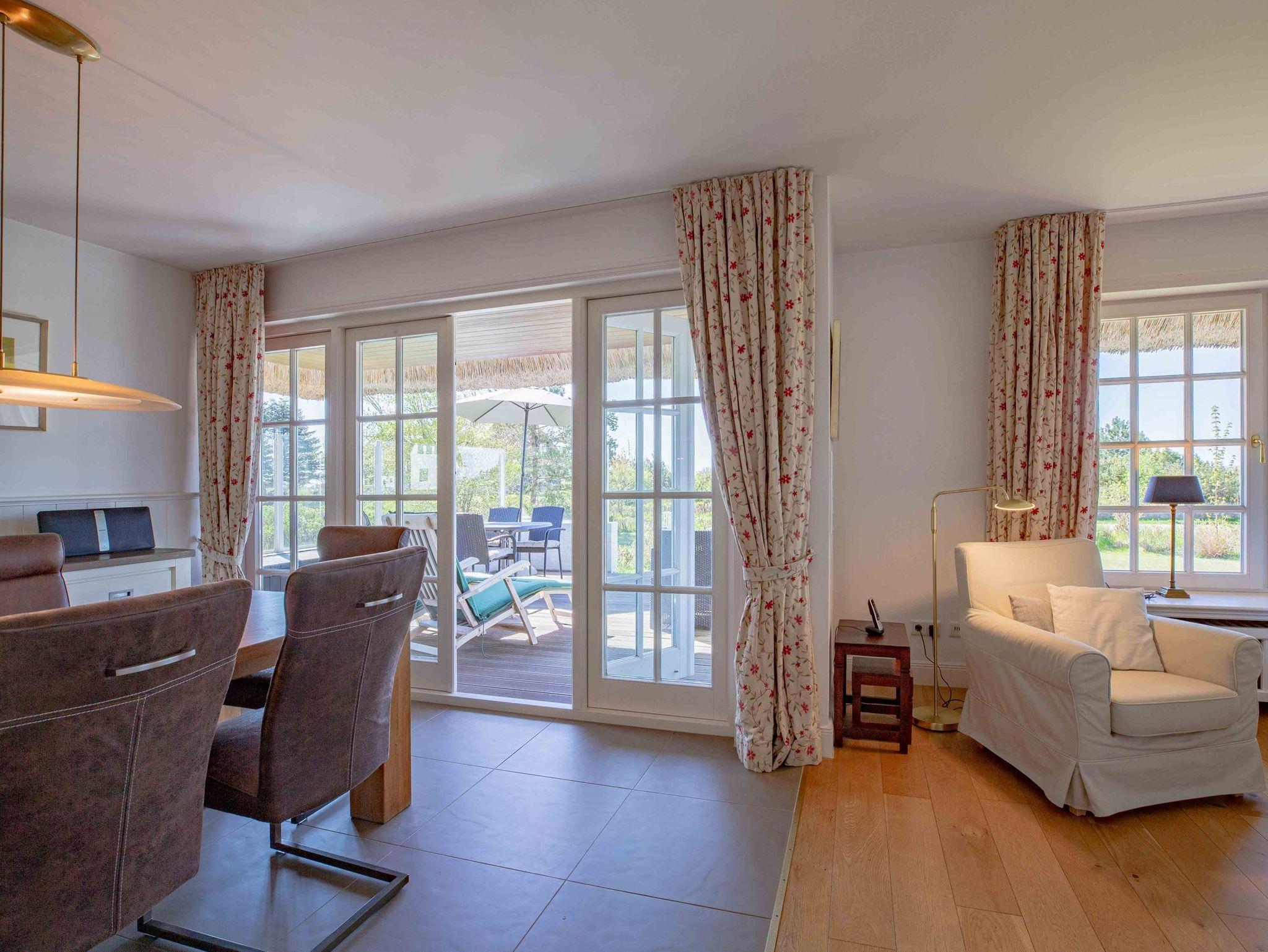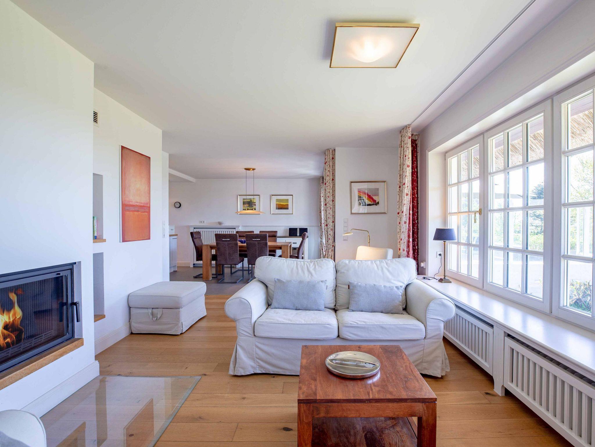 Herzlich Willkommen in unserem Haus am Wasser. Das Einzelhaus steht in absoluter Spitzenlage zwischen Nieblum und Wyk, in unmittelbarer Nähe zum Meer und nur wenige Schritte vom schönsten Golfplatz Schleswig Holsteins entfernt. Der exklusive Ortsteil Greveling besteht aus wenigen Einzelhäusern unter Reet, die fast alle auf eigenen kleinen Warften in exponierter Lage direkt an der Nordsee liegen. Hier wohnen Sie einzigartig auf Föhr. Genießen Sie den hohen Komfort und die Großzügigkeit der lichtdurchfluteten Räume in Ihrem Reethaus. Die geschmackvolle Einrichtung begeistert und der herrliche, zur Nordsee liegende Garten mit großer Terrasse und freiem Meerblick verleitet zum Träumen.
