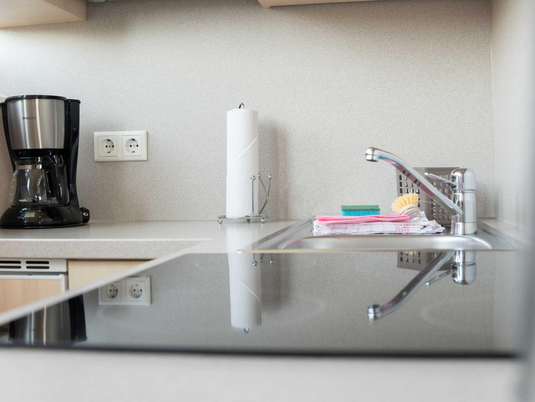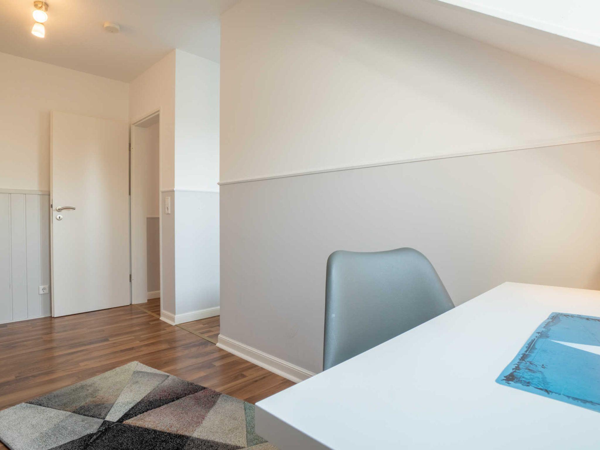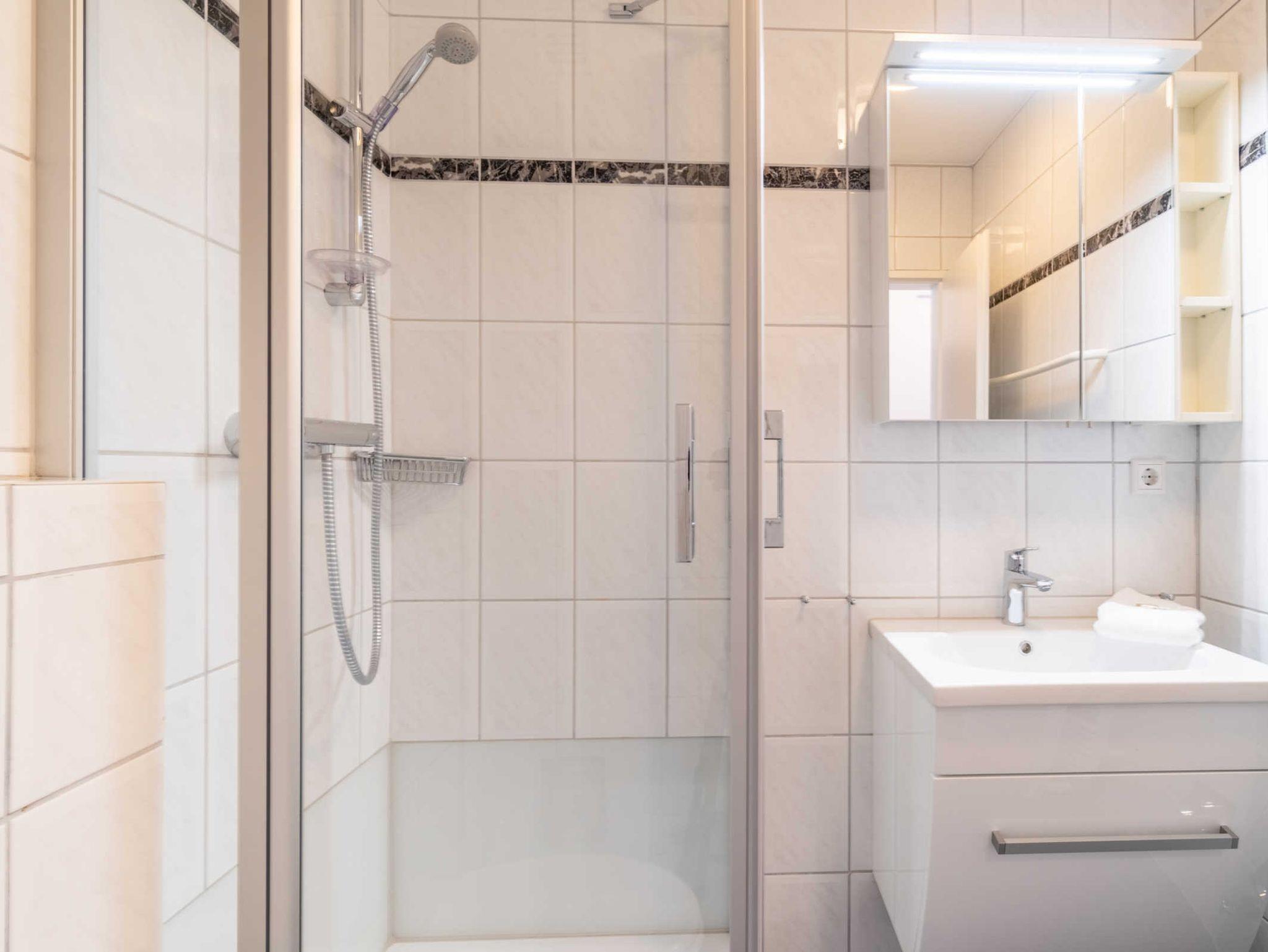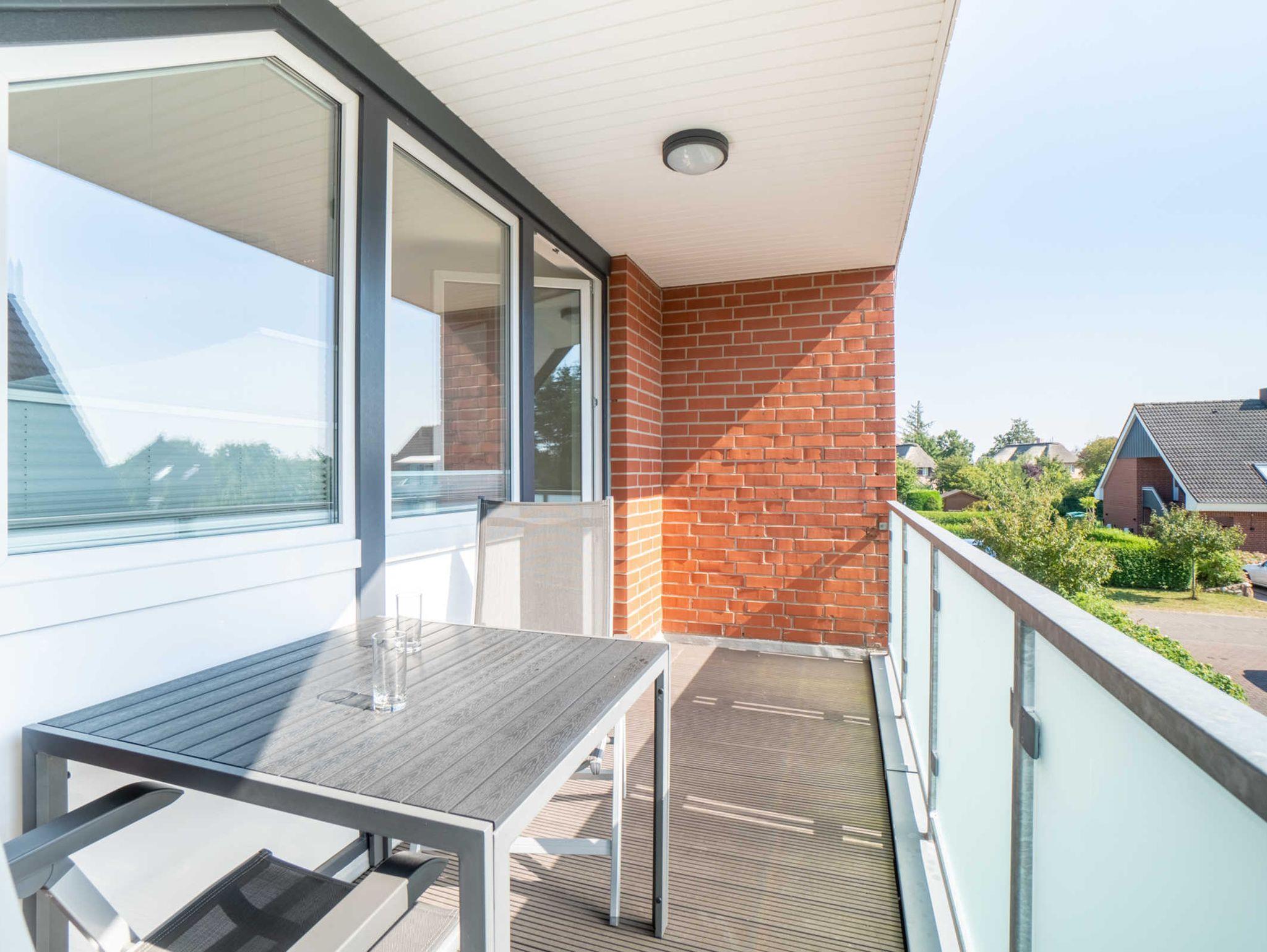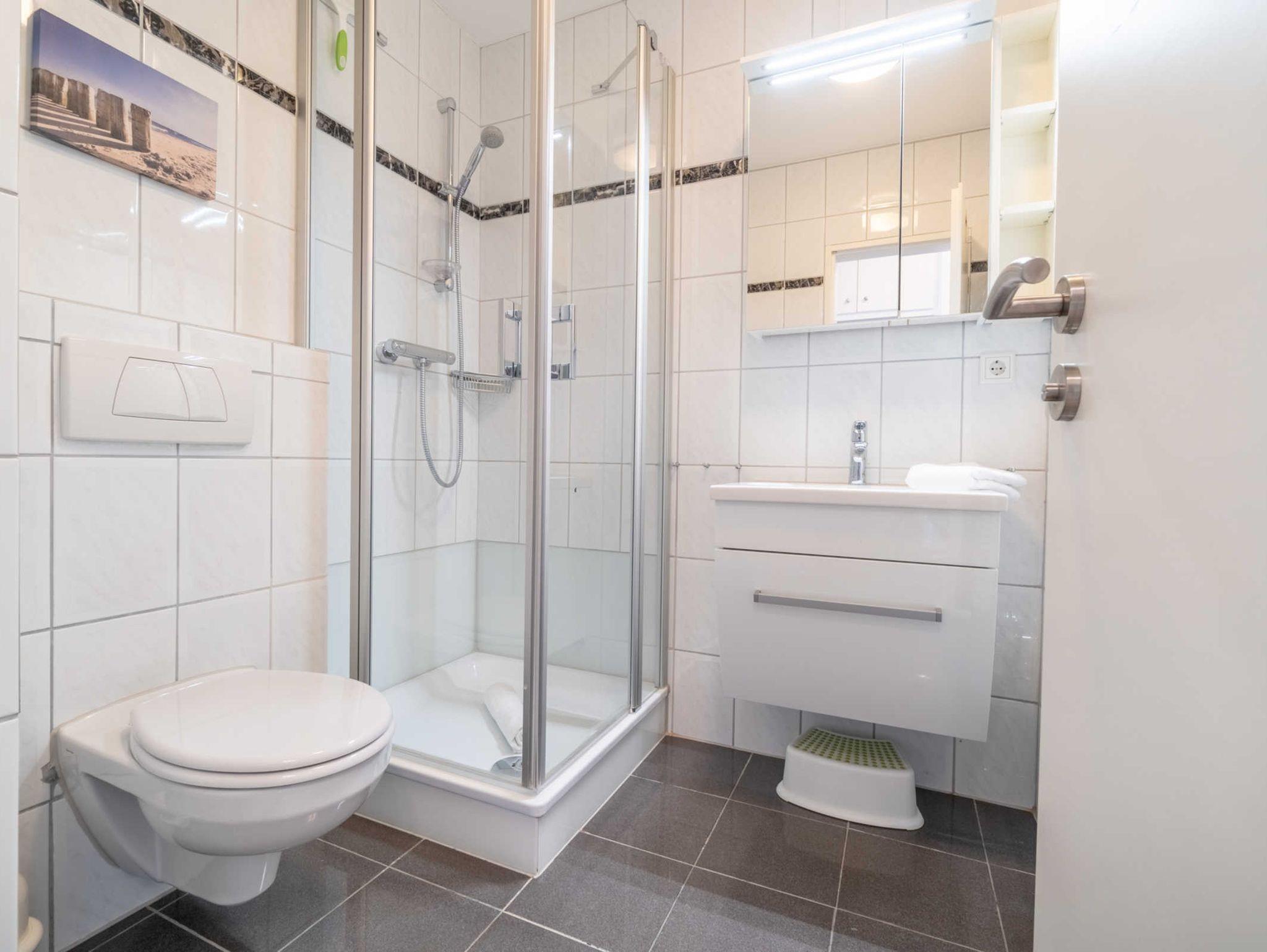 Die Wohnung liegt im Obergeschoss rechts und bietet Platz für bis zu 2 Personen mit Kleinkind. Sie hat einen Zugang zum Westbalkon.
