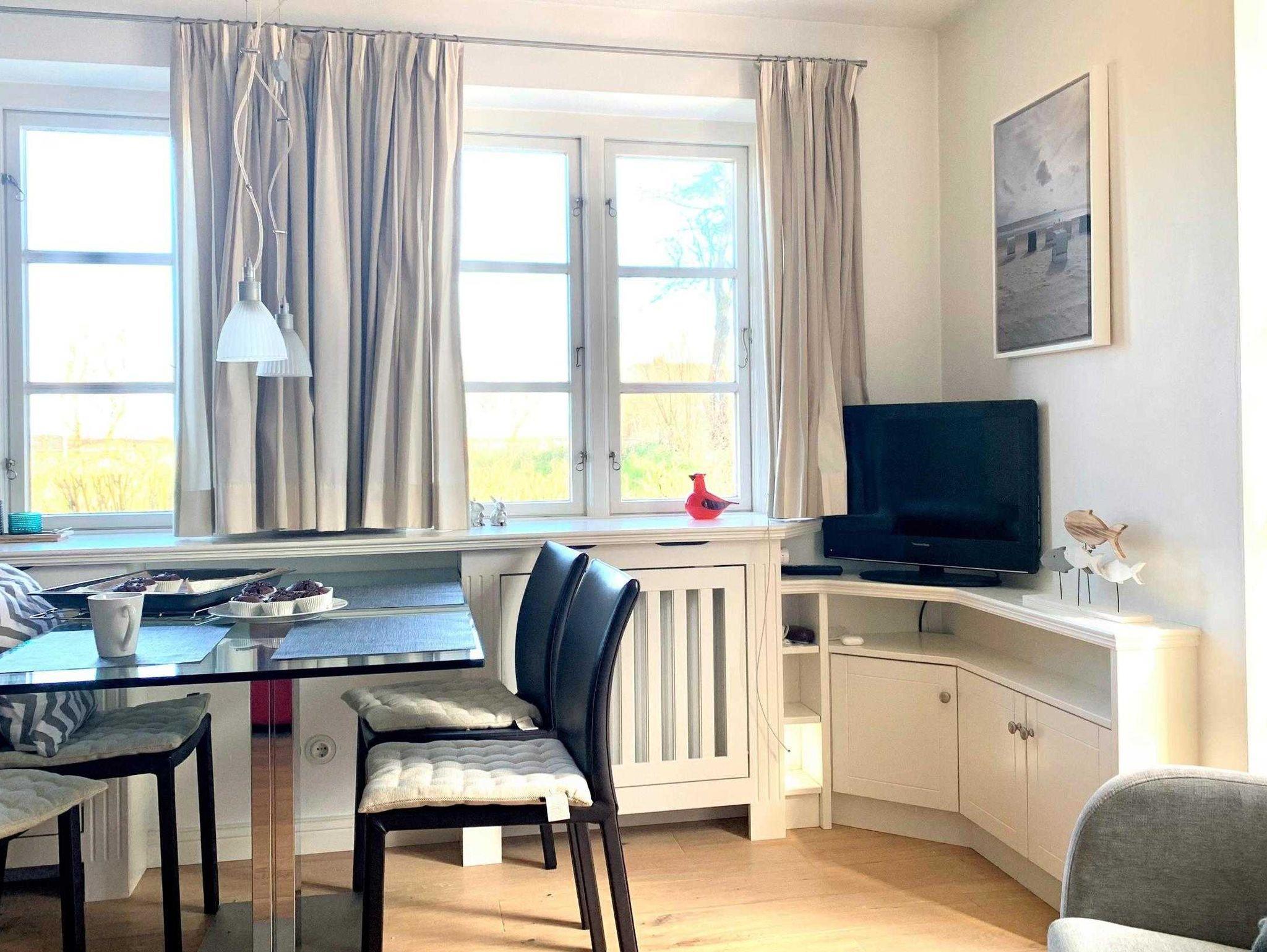 Am Rande des bezaubernden Ortes Nieblum befindet sich diese liebevoll eingerichtete EG Ferienwohnung Möwenblick im Haus Amrumfeuer. Fussläufig in etwa 1,4 km Entfernung vom traumhaften Sandstrand liegt dieses idyllische Kleinod mit schönem Blick auf eine Koppel, auf der sich Hasen und Fasane beobachten lassen. Das helle und freundliche Wohnzimmer lädt zu kuscheligen Abenden nach entspannten Strandtagen ein. Auf der Terrasse kann man im Strandkorb beim Frühstück die Morgensonne genießen. Das Schlafzimmer mit qualitativ hochwertigen Einbauten besitzt viel Stauraum für Ihre Garderobe.Die Ausstattung der Einbauküche beinhaltet alles -inkl.