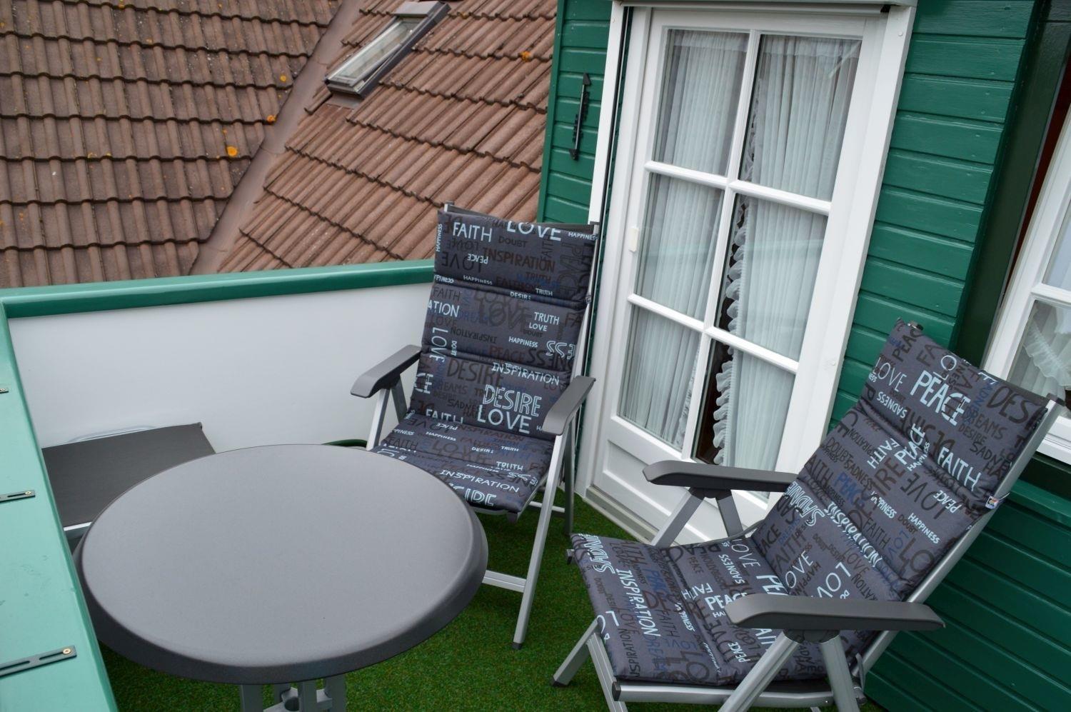 Ihre 1 Zimmer Ferienwohnung befindet sich im 1. Obergschoss. Das helle und freundliche Wohn- & Schlafzimmer hat Zugang zu Ihrem eigenen Südbalkon. Der Wohnbereich mit seinen gemütlichen Ohrensesseln, Flachbild-SAT-TV, und Radio runden das Bild ab. Wohn-/Schlafzimmer ist mit einem Doppelbett ausgestattet. Eine moderne Küchenzeile (komplett ausgestattet) und das Badezimmer mit Duche/WC gehören ebenfalls zur Ausstattung. Eine Unterstellmöglichkeit für Fahrräder ist vorhanden. Alle Fenster der Ferienwohnung sind mit Doppelverglasung(Isolierglas) ausgestattet. Waschmaschine und Trockner stehen Ihnen gegen eine Gebühr zur Verfügung.