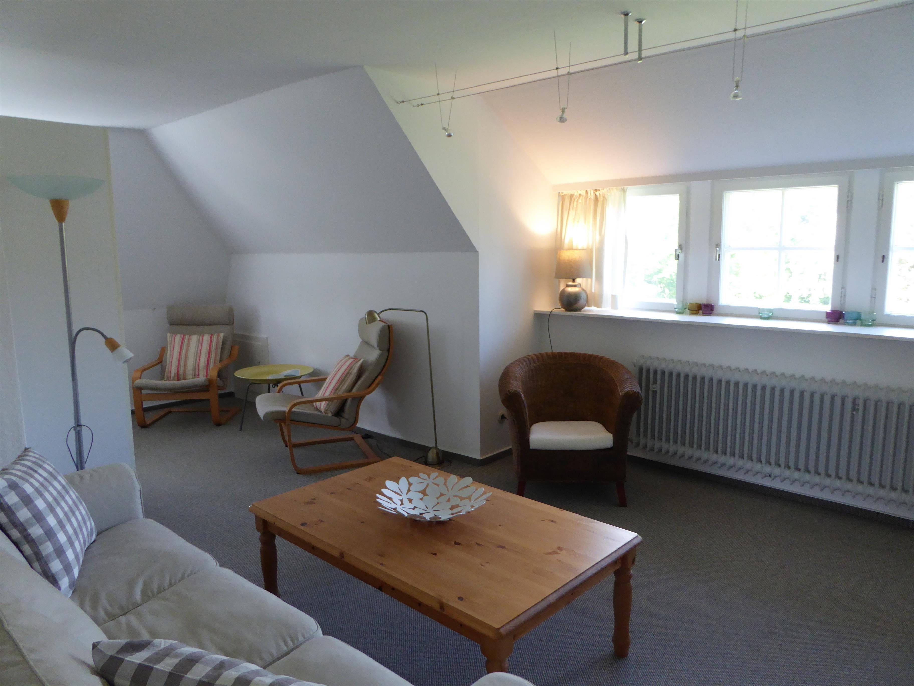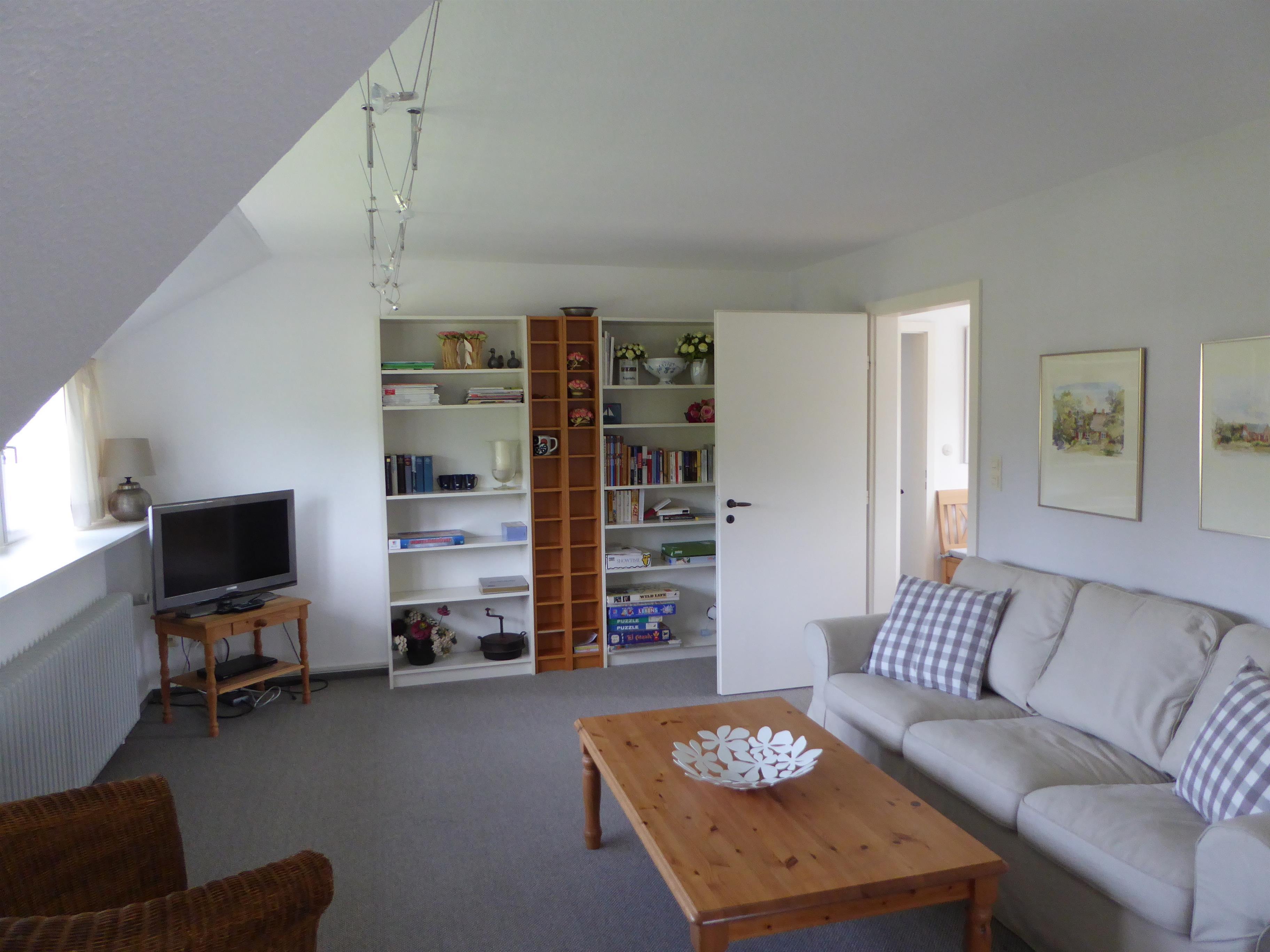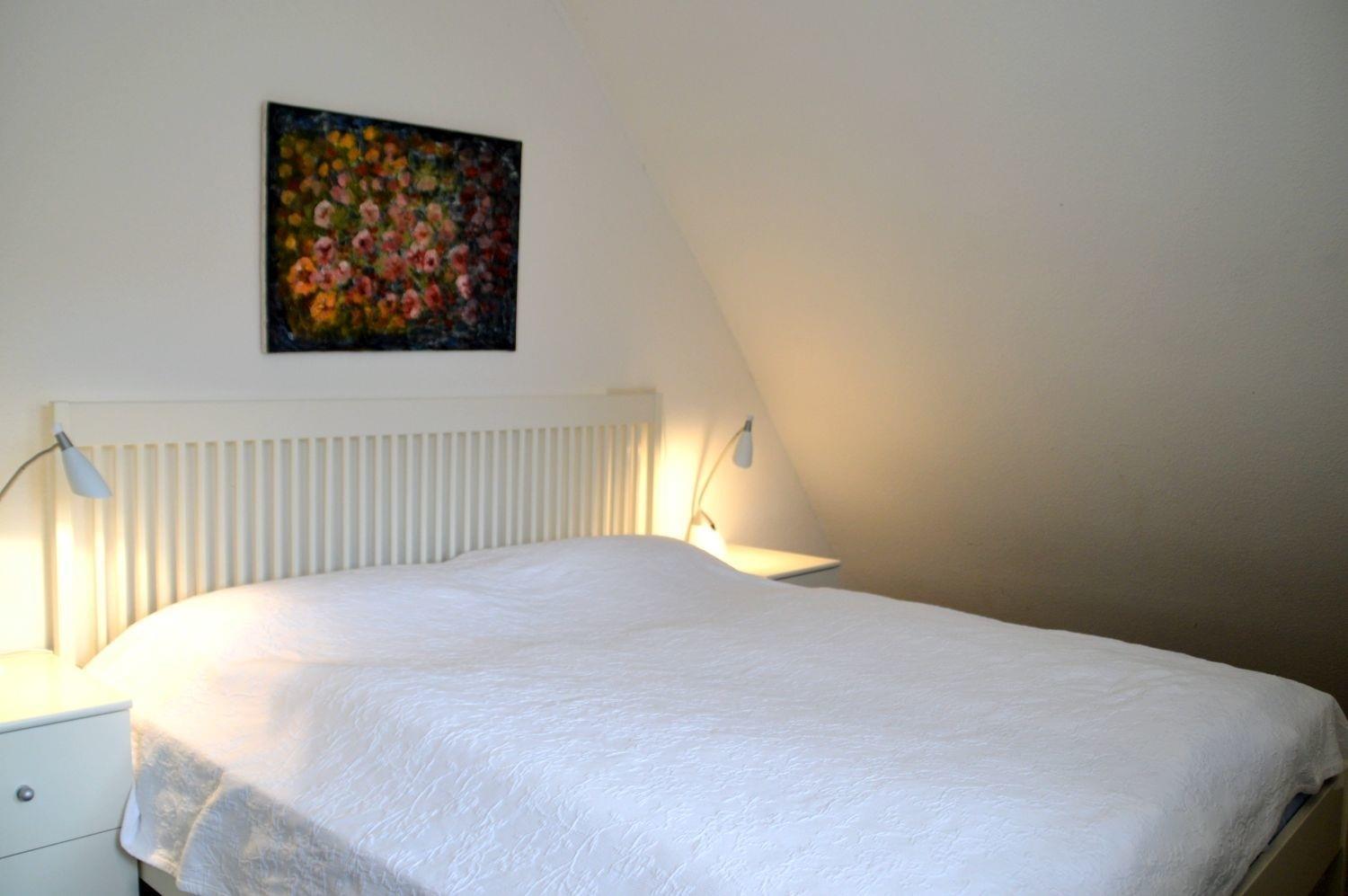 Auf einem sonnigen Gartengrundstück am Ende einer Sackgasse liegt die schöne und ruhige Ferienwohnung in Nieblum/Föhr. Die großzügig geschnittene Wohnung im 1. Obergeschoß bietet Platz für 4 Personen plus Kleinkind.