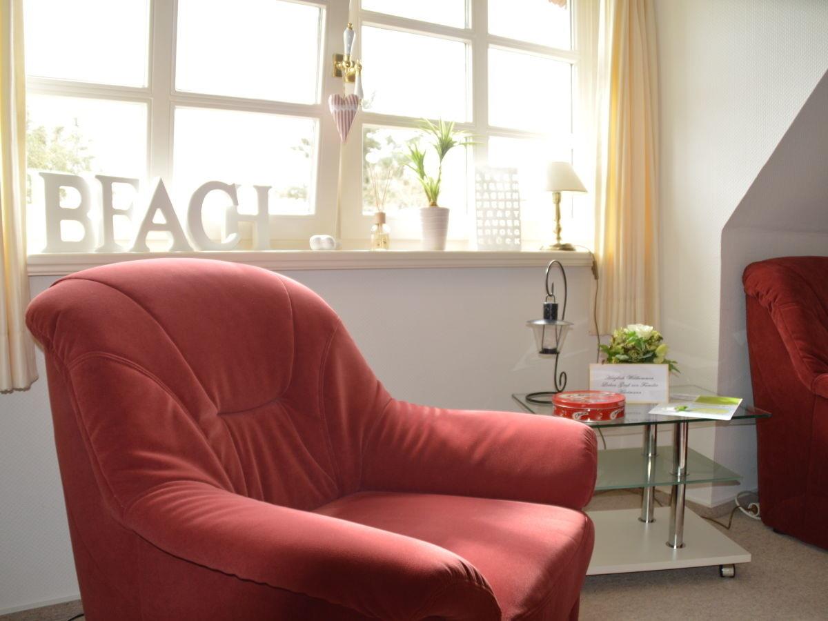 Unsere Ferienwohnung, die neu in der Ferienvermietung 2015 ist, liegt im Obergeschoss. Sie besteht aus einem gemütlichen Wohnzimmer mit integrierten Küchen- und Essplatzbereich. Das separate und neu eingerichtete Schlafzimmer verfügt über ein Doppelbett und einen Kleiderschrank. Das moderne Duschbad ist mit einem Fenster ausgestattet. Zur Wohnung gehört ein schöner Terrassenplatz mit Strandkorb (von April bis Okt) im Garten, sowie ein PKW-Stellplatz. Beide Plätze sind der Wohnung zugeordnet.
