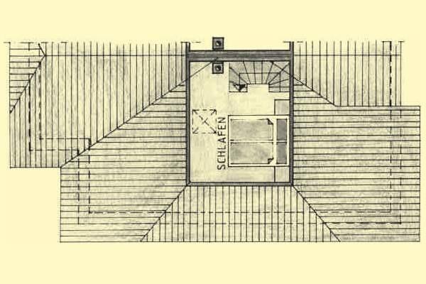 In der ersten Etage liegen drei Schlafzimmer. Eines mit zwei aneinander geschobenen Einzelbetten und ein weiteres mit einem Einzelbett.