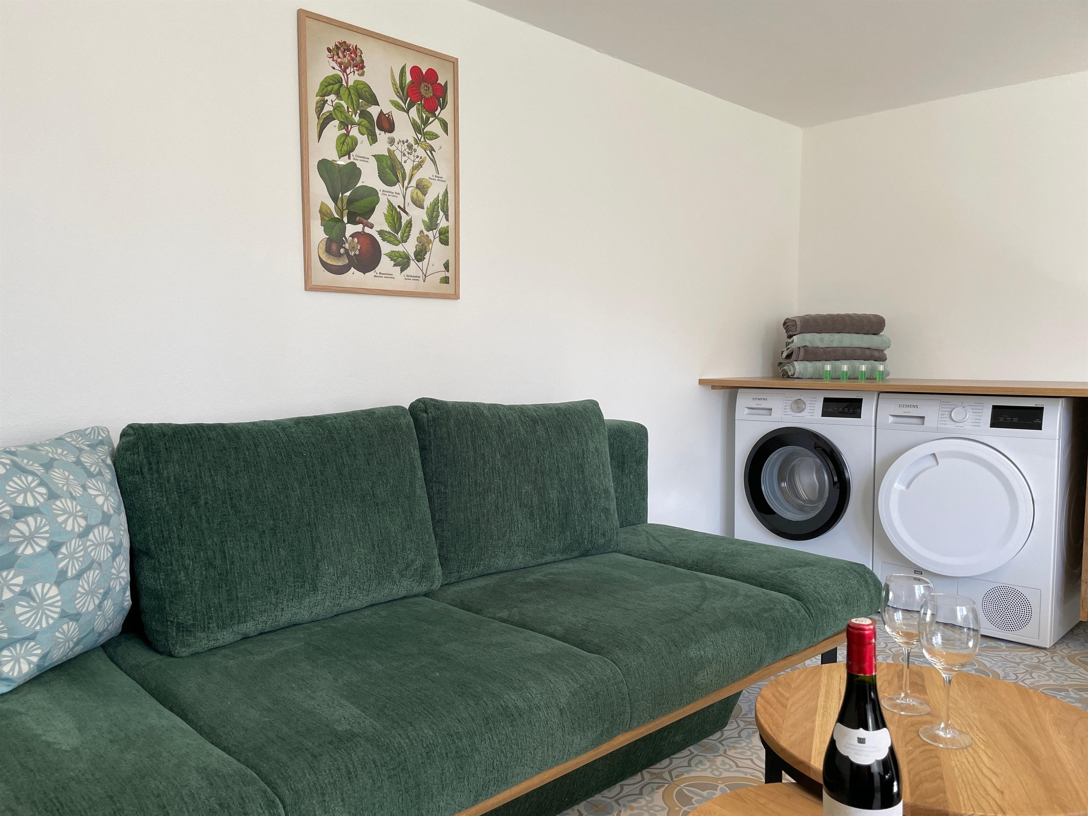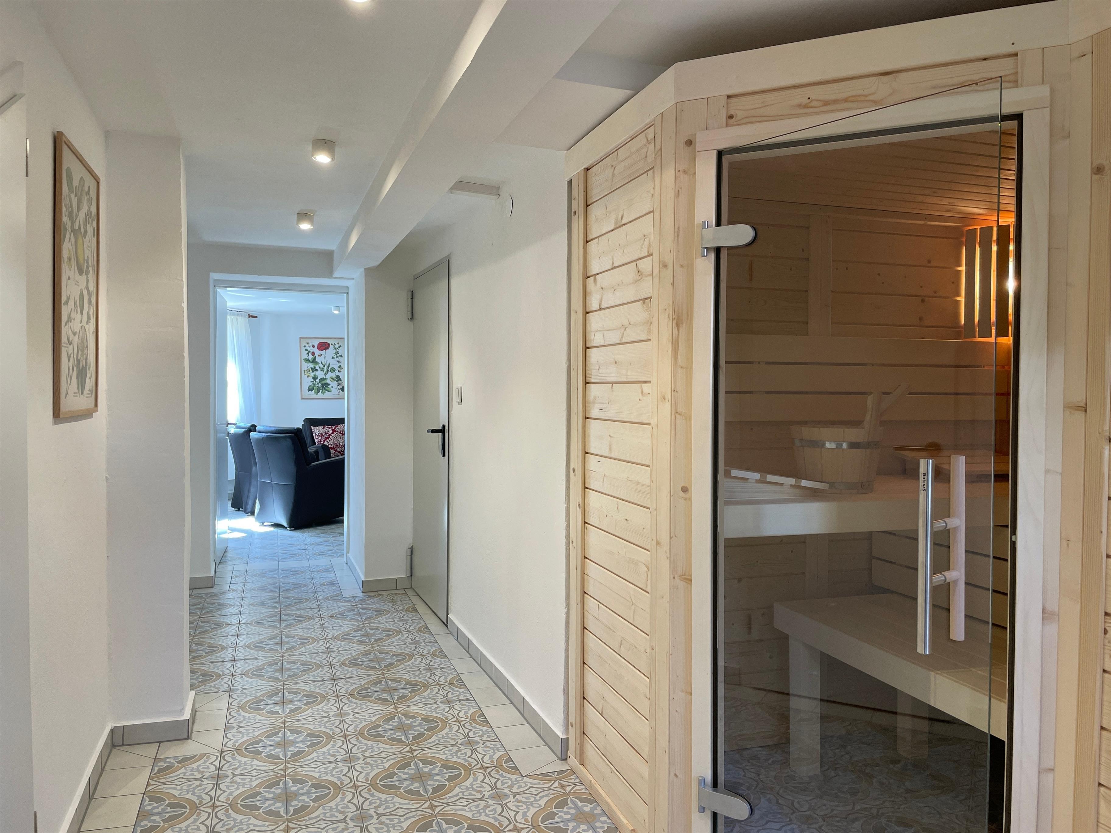 Die Wildrose bietet Gästen einen zusätzlichen Aufenthaltsraum im Keller, der von außen begehbar ist. Hier steht Ihnen ein vollwertiges Badezimmer und eine Sauna mit Aufenthaltsraum und Sitzgruppe zur Verfügung sowie die kostenfreie Nutzung von Waschmaschine und Trockner. Diese Annehmlichkeiten erhöhen den Komfort und die Flexibilität während ihres Aufenthalts.