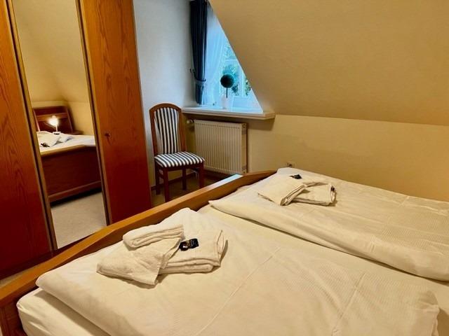 Die Ferienwohnung besitzt 2 Schlafzimmer. Für Sie stehen Einzel - und Doppelbetten bereit. Im Badezimmer finden Sie eine Dusche und einen Haartrockner.