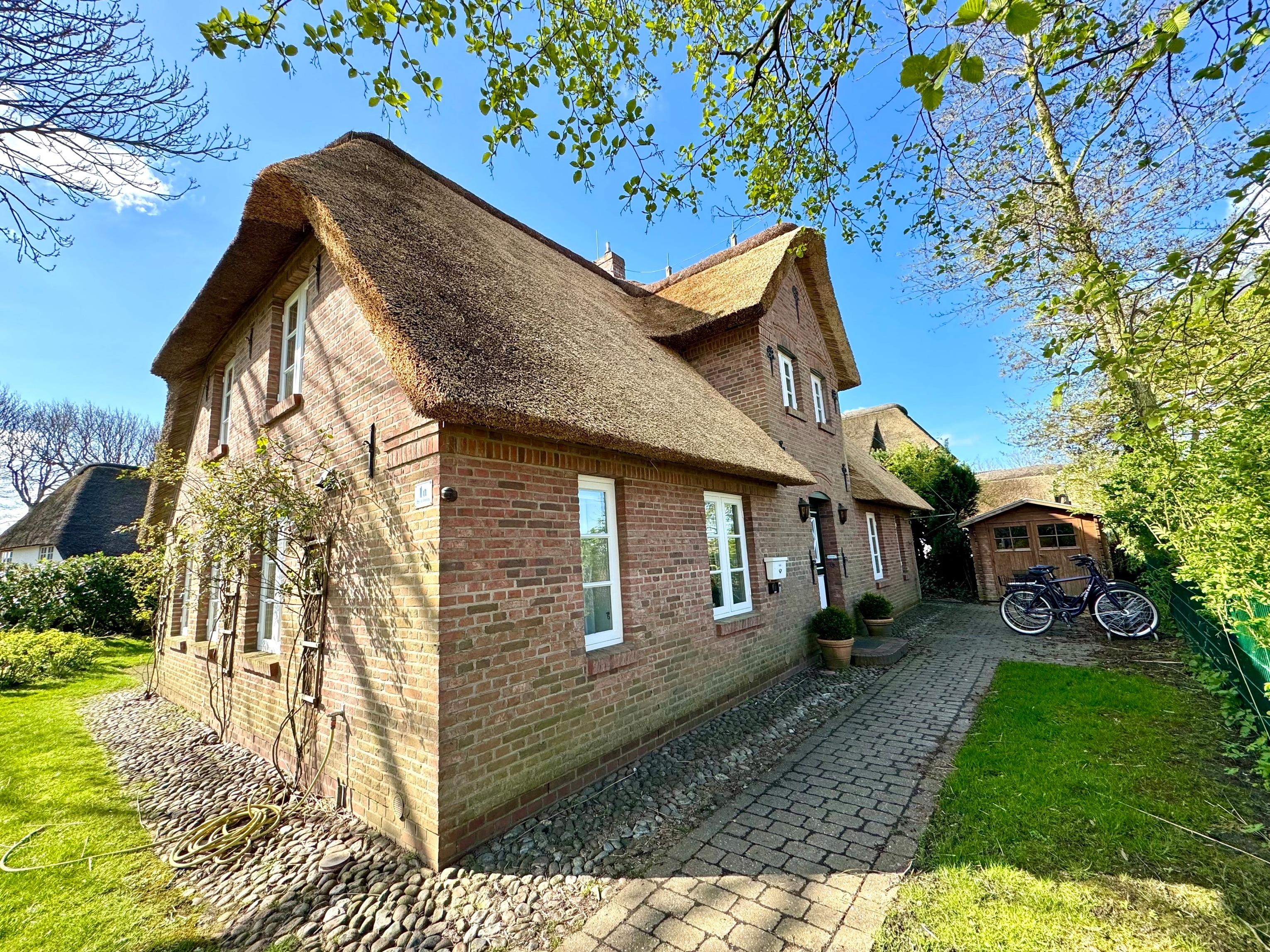 In dem malerischen Dorf Nieblum auf der Insel Föhr liegt die schöne Reetdach-Ferienwohnung "Ferienwohnung Osterhus". Sie ist perfekt für einen Pärchen-, Familien- oder Strandurlaub an der Nordsee und besticht durch ihren gemütlichen Charme und ansprechenden Finca-Stil. Die 80 m² große Ferienwohnung besteht aus einem Wohnzimmer, einer sehr gut ausgestatteten Küche, 3 Schlafzimmern, einem Bad sowie einem Gäste-WC und bietet somit Platz für bis zu 5 Personen. Zur weiteren Ausstattung gehören WLAN, Heizung, Waschmaschine, Trockner und Satellitenfernsehen. Die offene, möblierte Terrasse mit Sonnenschirm und traditionellem Strandkorb sowie der gemeinschaftlich genutzte Garten laden zu entspannten Stunden im Freien ein. Der Nieblumer Strand ist nur 900 m entfernt (4 Autominuten oder 15 Gehminuten). Dort finden Sie einen Parkplatz für Ihr Auto sowie einen Hundestrand, an dem auch Ihr vierbeiniger Freund willkommen ist.