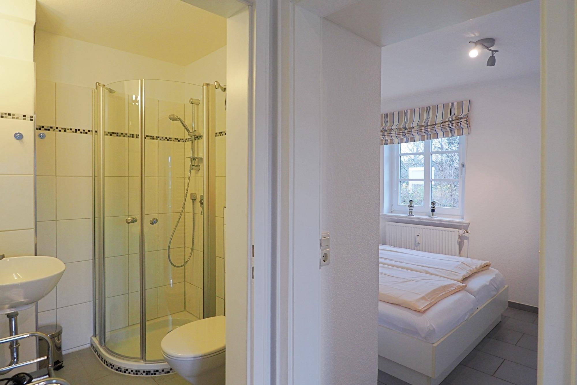 Neben dem offenen Wohn- und Essbereich mit direktem Zugang zur eigenen Südterrasse mit Strandkorb und Terrassenmöbeln, erwartet Sie das separate Schlafzimmer mit Doppelbett (1,60m x 2,00m), ein Bad mit Dusche/WC und ein extra Lesezimmer für die ganz ruhigen Momente.