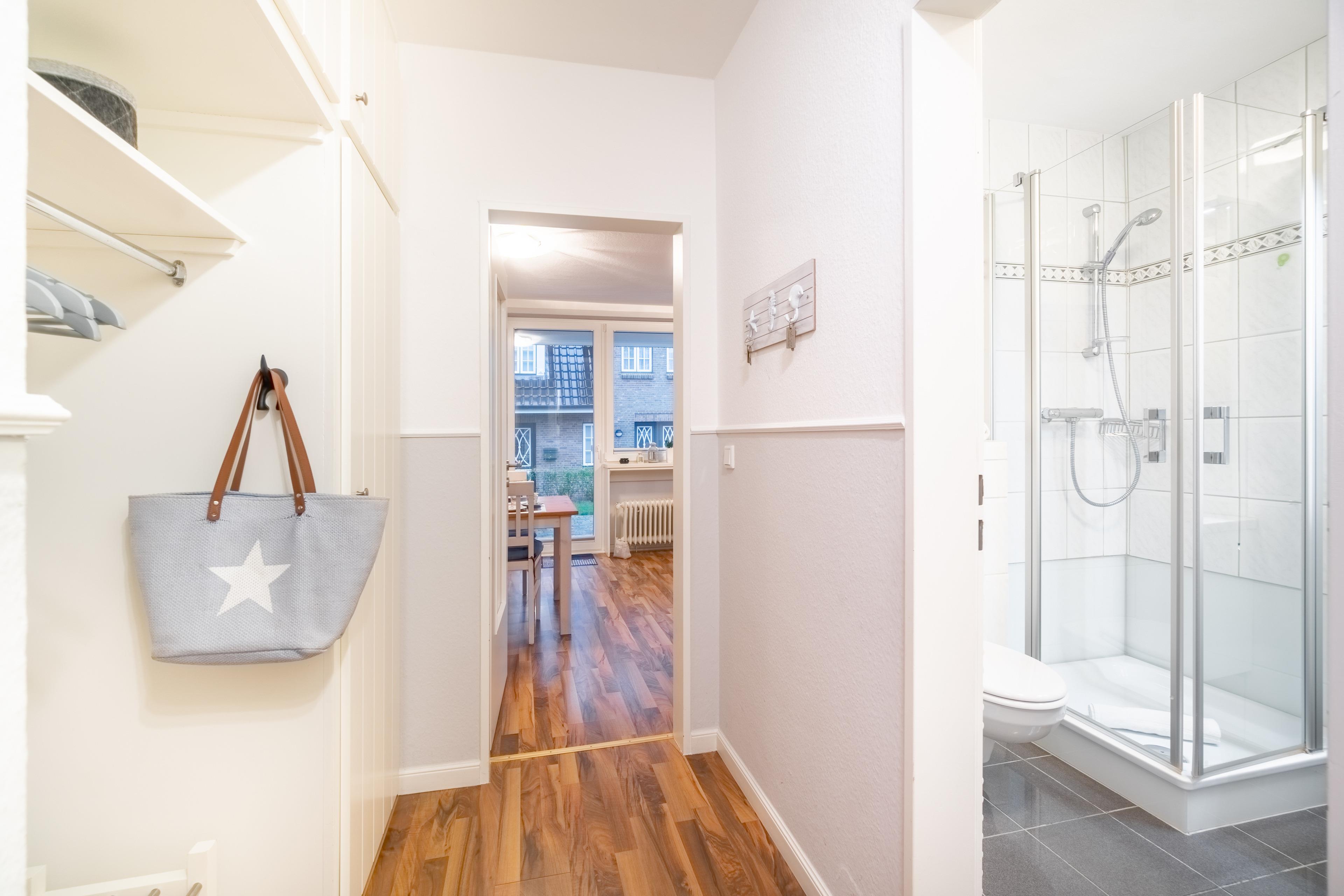 Die Wohnung liegt im Erdgeschoss links und bietet Platz für bis zu 3 Personen. Sie hat einen Zugang zur eigenen Terrasse. Im Gemeinschaftsgarten können die Kinder Schaukeln und Spielen!