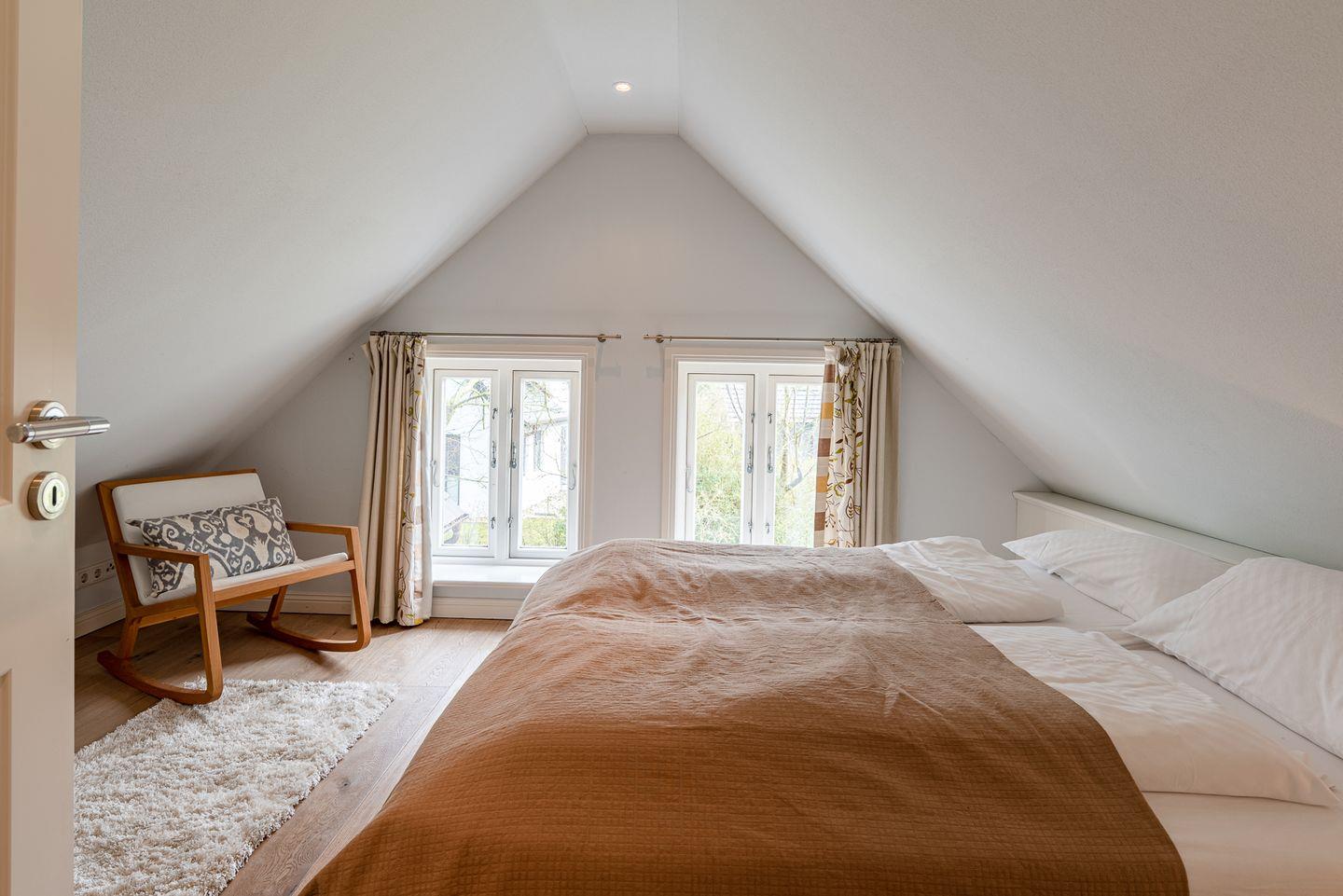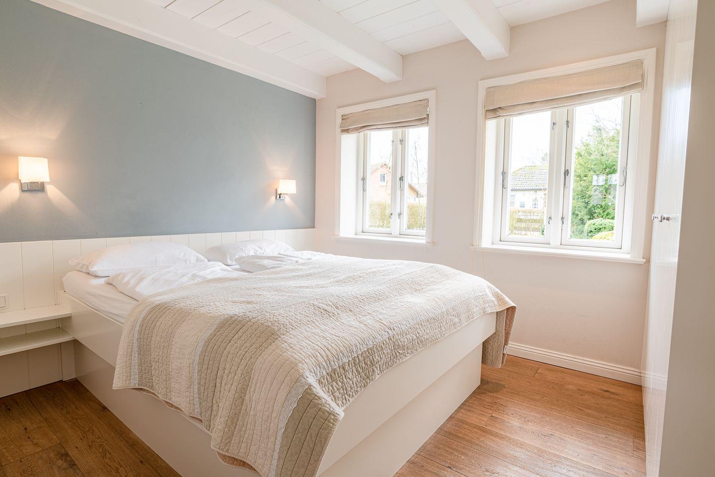Ein Schlafzimmer mit Doppelbett und eines mit einem Einzelbett sowie ein Duschbad befinden sich im Obergeschoss.