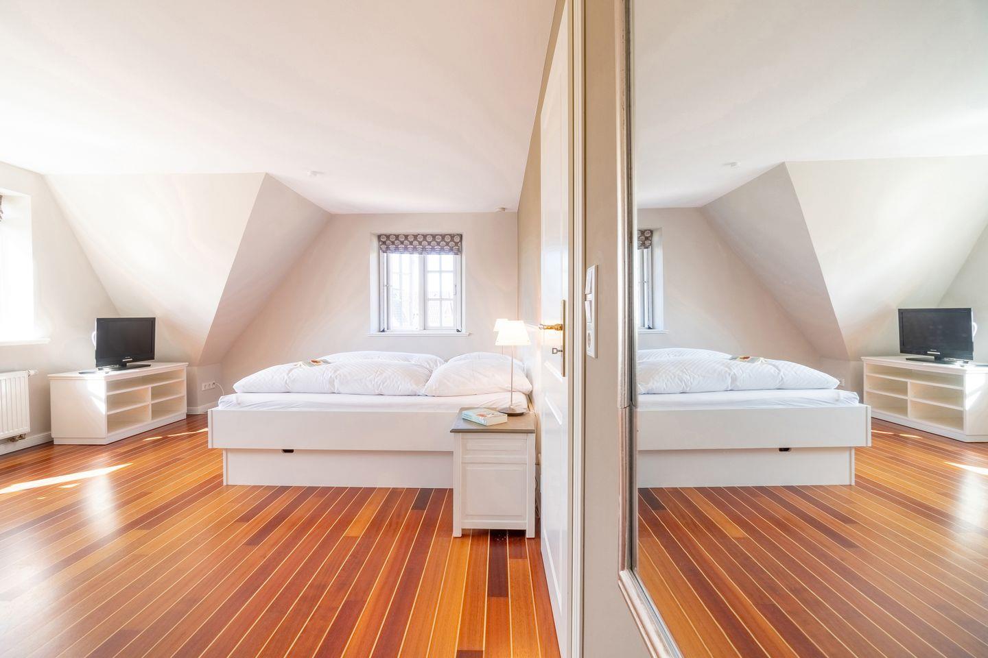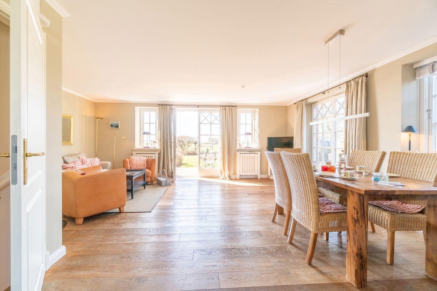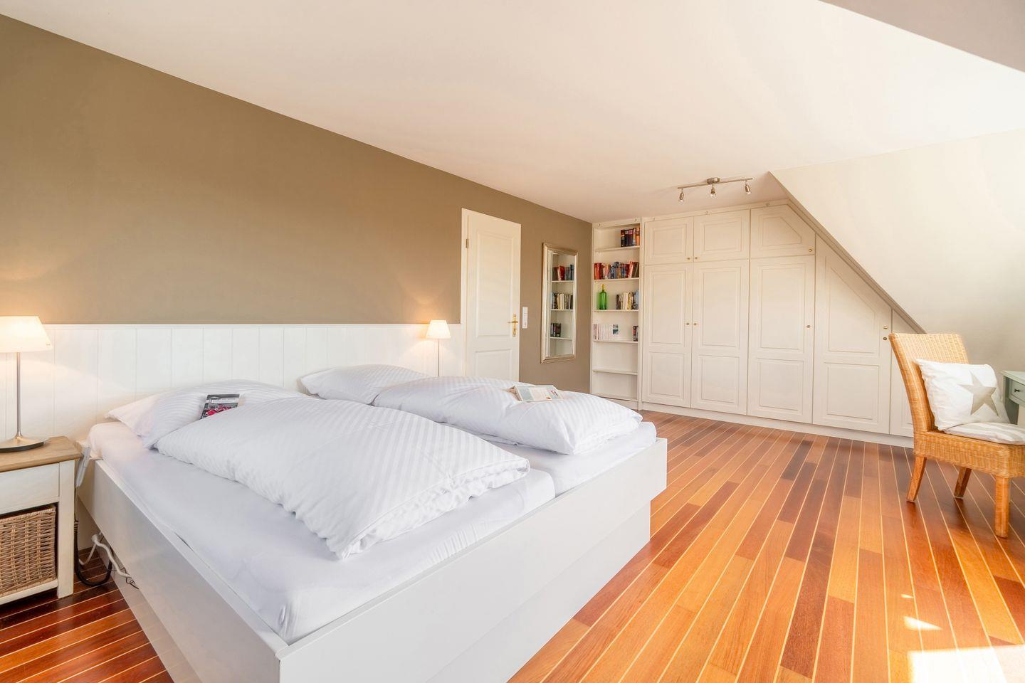 Die reetgedeckte Doppelhaushälfte Meets Hüs verfügt über 3 Schlafzimmer und 2 Bäder und bietet somit komfortabel Platz für bis zu 5 Personen zuzüglich einer Kleinkinderaufbettung.