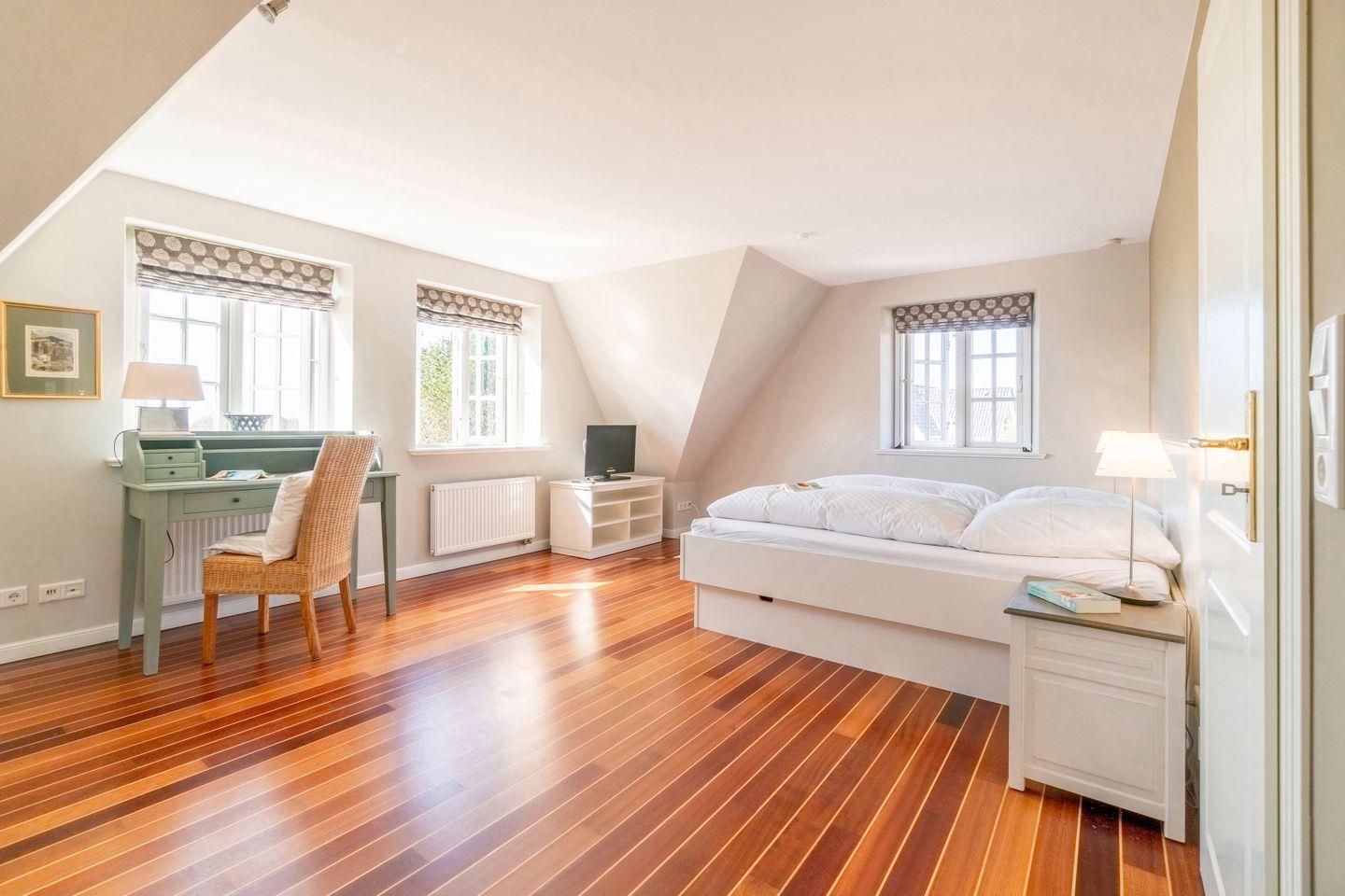 Im Obergeschoss sind die drei Schlafzimmer - zwei mit jeweils einem Doppelbett, eines mit einem Einzelbett - sowie eines der beiden Duschbäder, welches zudem über eine Badewanne verfügt, gelegen.