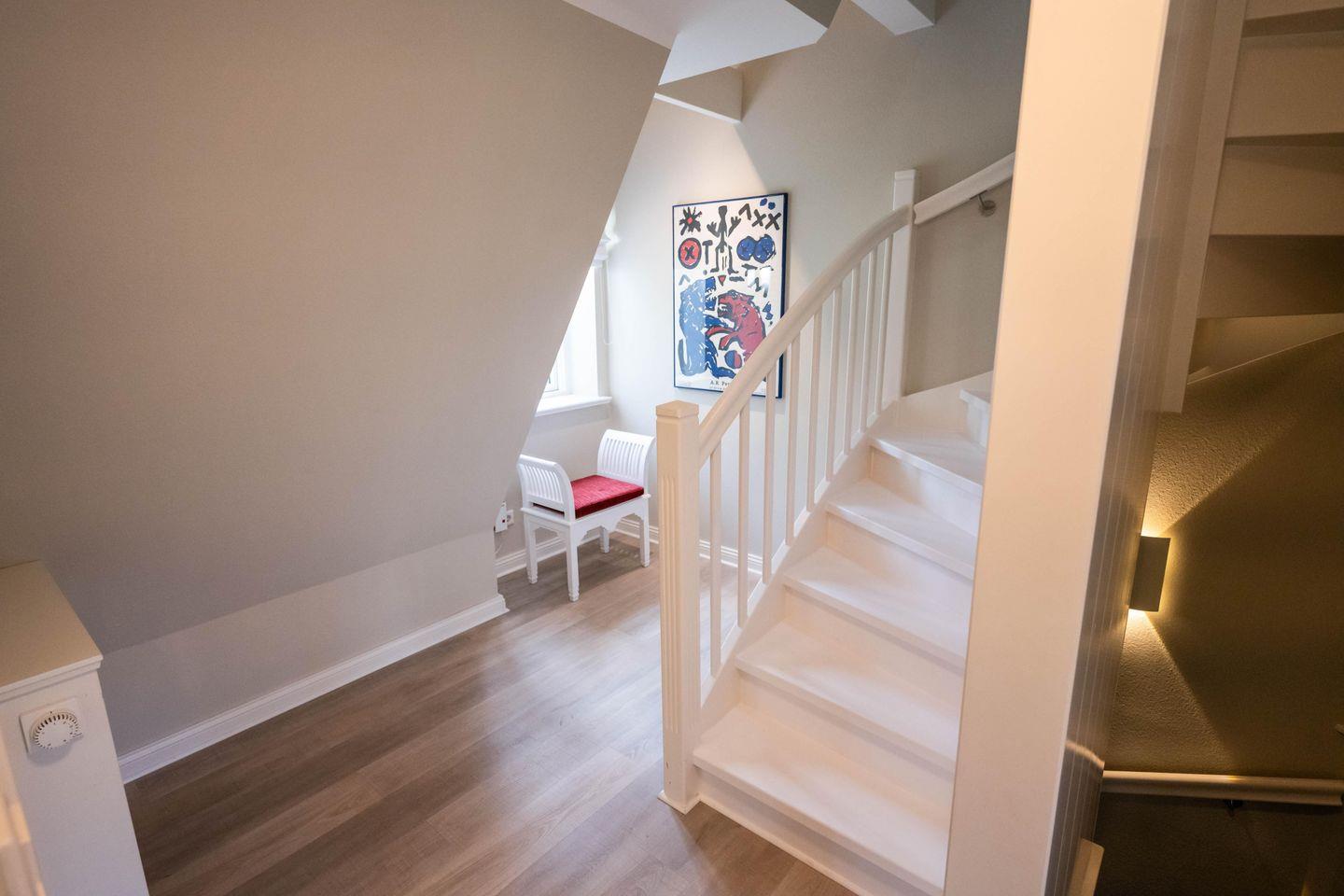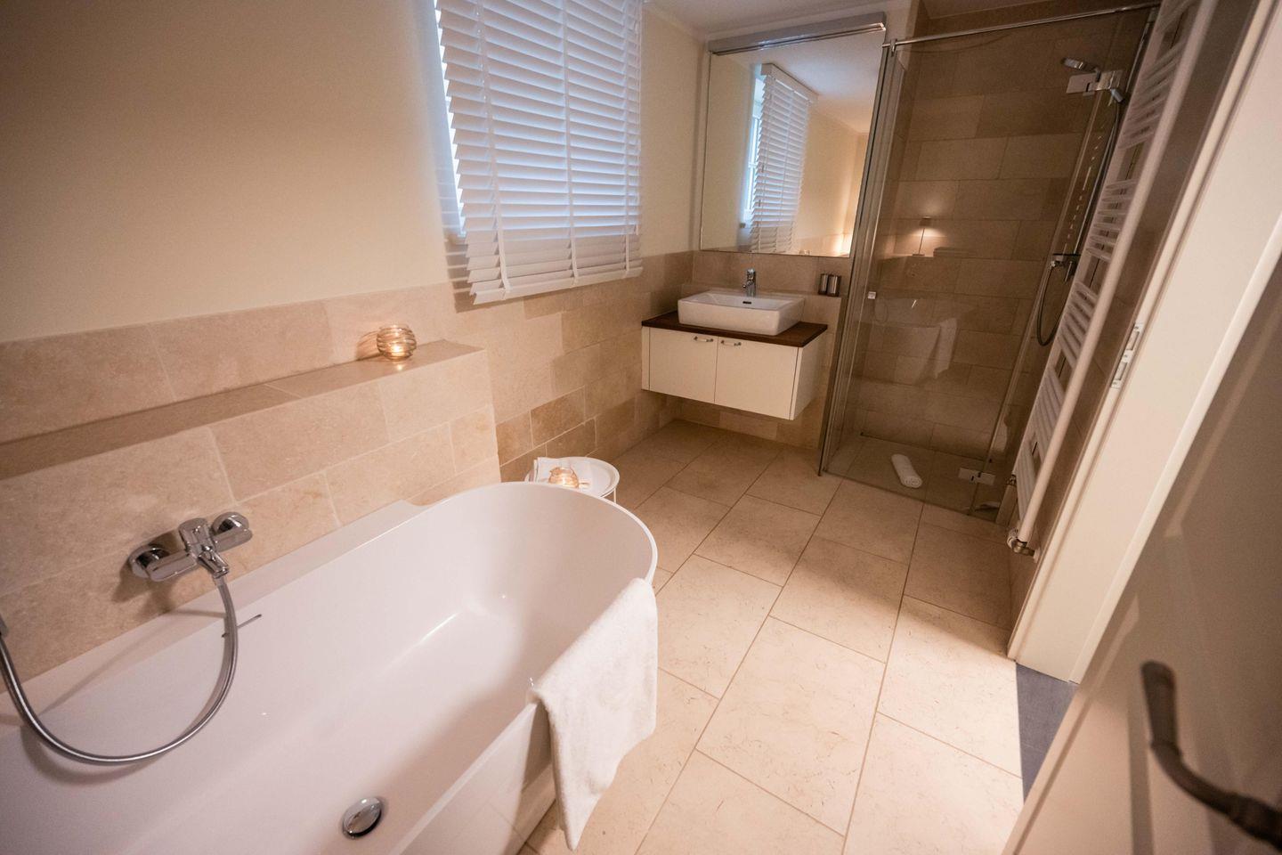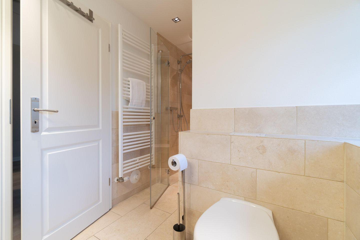 Im Obergeschoss sind die beiden Schlafzimmer mit je einem Doppelbett - davon 1 Boxspringbett -, ein Duschbad sowie ein Lese- und Arbeitsbereich im Flur gelegen.