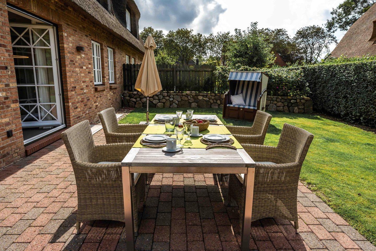 Reetgedeckte Doppelhaushälfte in perfekter zentraler aber ruhiger Lage auf über 1.000 m² großem Grundstück mit eigenem "Wellnessbereich" und Kachelofen für kühle Tage.