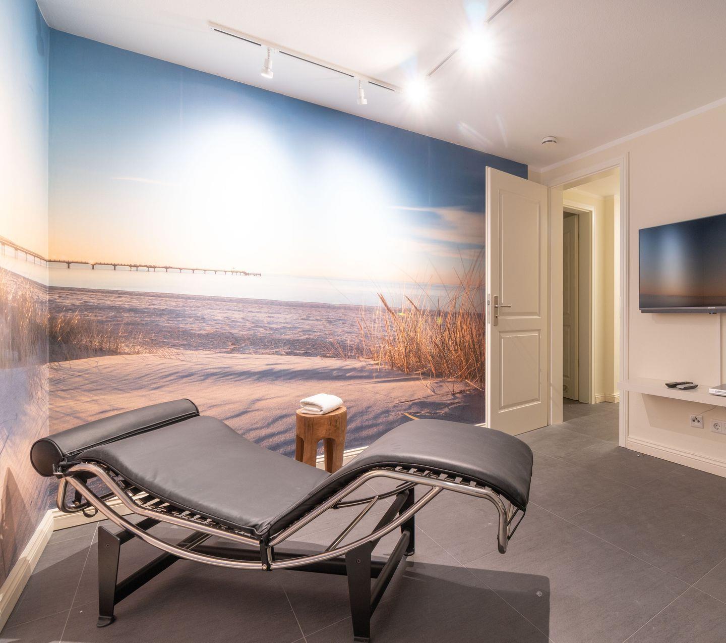 Im Souterrain stehen Ihnen eine Finnische Sauna/Dampfsauna sowie ein Ruhe-/Fitnessraum, ein Vollbad und ein Hauswirtschaftsraum mit Waschmaschine und Trockner zur Verfügung.