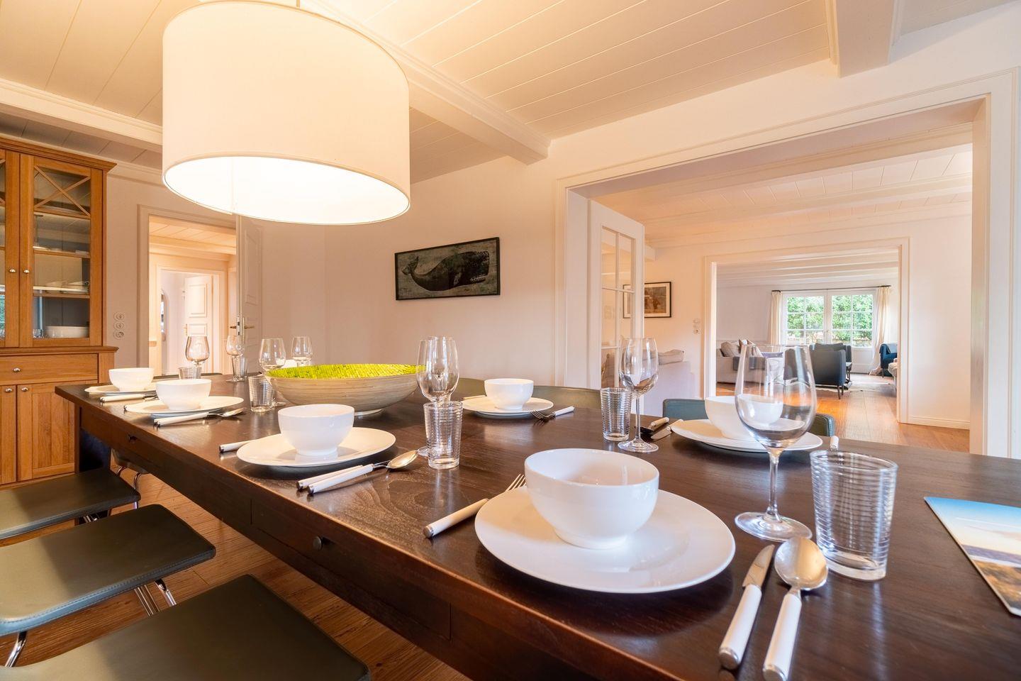 Der reetgedeckte Holsteinhof verfügt über 5 Schlafzimmer, 6 Bäder und 1 Gäste-WC und bietet somit komfortabel Platz für bis zu 10 Personen zuzüglich einer Kleinkinderaufbettung. Auch ein Hund ist herzlich willkommen.