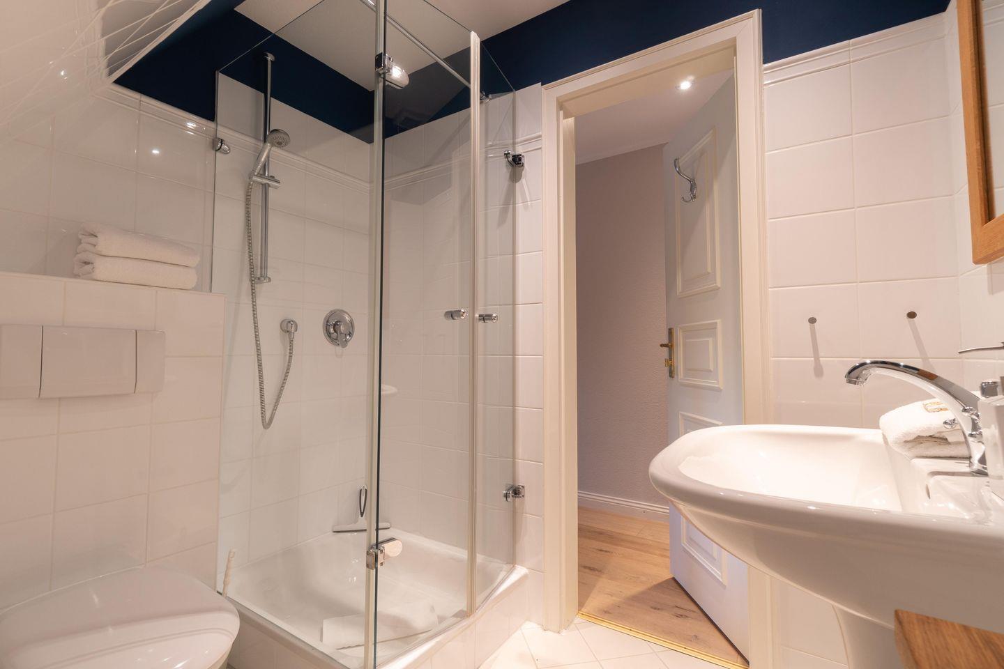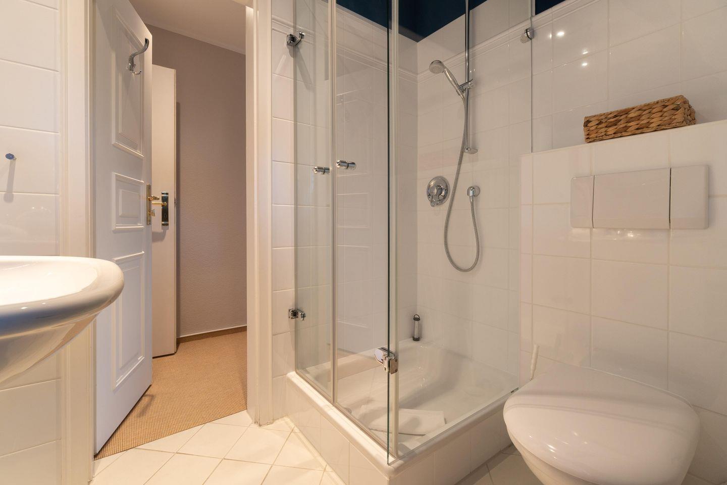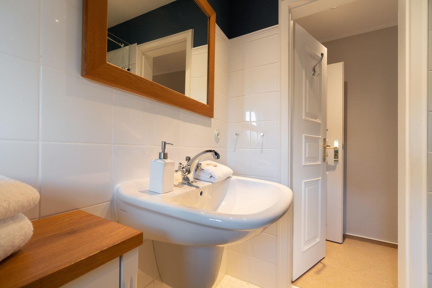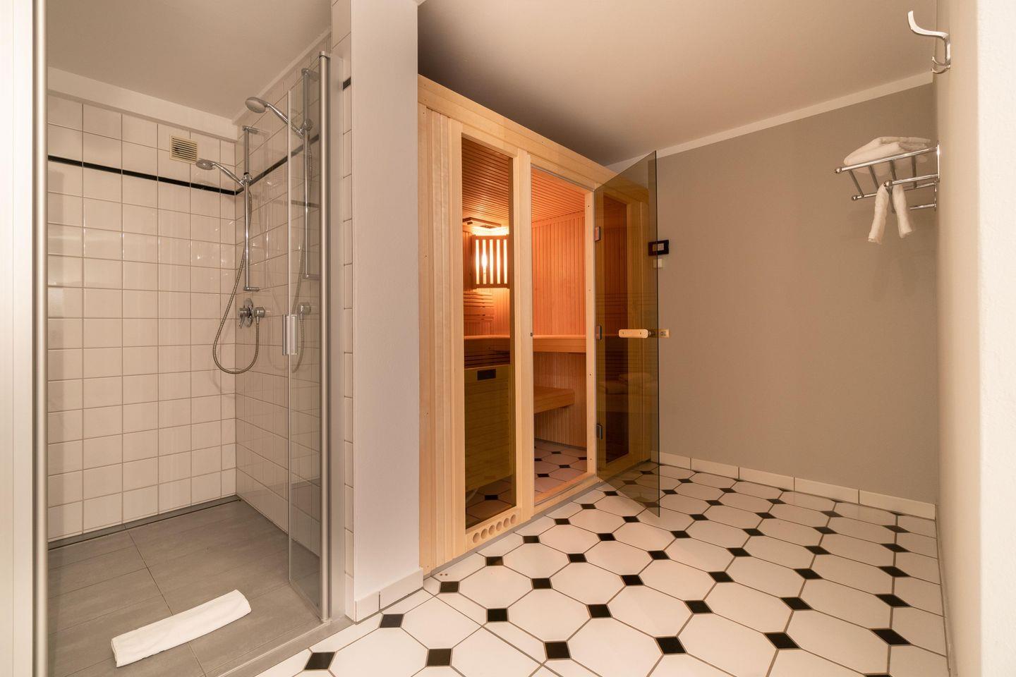 Im Souterrain stehen Ihnen die hauseigene Sauna mit separater, offener Dusche im Wellnessbereich, sowie das Gäste-WC zur Verfügung.