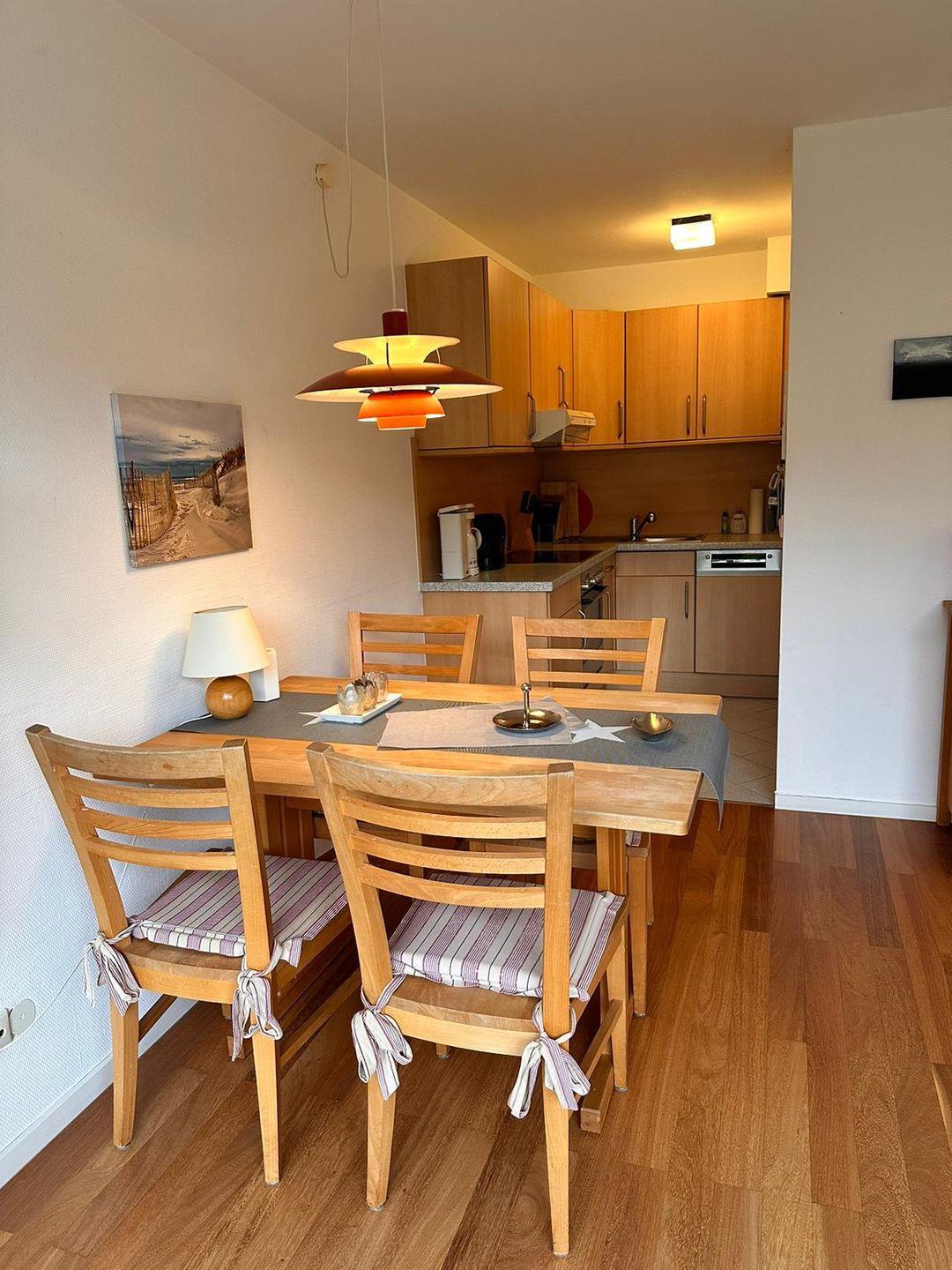 Helle 2-Zimmer-Ferienwohung im Erdgeschoss. Die gemütliche Wohnung verfügt über einen offenen Wohn-Ess-Küchenbereich mit Zugang zur Terrasse, ein separates Schlafzimmer mit Doppelbett (Bettmaße 2*90*200cm) sowie ein modernes Duschbad. Im Souterrain des Hauses finden Sie die kleine Sauna sowie das Schwimmbad. Den Sandstrand in Nieblum erreichen Sie in wenigen Gehminuten. Den Sandstrand in Nieblum erreichen Sie in wenigen Gehminuten. Das Haus liegt unweit des Dorfteiches Bi de Meere. Parkplätze für Fahrräder und PKW liegen direkt beim Haus.