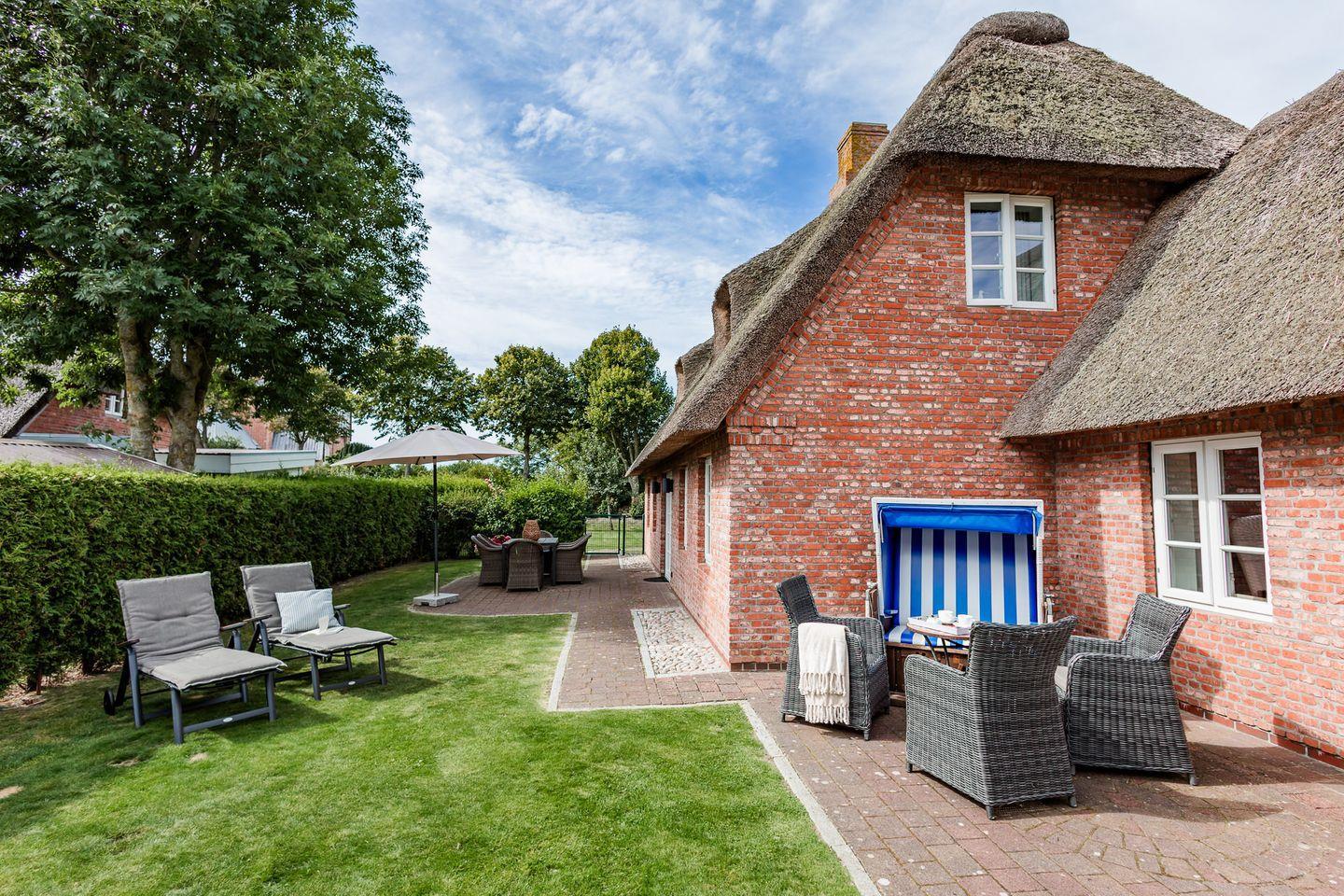 Reetdachhaus mit eigener Sauna und Kaminofen sowie großem Garten mit Terrasse, Strandkorb und Pavillon.