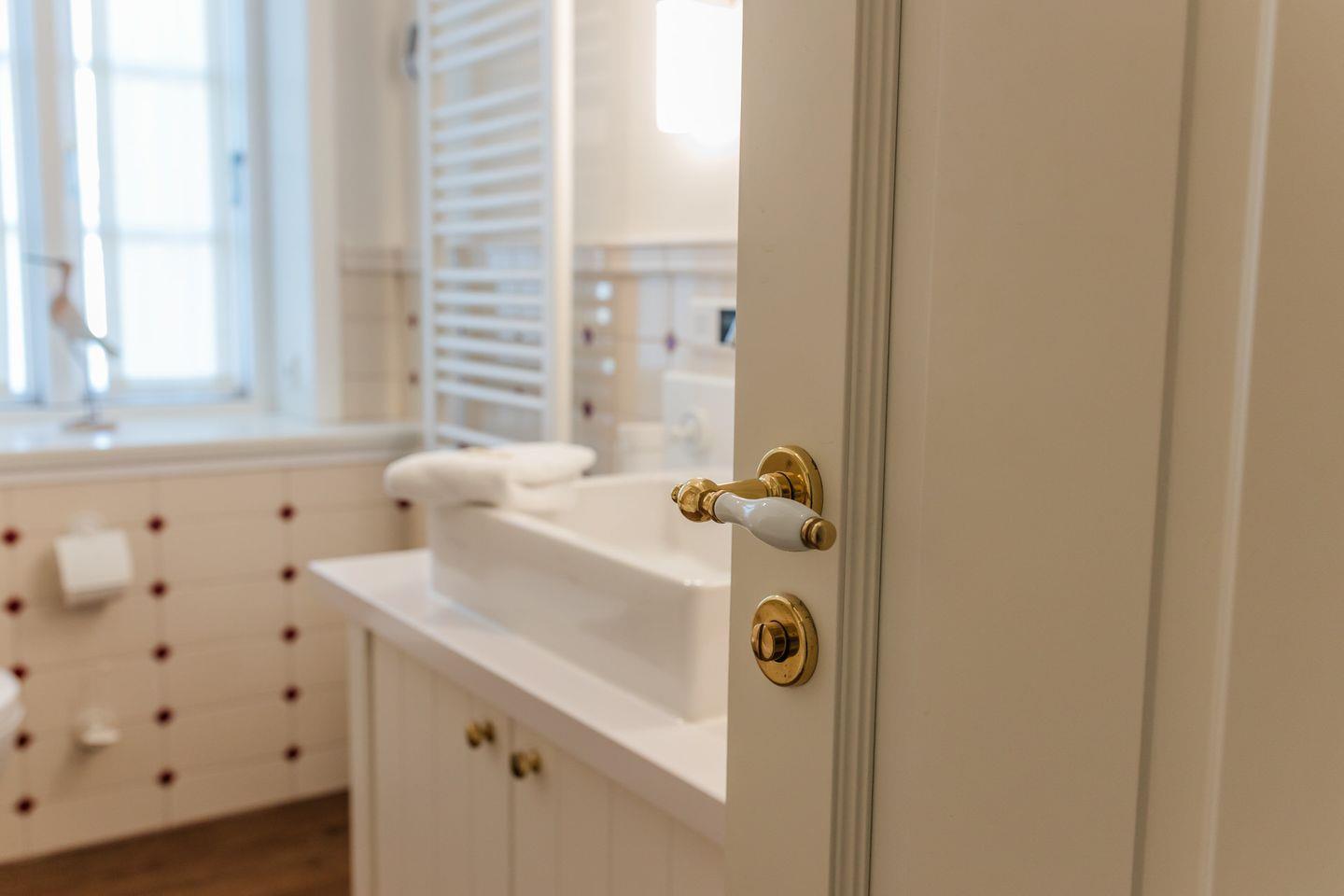 Im Obergeschoss sind zwei weitere Schlafzimmer und das Vollbad mit Dusche und Badewanne gelegen. Die Schlafzimmer sind jeweils mit einem Doppelbett und einem Smart-TV ausgestattet.