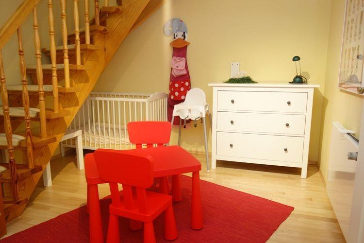 Das Haus verfügt über zwei gemütliche Schlafzimmer mit Doppelbetten, einen großzügigen Wohnraum, ein Babybett sowie eine zusätzliches Sofa im Spielzimmer. Ein Badezimmer mit Dusche, ein zusätzliches WC und eine praktische Abstellkammer sorgen für Komfort und Funktionalität. Ein besonderes Highlight für Familien ist das liebevoll eingerichtete Spielzimmer, das für Unterhaltung und Abwechslung sorgt.