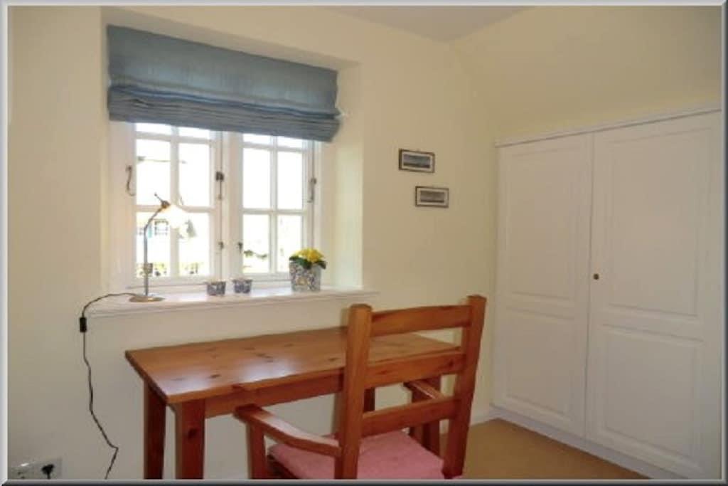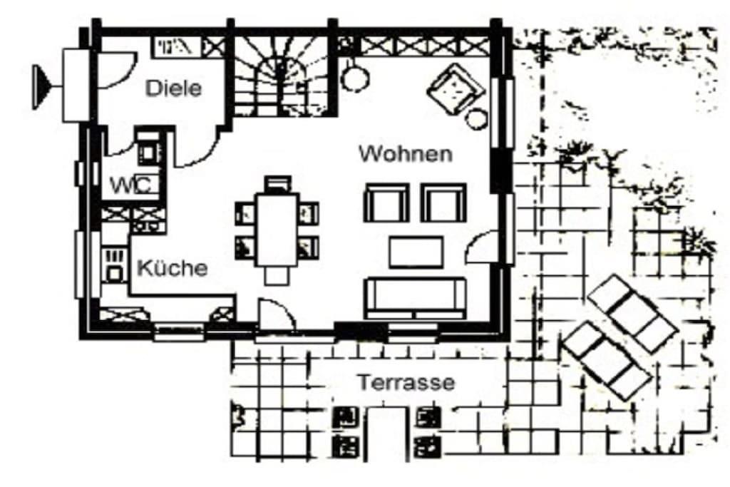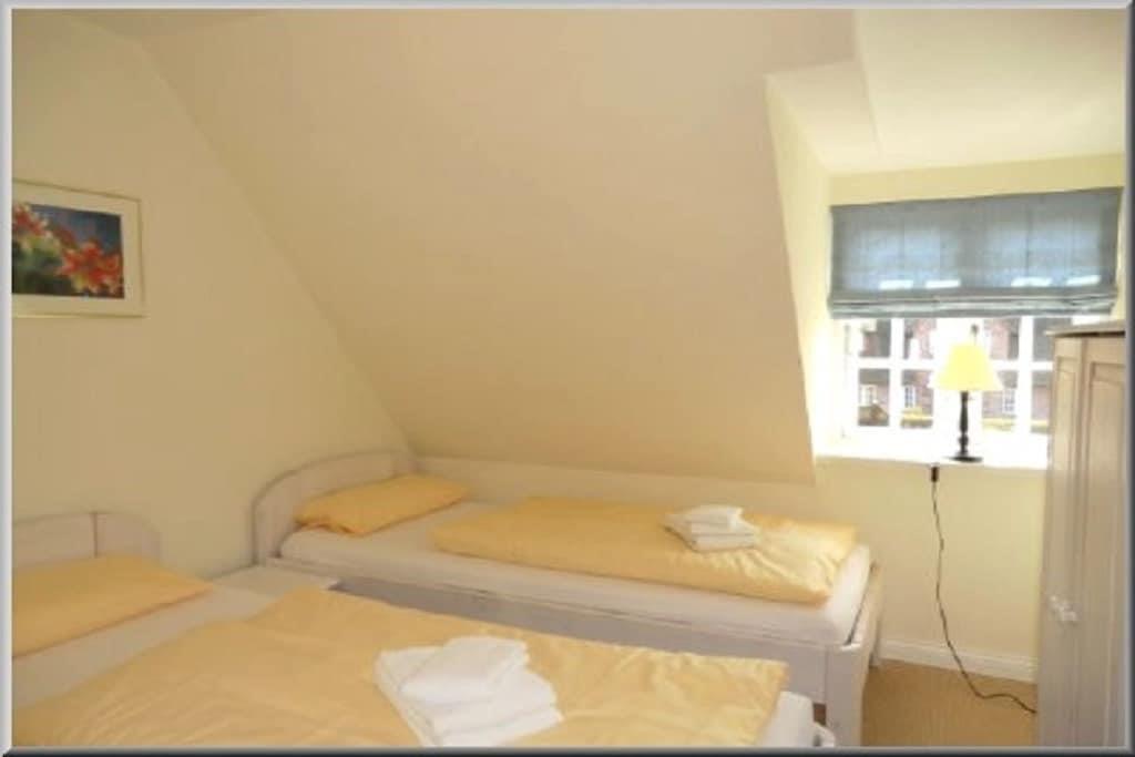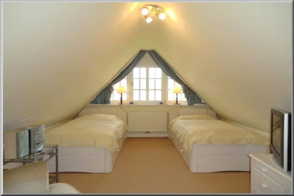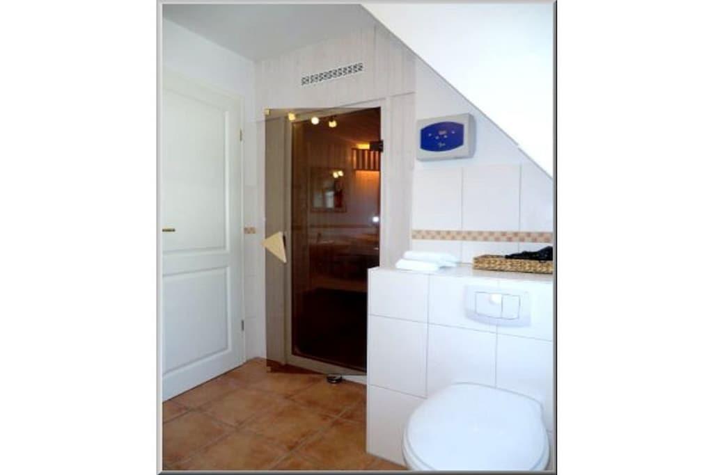 With its cozy atmosphere, this semi-detached house offers approximately 105 m² of living space for 2-6 people (non-smoking only!) and the perfect setting for a relaxing vacation. Ground floor: Entrance hall with wardrobe, guest WC, bright living and dining room with integrated kitchenette, wood-burning stove, and access to the southwest-facing terrace with a beach chair, utility room with washing machine and dryer, stairs to the upper floor. Upper floor: Bedroom with double bed, bedroom with two single beds, study, shower room/WC with sauna and stairs to the attic. Attic with two single beds, flat-screen TV, and stereo system.